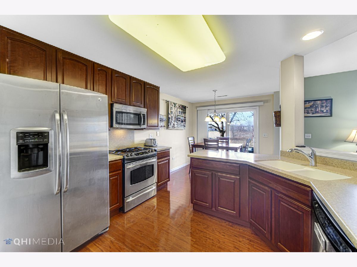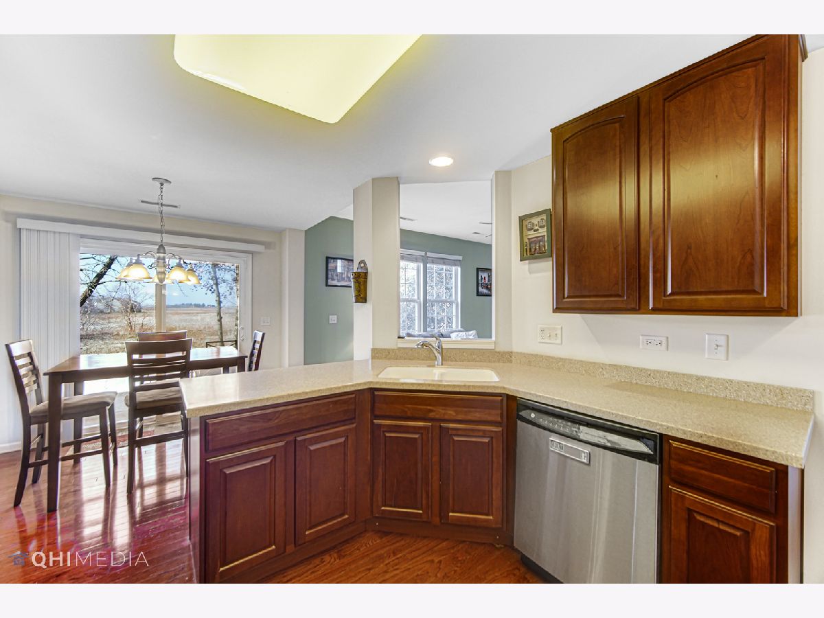 Spacious clean 2 story, 2 bedroom, 2 1/2 bathroom townhome overlooking a small pond and prairie in the Townes of Cedar Ridge is ready for you to call it HOME! Open flow carpeted living room combines nicely with the kitchen/dinette. Kitchen boasts 42 inch cabinets and hardwood floors plus all stainless steel appliances. Dining area has sliding doors to lead to your own concrete patio great for grilling and/or to just sit and enjoy the pond and a view of acres of natural beauty. And the main floor is finished off by a 1/2 bath and direct access to the 2 car garage. The second floor offers you the master suite which has a vaulted ceilings, a walk in closet, and the master bath which has a double vanity and a large walk in shower. Addionally, there is a huge loft that is very verstile (office, play area, work-out space, or convert into the 3rd bedroom). You will also find the second bedroom, another full bathroom, and a convienently located laundry room to finish off the second floor. All this country charm, peace and quiet yet convenient to Route 6, I-355, shopping, dining, and schools!
