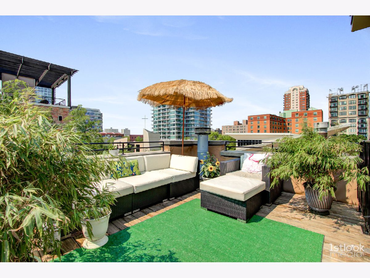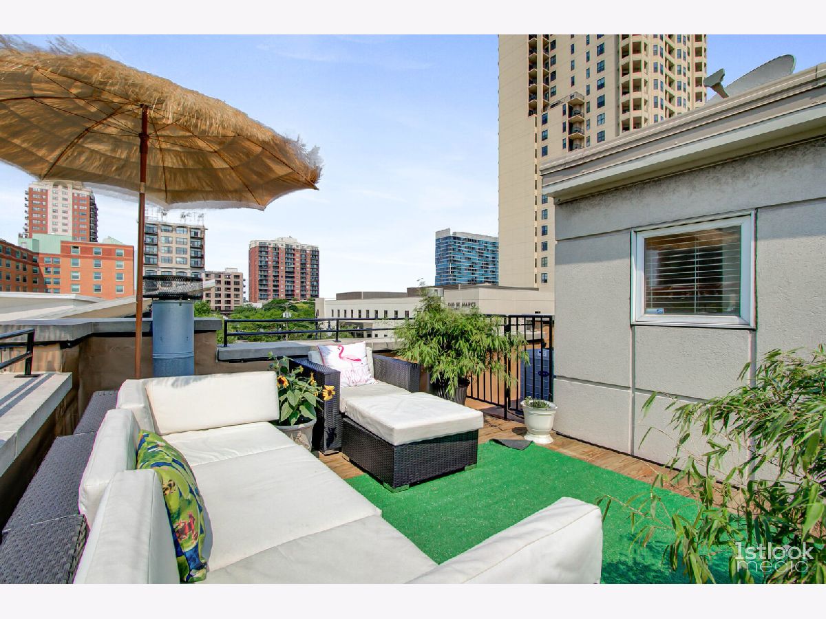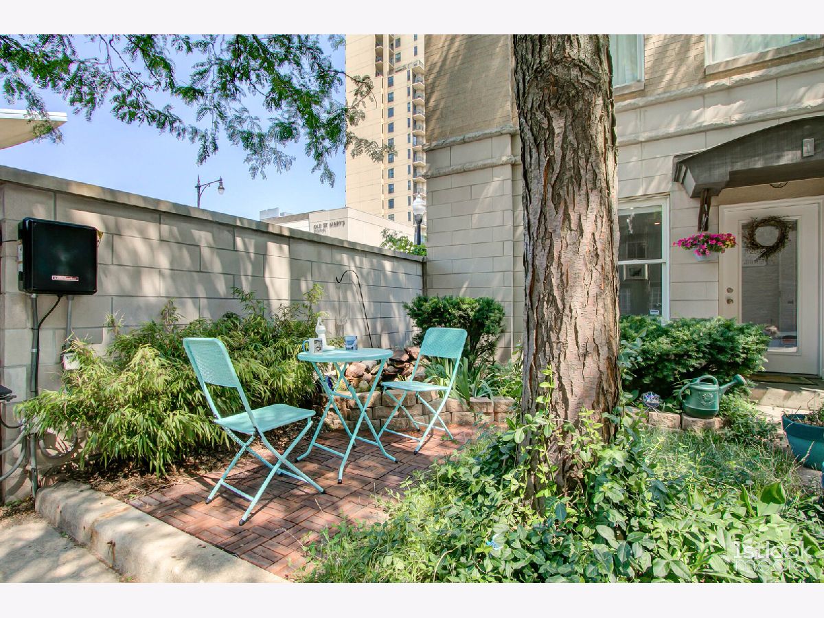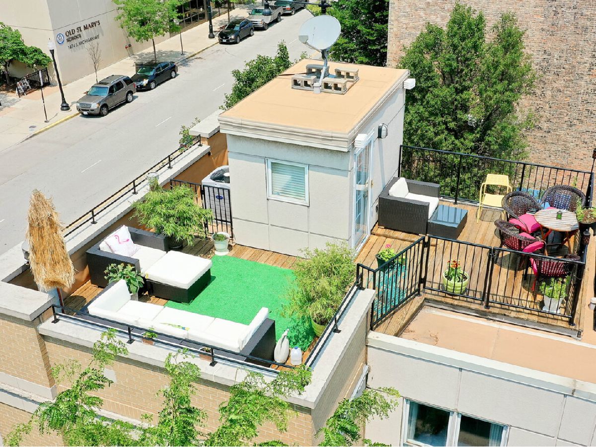 An urban oasis in the heart of it all! Rare two bedroom, two bath end-unit townhome with a Michigan Avenue address & first floor den/flex room. Three floors of fabulous living space in addition to three private outdoor areas! Enjoy your morning coffee in your front garden, grill or lounge on the balcony off of the main living space & kitchen, and entertain on the "crown jewel" private rooftop deck, with two large seating and dining areas. Not to mention the stunning city & Soldier Field views, sunrises & sunsets! Back inside the home, natural light ushers in through multiple windows on every floor of this corner townhome. The main living space is punctuated by a granite surround corner fireplace and the drama of diagonally laid hardwood flooring. The well appointed open kitchen boasts crisp white cabinets adorned by brushed nickel linear hardware, stainless steel appliances, granite countertops, island illuminated by a glass pendant and recessed lighting. Enough room for a dining table or perfect area for a corner banquette. Direct access to large balcony. Retreat to the third floor sleeping quarters where tree-lined windows welcome lake breezes enhanced by ceiling fans. Spacious dual vanity bath and double closets. First floor den/flex room can be walled in to make a third bedroom. Oversized stacked laundry and plenty of storage. Enjoy the serenity of a welcoming, private lush green entrance complete with a waterfall and the security of a gated community, attached extra long garage w/ storage area and additional driveway parking. Short city stroll to Museum Campus, Soldier Field, lake, parks, restaurants, shopping, and convenient access to the CTA and expressways. Welcome home! Featuring the Tiny Fountain a top ranked Chicago attraction. Click on 3D Tour and Property Video