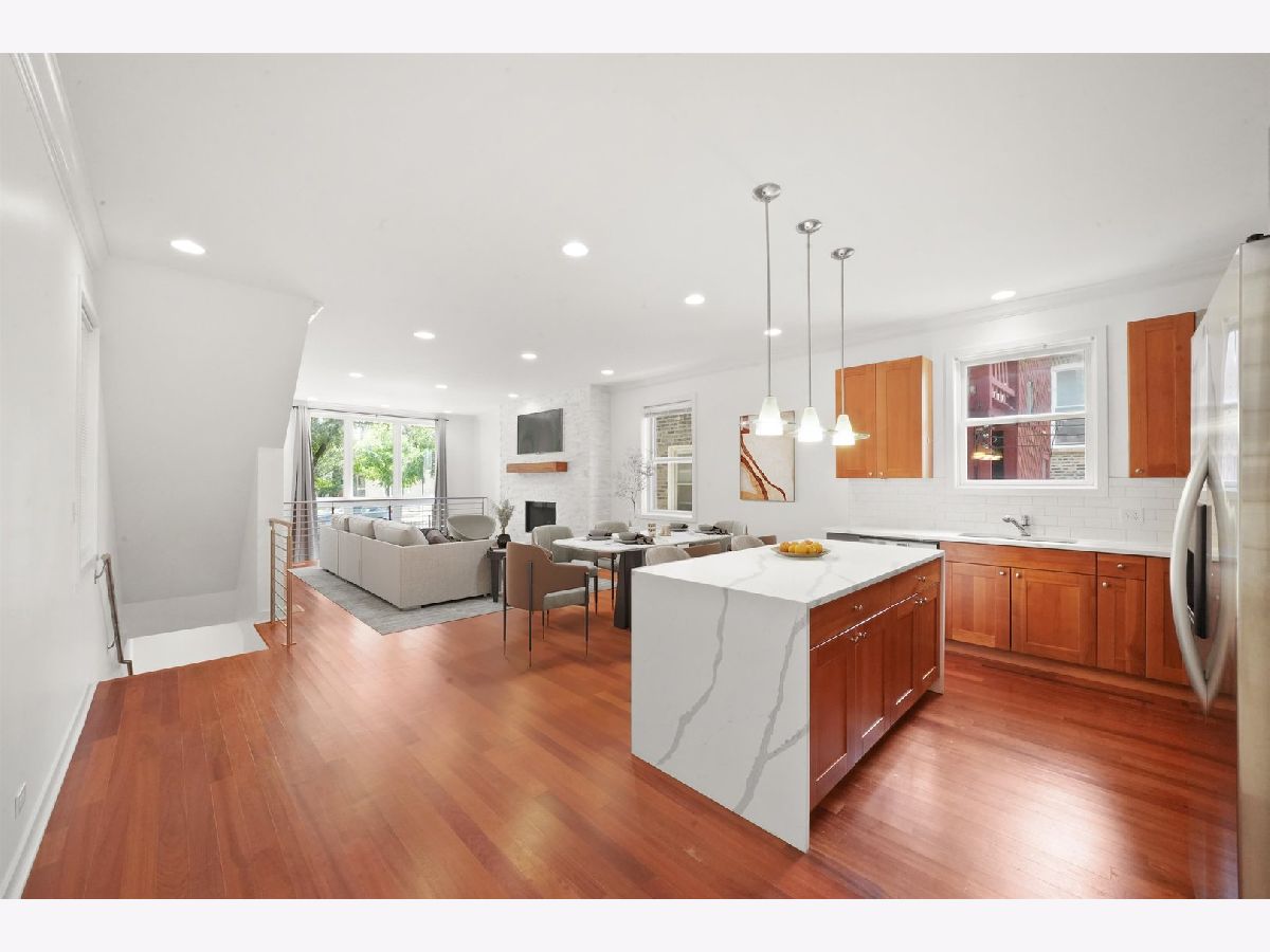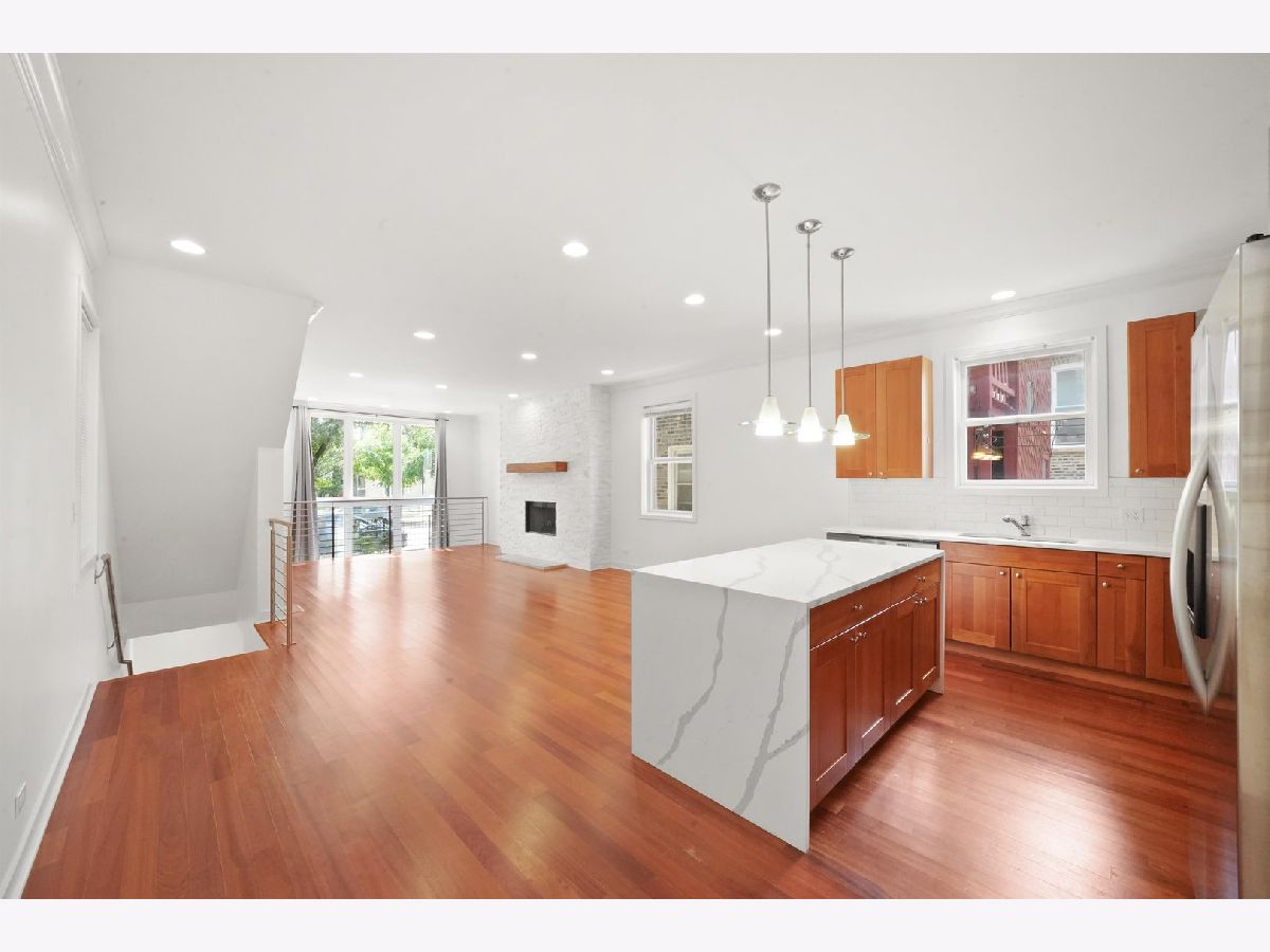 Experience elevated living in this beautifully finished 3 bed, 2.1 bath DUPLEX condo in the heart of Pilsen. This luxurious sun-filled condo is the epitome of refined living, offering an extraordinary combination of convenience, elegance, and style. The main level features a spacious open-concept living area with 9ft ceilings and a stunning open stair case. The chef's kitchen offers custom cabinets, stainless steel appliances and a waterfall countertop on the spacious island, which also provides additional seating. This level also features gorgeous hardwood floors throughout and a powder room for your guests. The primary suite is spacious with a walk-in closet and an ensuite bathroom. The bathroom features an extra large double vanity, a separate jetted tub and a shower with Grohe body sprays. You'll enjoy the beautiful wood-burning fireplaces in the living and family rooms. The lower level features a family room, two bedrooms and a second full bath. The unit has two (!!) private outdoor spaces; one is off the primary bedroom and the second is off the family room. Enjoy the best of both worlds with private outdoor space, perfect for morning coffee, evening cocktails, or al fresco dining. One garage spot is included in the price. Situated in a sought-after neighborhood, this duplex is just steps away from fine dining, public transportation, cultural attractions and parks. Schedule your private showing today and experience this remarkable property firsthand! Be sure to check out the video provided.
