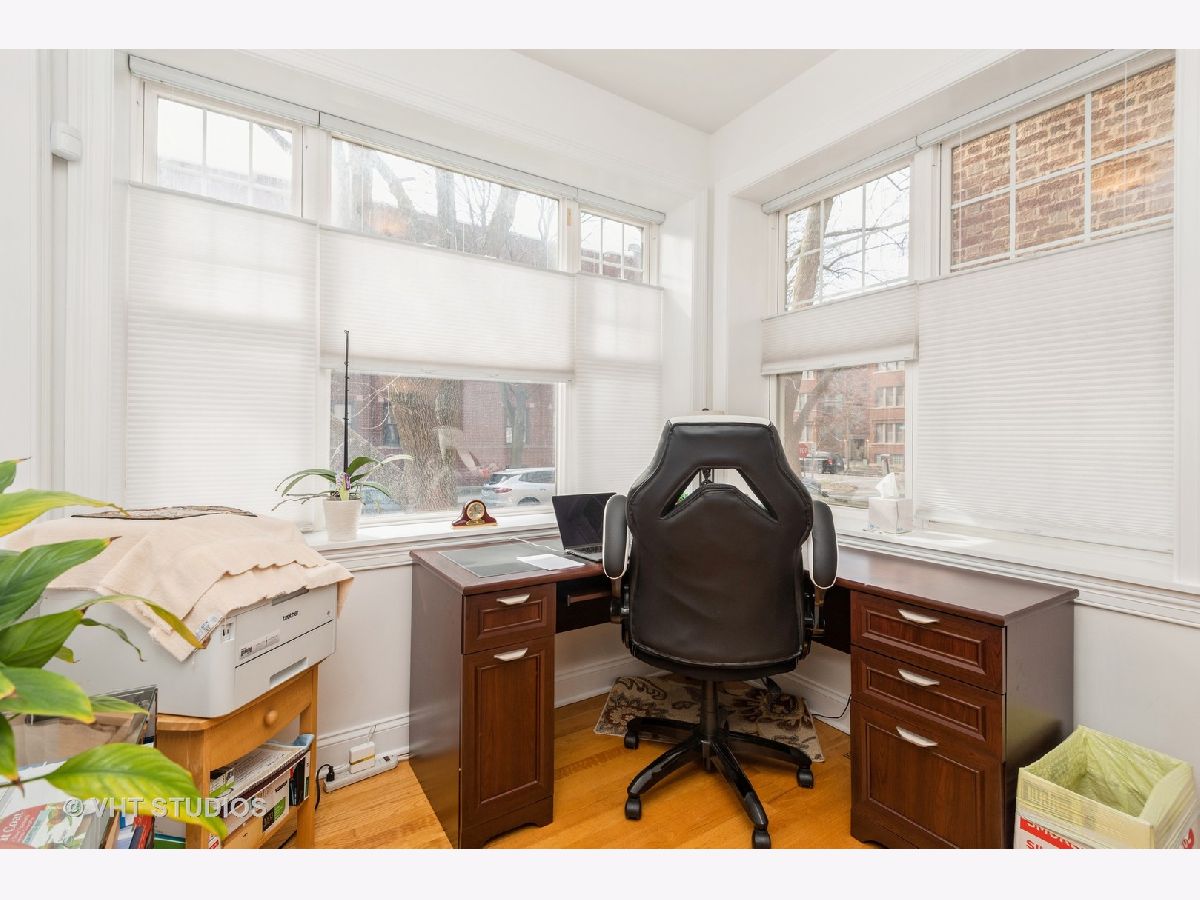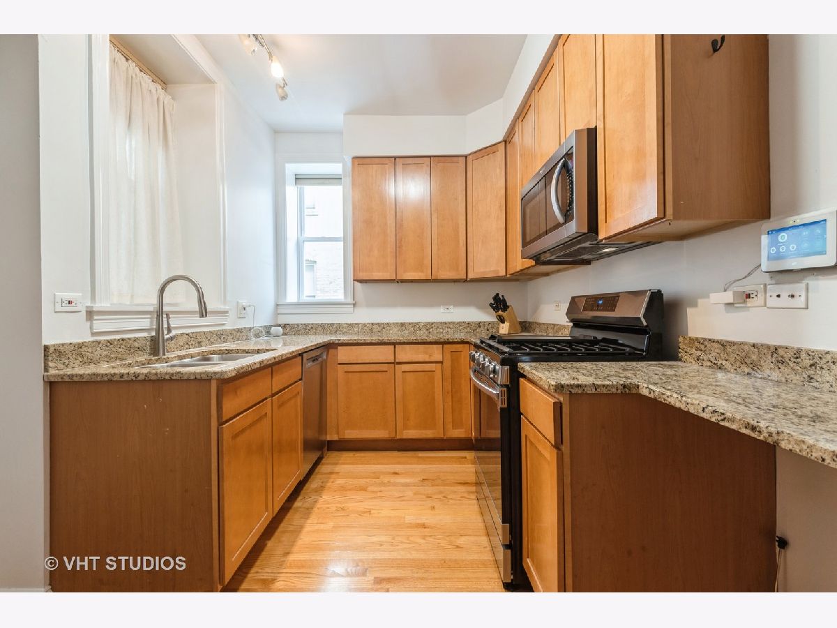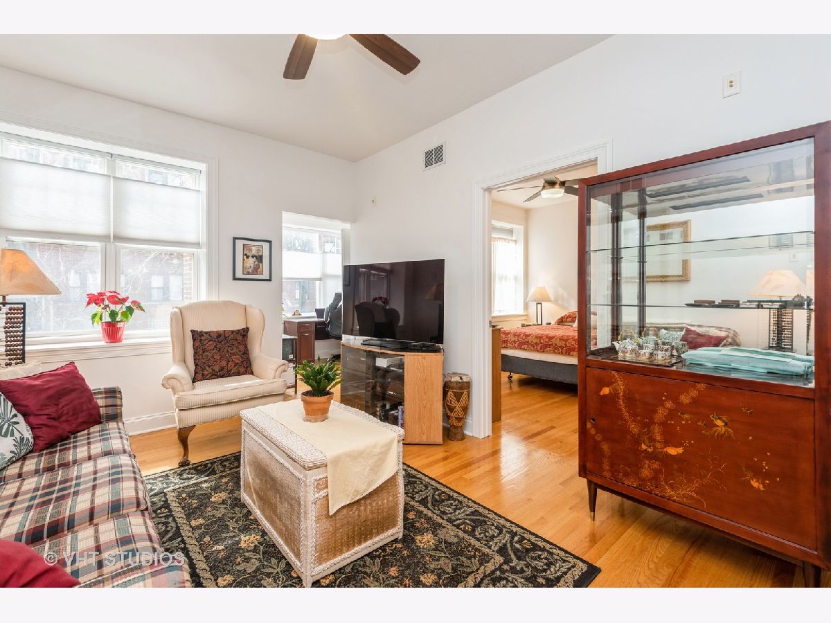 Beautiful spacious 2 bedroom, 2 bathroom first floor condo, with a bonus sunroom, on a great tree-lined street. Updated kitchen with maple cabinetry, stainless steel appliances, and granite counter tops. Updated windows with bright views and tons of sunlight with hardwood floors throughout. Modern amenities include almost new $15K central heating & central air system, and full-size washer/dryer in your private oversized laundry room with extra room for storage and bikes in the basement. Deck and back patio for grilling, just steps from the Red Line & Sheridan buses, nightlife, Glenwood Avenue Arts District, parks and 4 blocks from the beach. Well maintained, professionally managed HOA with improvements including new roof.