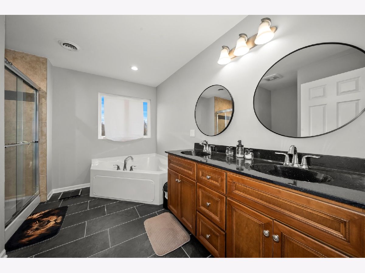 Come see this beautiful 4 Bedroom, 2.5 Bathroom Home with has a 2-car attached garage, and central air and heating which was built in 2021. The 1st floor of this home offers a separate living and dining room combo, family room with a gas fireplace and is wired for an in-wall entertainment system, half bathroom, 2 closet areas, eat in kitchen with beautiful expresso cabinets and granite countertops, and LG stainless steel appliances. The second floor has all 4 bedrooms and a separate laundry room with a Washer and Dryer. The Primary Bedroom is spacious with a walk-in closet, large primary bathroom with a separate walk-in shower, whirlpool tub, and double vanity sink. Full unfinished basement with rough in plumbing to build an additional bathroom, this space is perfect for you to bring your ideas to make the basement your own. Lastly, the backyard has a privacy fence perfect for entertainment or to let your pets run around.