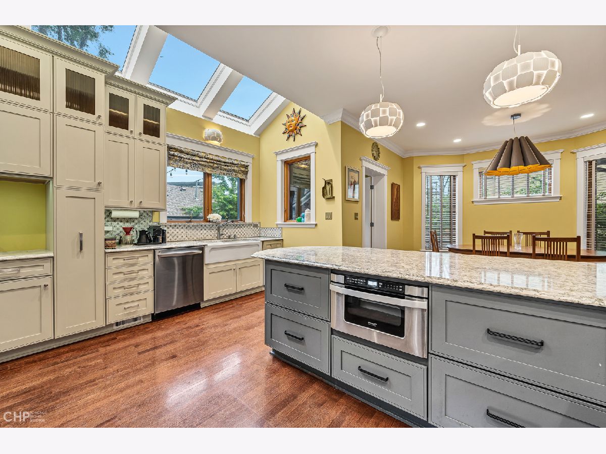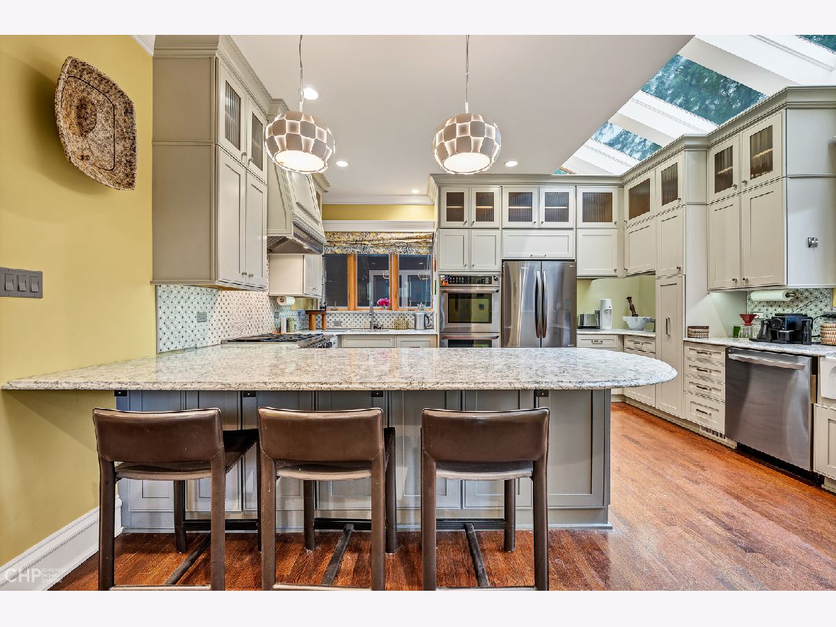 Prepare to be 'wowed' with this property! Located steps from the Lake, on one of East Roger Park's most beautiful streets, this home delivers 2022 amenities in a vintage setting with immense character. This fully reconstructed side-entry American Foursquare allows maximum interior uninterrupted space; featuring a bright enclosed multi-season porch overlooking tree-lined Sherwin with a wonderful eye for every detail. A custom fireplace surround with new gas log insert enhances the large living room, warming up the space in every sense of the word. The reconfigured main level includes a half bath in the entry hallway that is an absolute gem. A large casement opening leads into a fully renovated kitchen, flooded with natural light and adjoining the dining room to create a welcoming space for any occasion. Thoughtfully designed with the best touches of commercial kitchens while maintaining the warmth of a home. Dream kitchen with all brushed stainless appliances including double wall ovens, Bluestar range, double sink with farmhouse front and separate prep. Abundant high-quality cabinets for anything needed to deliver a great experience, seamless Cambria quartz, custom Birch wood cabinets, extra deep and built to allow extra weight carry, 30 inch deep in parts, dual spice cabinet storage. Finishes all reflect the spirit of this home or quality craftsmanship and impeccable design. Pass through a newly added mudroom with tile floors which lead out to a generous backyard. The bedroom level has been reconfigured to allow oversized closets in both guest bedrooms, a completely renovated full bath in hallway, and elegant master bedroom suite with walk-in closet and beautifully finished bright full bath. The top floor has a full-size interior staircase, great ceiling height, and skylights. A large true multi-purpose room; a wonderful family room, guest bedroom, study or convert it into a full floor in-suite. The house sits on a double wide and deep lot and an incredible 40', 4 CAR, heated brick garage has its own HVAC. The original roof of the garage was completely replaced with a full-length gable roof to create a maximum allowable height, a full-length, second-floor with incredible potential. The roof is insulated with closed cell spray foam and 5/8" fire-rated drywall; as a result, the second floor is cool in the summer, and warm on the winter. The garage is divided by a wall into a three-car heated workspace (easily converted back to garage space) and a one-car garage (with an optional 220v electric car outlet available). The garage also includes a 100amp service, glass block security side windows, insulated garage doors, and a wide custom internal stairway to the second floor. The alley side garage apron has room for two additional parked cars making for a total of SIX parking spaces! This a dream come true for anyone needing an auxiliary building for a home shop, car collecting, kids hangout or small business and you don't have to pay 100,000 to build it yourself. The basement is full of potential, full size, unfinished lower level has been dug down to allow 7 feet and 5 inches in height, original beam have been replaced with steel beam supports. Open space allows for all of your ideas, currently used as laundry, home gym and additional storage. This home has been recently tuckpointed. Redesigned exterior space features a low-maintenance composite deck and pavers surrounding a large fire pit. Enjoy full privacy with a new custom cedar fence surround, oversized metal gates provide an elegant look while allowing easy access for deliveries. Lush garden beds designed for sequential flowering plants and bushes surrounds an expansive back lawn This fabulous property is steps to restaurants, pubs, coffee shops, the lakefront; immediate access to the Red Line and buses on Sheridan. Minutes to Lake Shore Drive, Andersonville and Downtown Evanston. A wonderful opportunity and a very special home.
