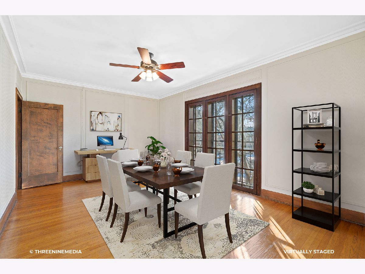 Charming, spacious 1 bedroom condo located in the heart of downtown Evanston! Sun filled and spacious 1200 square foot condo has a large entry foyer, moldings throughout, French doors and gleaming hardwood floors. Kitchen is updated with stainless steel appliances with tall cabinetry. Large bedroom contains ample closet space. Huge dining room that can easily be used as an office has grand windows. Bathroom maintains character with original newly resurfaced sink, garden tub, and large vanity. The serene landscape back courtyard offers great breezes and tranquil seating. Easy access garage parking included. Transportation, stores, restaurants, museums, lake, parks, fitness centers, and theater are all walking distance. Pets welcome! You don't want to miss seeing this amazing unit!