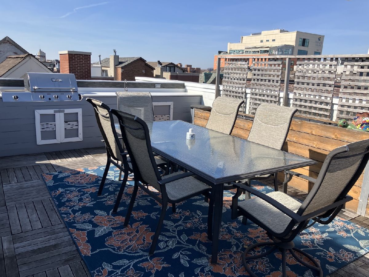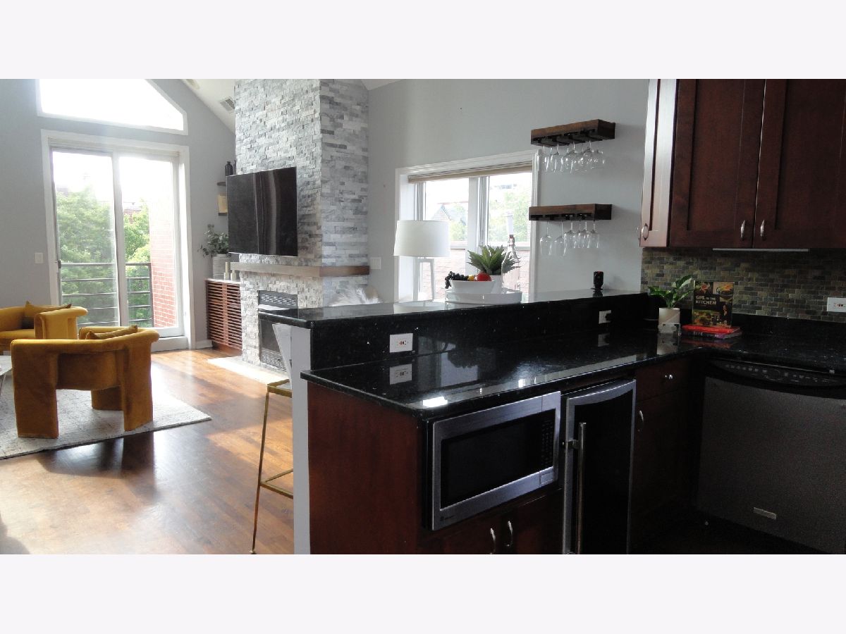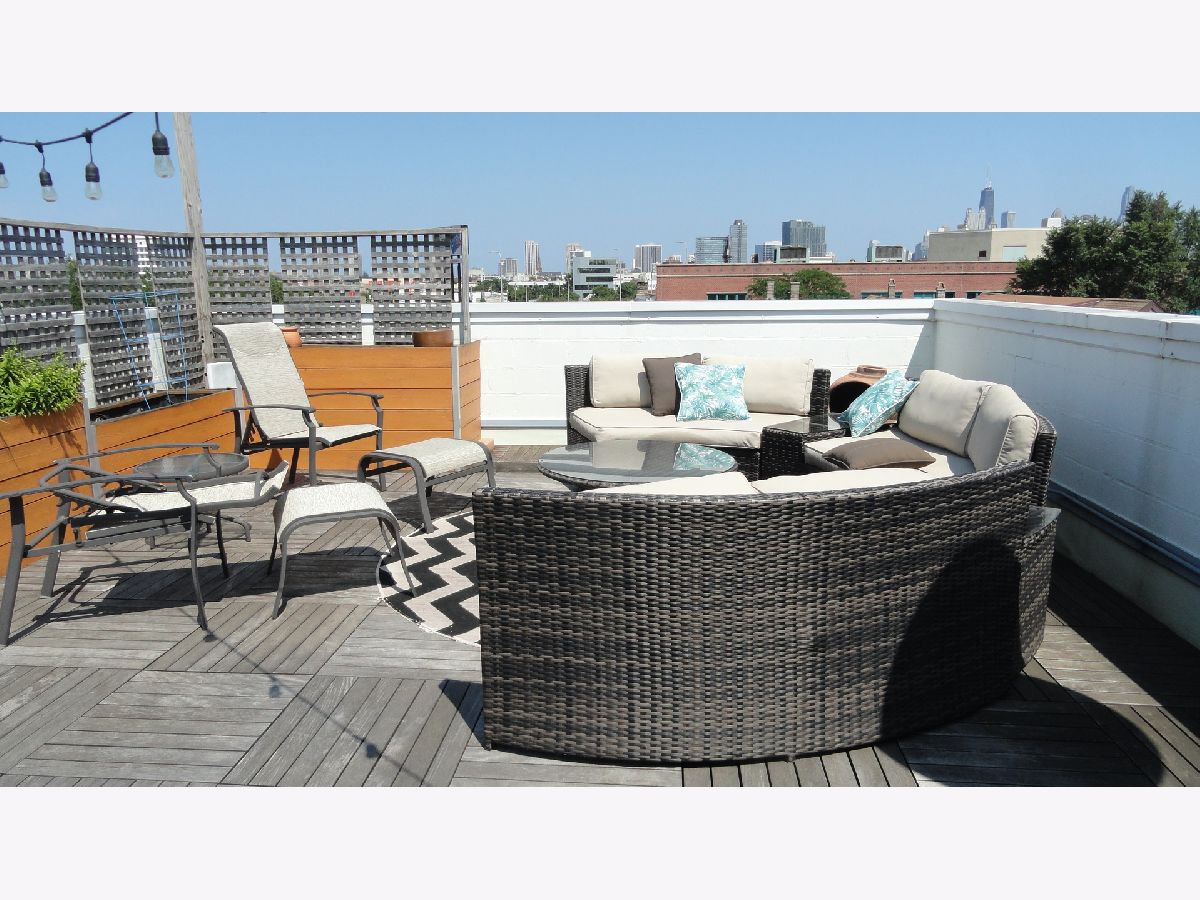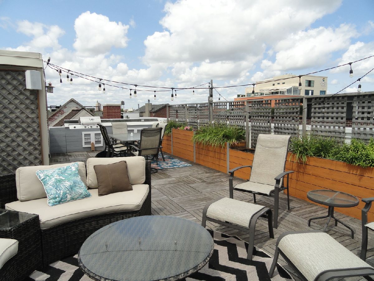 Welcome to urban living at its finest! This exquisite penthouse condo is located in the desirable Noble Square neighborhood bordering Wicker Park, and offers the perfect blend of style, convenience and luxury. Stunning cathedral ceilings and large picture windows let in an abundance of natural light in this 2 bedroom 2 bath unit. The open concept Living/Dining room features a gas fireplace with full height stone tile surrounds and a gorgeous built in walnut cabinet with Cristallo Quartzite countertop and hearth sourced from Brazil. Kitchen features stainless steel appliances, wine fridge, plenty of shaker cabinets with under cabinet lighting paired with hi-low granite countertops. 3 incredible separate outdoor spaces including a private roof deck oasis accessible through in-unit stairs. The rooftop is an entertainers dream with famous Chicago skyline views, planting boxes, built in gas grill, and granite bar with water faucet and sink. Large master bedroom includes ensuite bath with jetted tub and separate shower, double vanity, meticulously renovated with modern and elegant finishes and fixtures. Prime location that makes commuting and outdoor recreation a breeze. Easy access to public transportation including the Clybourn Metra stop, Division Blue Line stop, and 90/94 expressway. Walking distance to nightlife, 606 Trail, shopping, restaurants, parks and schools. Don't feel like walking? Say goodbye to the hassles of street parking as this unit comes with 2 tandem parking spaces for you or your guests. At closing, seller will contribute with $600 towards home warranty.