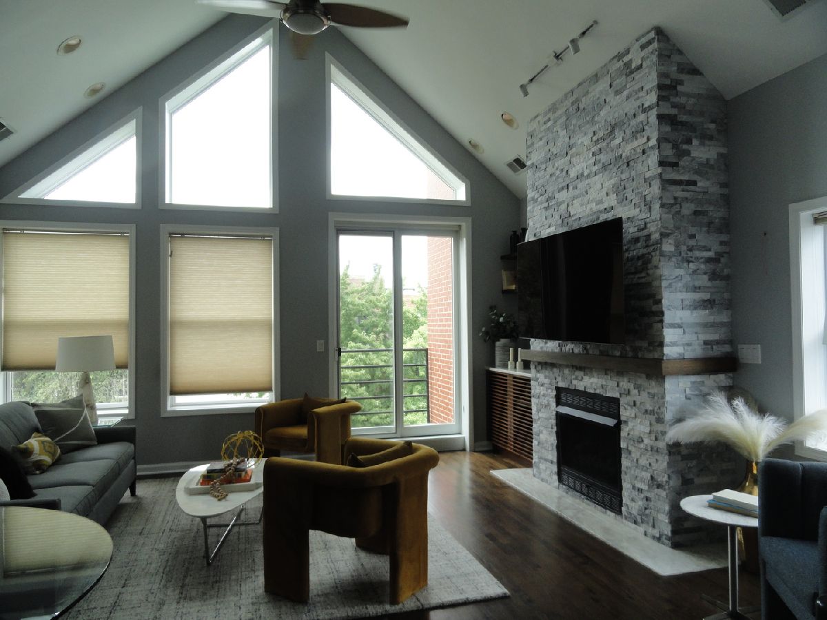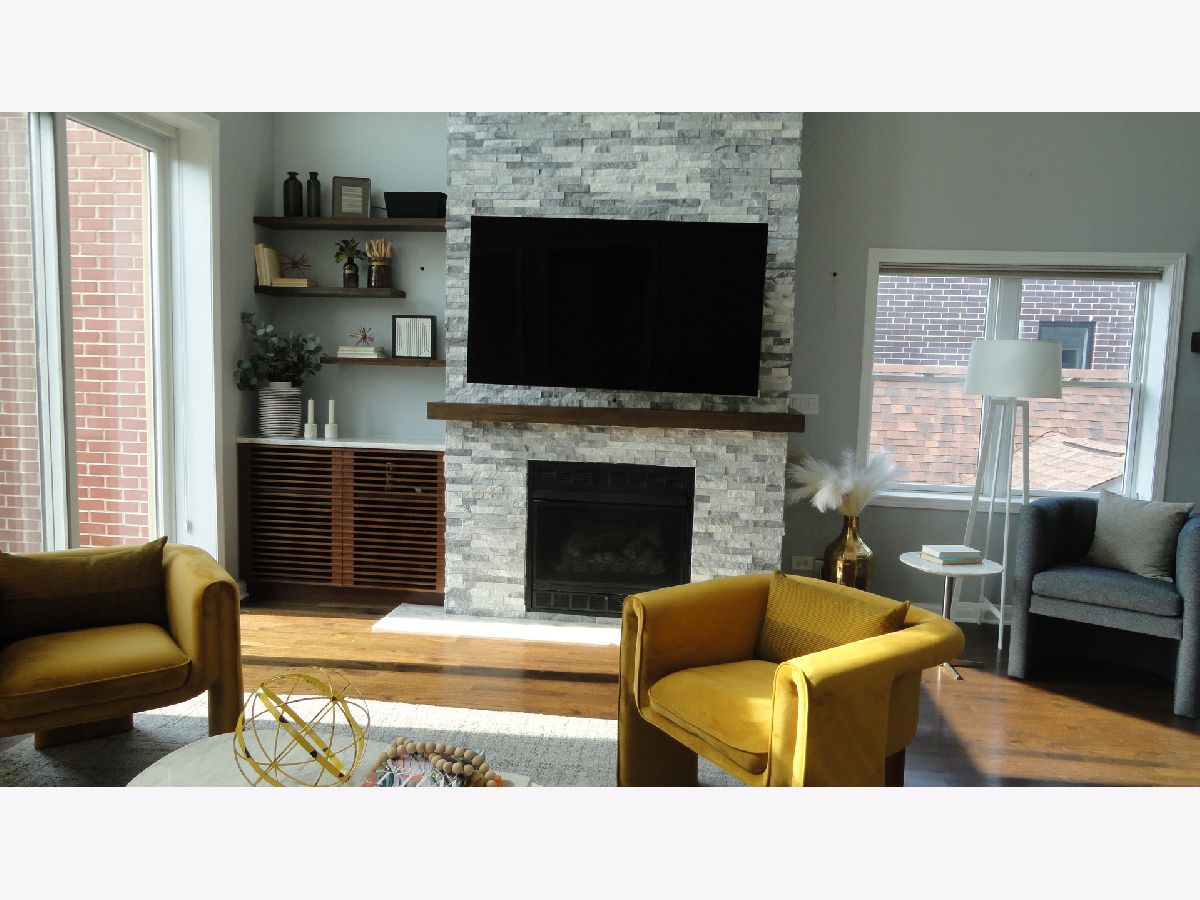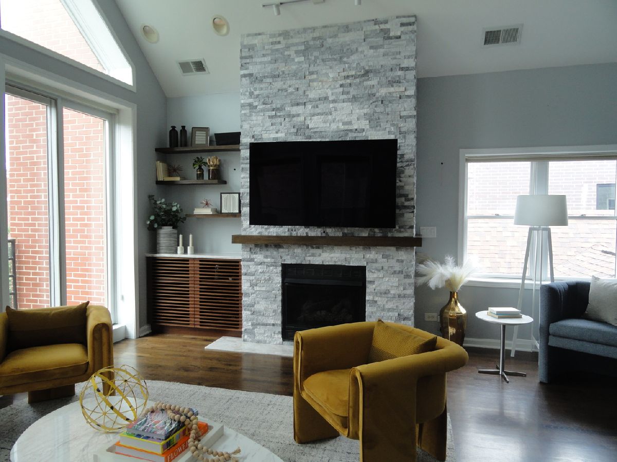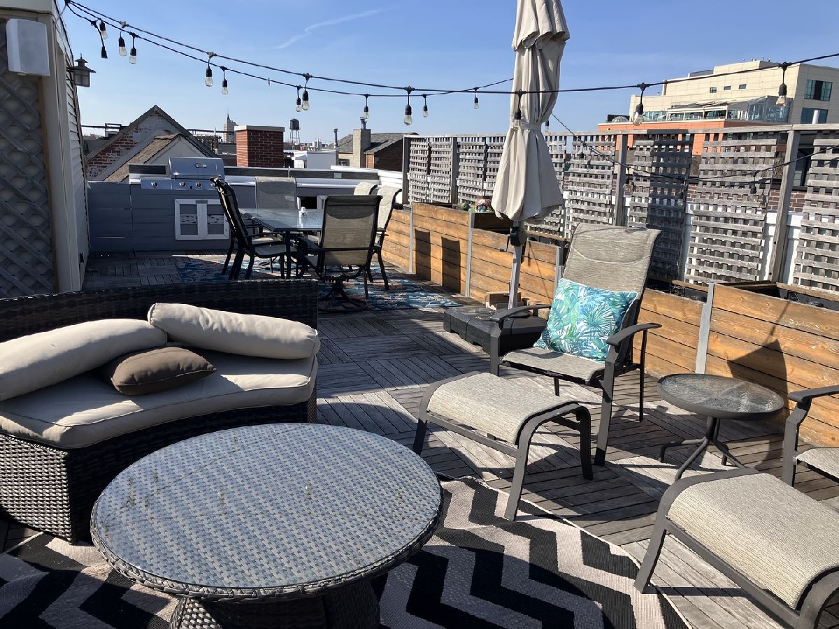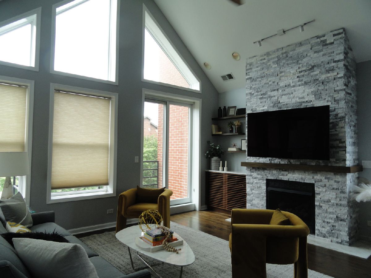 Welcome to urban living at its finest! This exquisite penthouse condo is located in the desirable Noble Square neighborhood bordering Wicker Park, and offers the perfect blend of style, convenience and luxury. Stunning cathedral ceilings and large picture windows let in an abundance of natural light in this 2 bedroom 2 bath unit. The open concept Living/Dining room features a gas fireplace with full height stone tile surrounds and a gorgeous built in walnut cabinet with Cristallo Quartzite countertop and hearth sourced from Brazil. Kitchen features stainless steel appliances, wine fridge, plenty of shaker cabinets with under cabinet lighting paired with hi-low granite countertops. 3 incredible separate outdoor spaces including a private roof deck oasis accessible through in-unit stairs. The rooftop is an entertainers dream with famous Chicago skyline views, planting boxes, built in gas grill, and granite bar with water faucet and sink. Large master bedroom includes ensuite bath with jetted tub and separate shower, double vanity, meticulously renovated with modern and elegant finishes and fixtures. Prime location that makes commuting and outdoor recreation a breeze. Easy access to public transportation including the Clybourn Metra stop, Division Blue Line stop, and 90/94 expressway. Walking distance to nightlife, 606 Trail, shopping, restaurants, parks and schools. Don't feel like walking? Say goodbye to the hassles of street parking as this unit comes with 2 tandem parking spaces for you or your guests. At closing, seller will contribute with $600 towards home warranty.