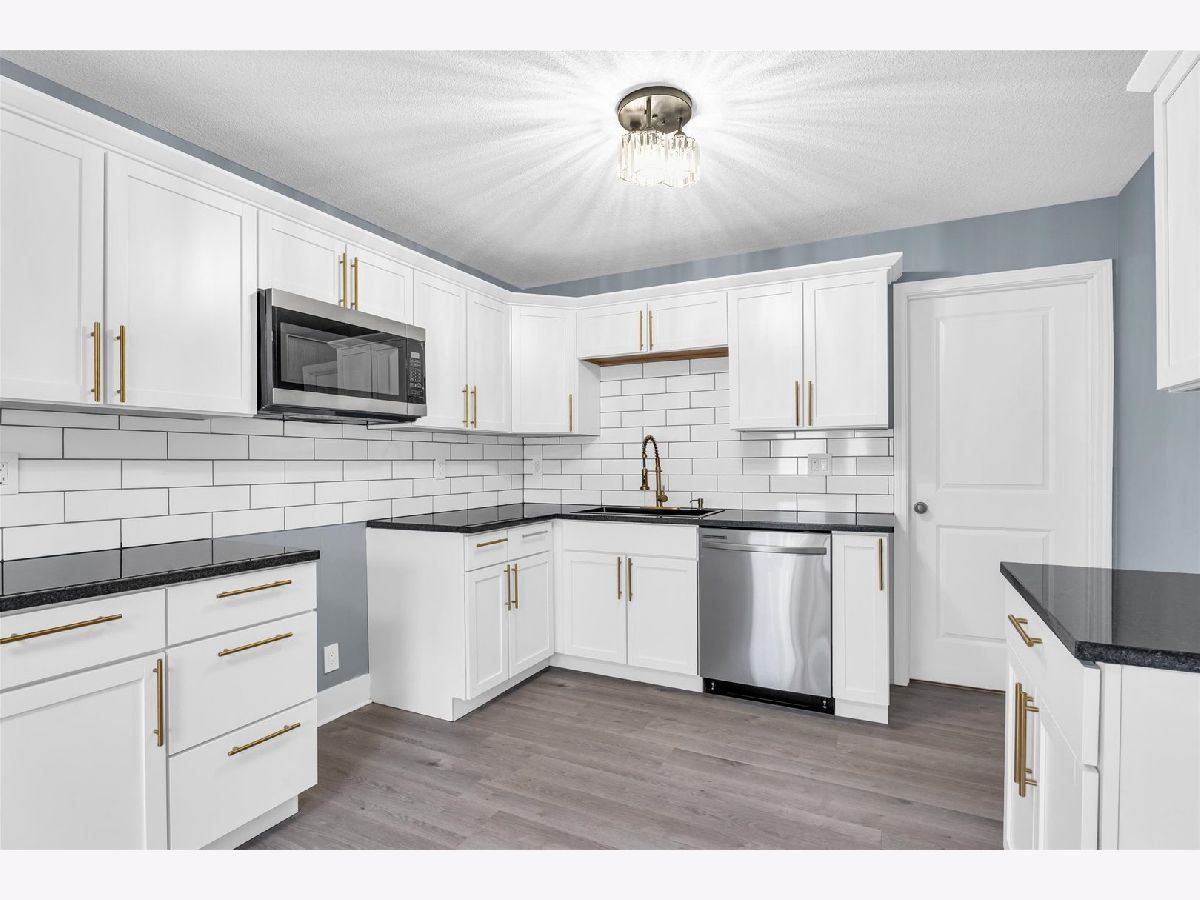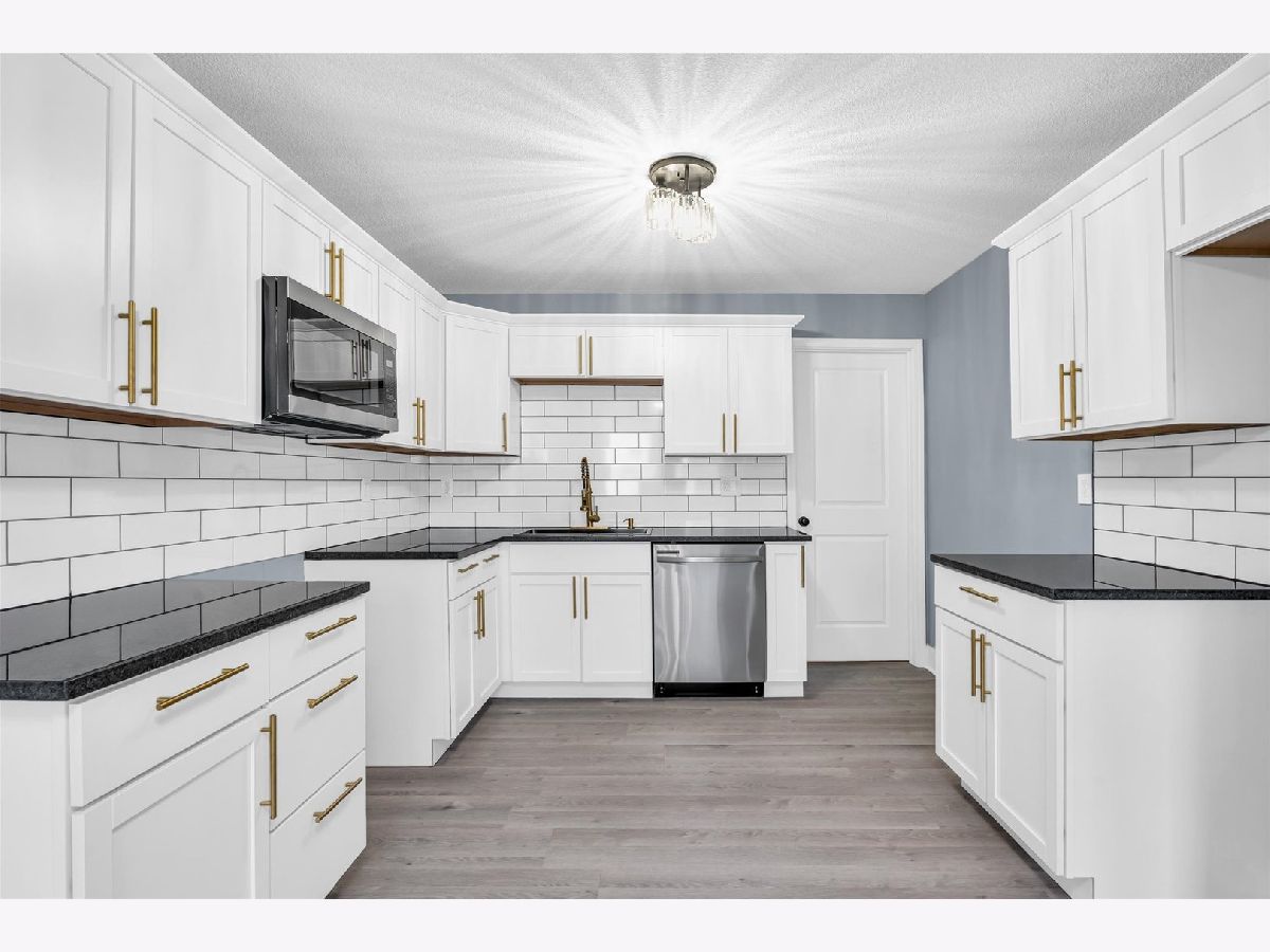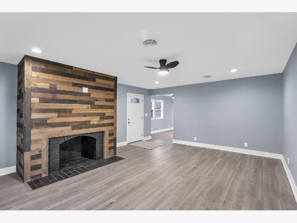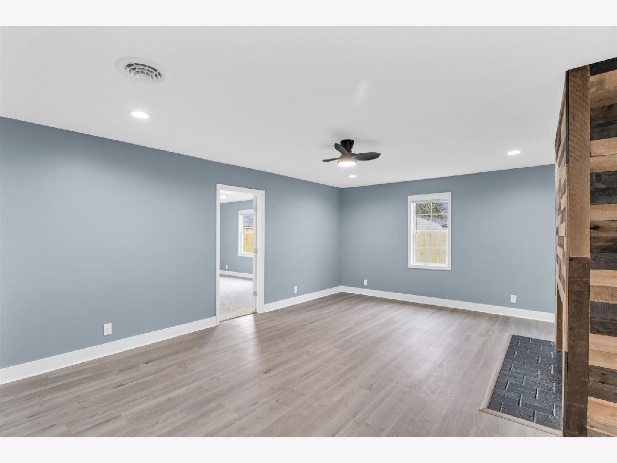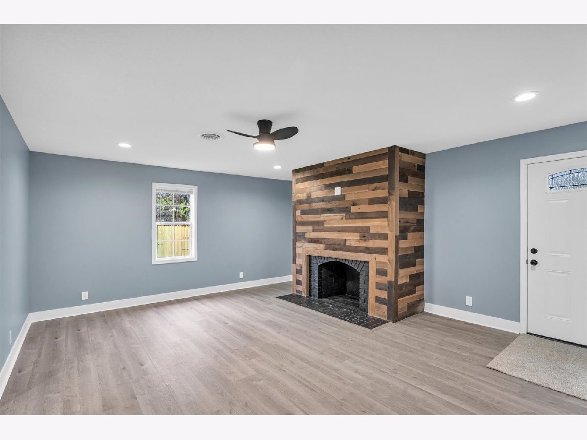 Located right across the street from a planned park and detention pond with ornamental wall, park-like amenities, pedestrian walkway, bridges and lighting. The design includes a basketball court, splash play area and playground. The exterior of this home has new siding, exterior doors, gutters and the backyard has a brand new privacy fence. Step inside to a completely remodeled home with high end finishes. Luxury vinyl floors, new carpet, freshly painted walls, new interior doors, modern ceiling fans and lights, blinds and new HVAC system. The Living room flows right into the brand new custom kitchen with stainless appliances (waiting on new stove and fridge to arrive), white cabinetry, granite counters, tile backsplash and a large sink. There is a laundry room right off of the kitchen. Around the corner is a large den with a statement fireplace. The primary suite has it's own full bath, two separate closets and plenty of room for a king bedroom suite. Off of the living area are three more bedrooms and another full bath that has also been completely remodeled.