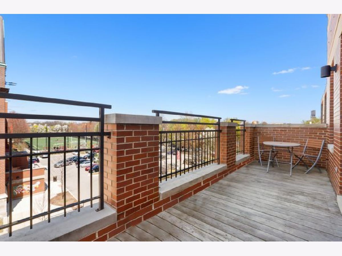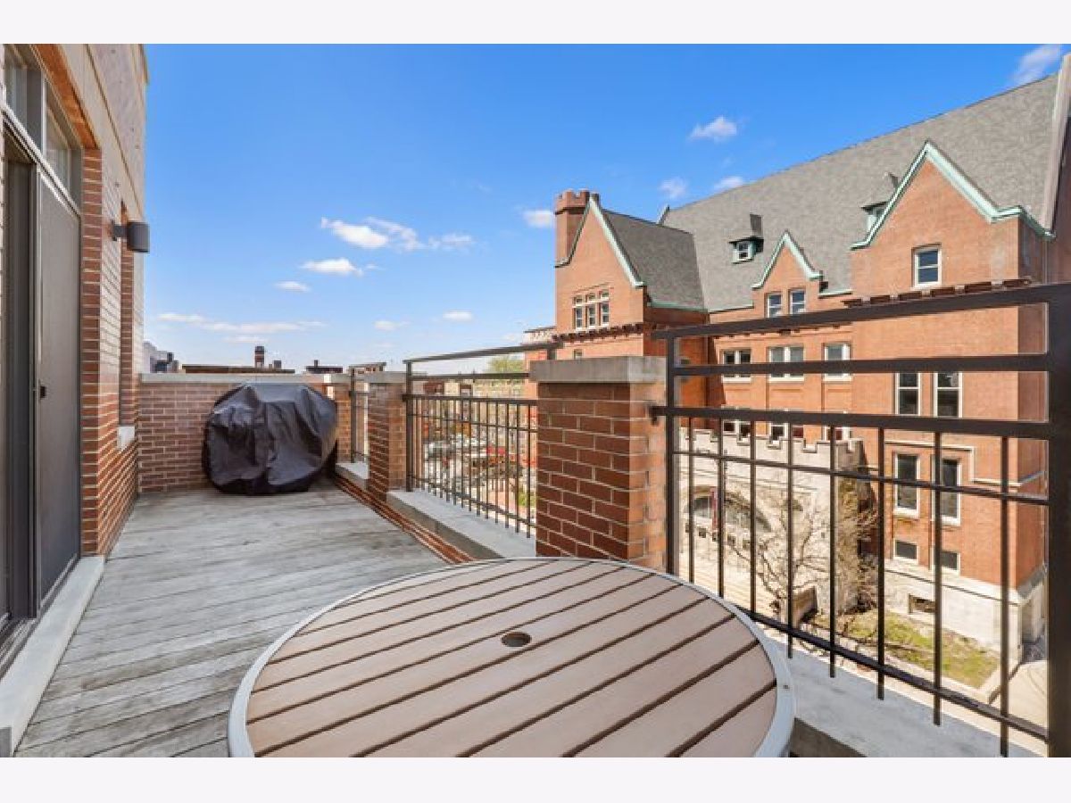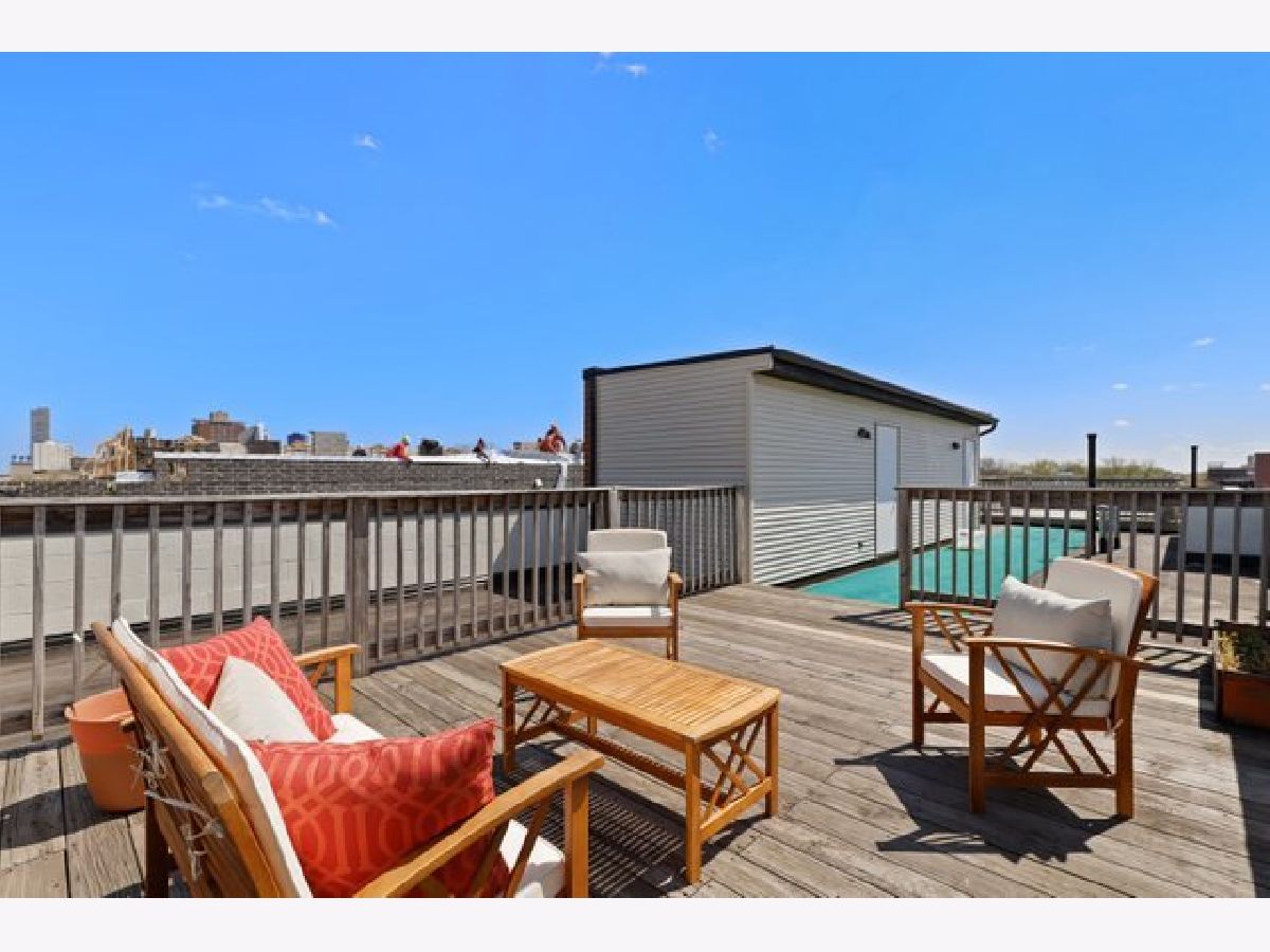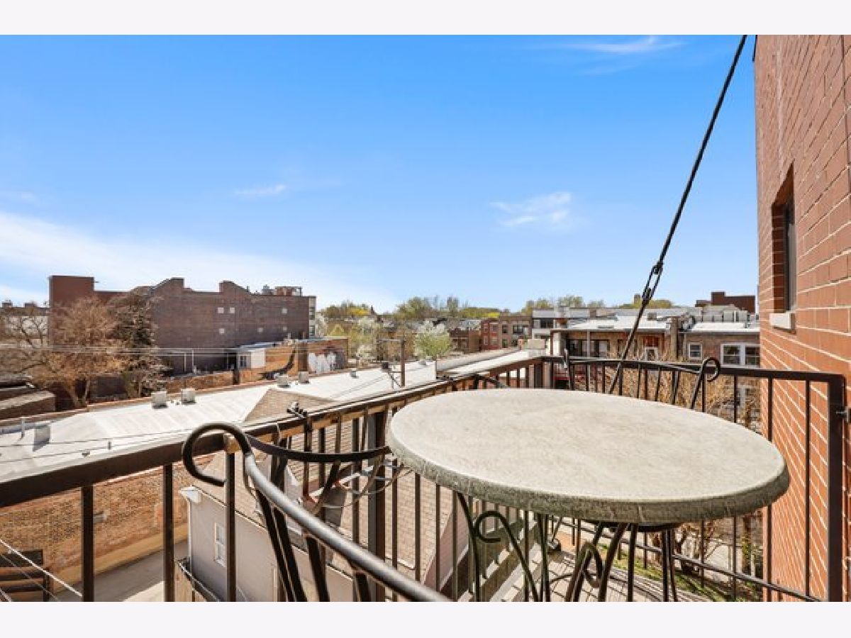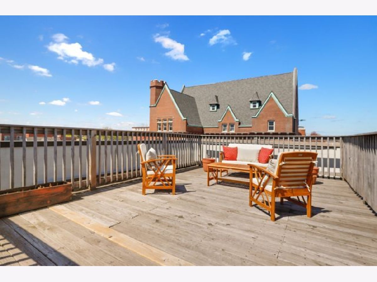 Top floor extra wide 3 bedroom, 2 bath condo with three private outdoor spaces sits in Blaine School District. This spacious unit features an open floor plan, hardwood floors throughout, gas lit fireplace and in unit washer/dryer. Three outdoor spaces include a front 22' x 6' terrace off living/dining room perfect for grilling, a south facing balcony off primary bedroom plus an expansive private top floor roof deck. Kitchen with custom 42" cabinets, granite counter tops including peninsula breakfast bar, herringbone backsplash and stainless steel appliances. Primary bedroom en suite with large organized walk in closet plus bath with double sinks and separate shower and soaking tub. Exterior parking spot is included. Across the street from new playlot. Blocks to Irving Park Brown Line, shopping and restaurants.