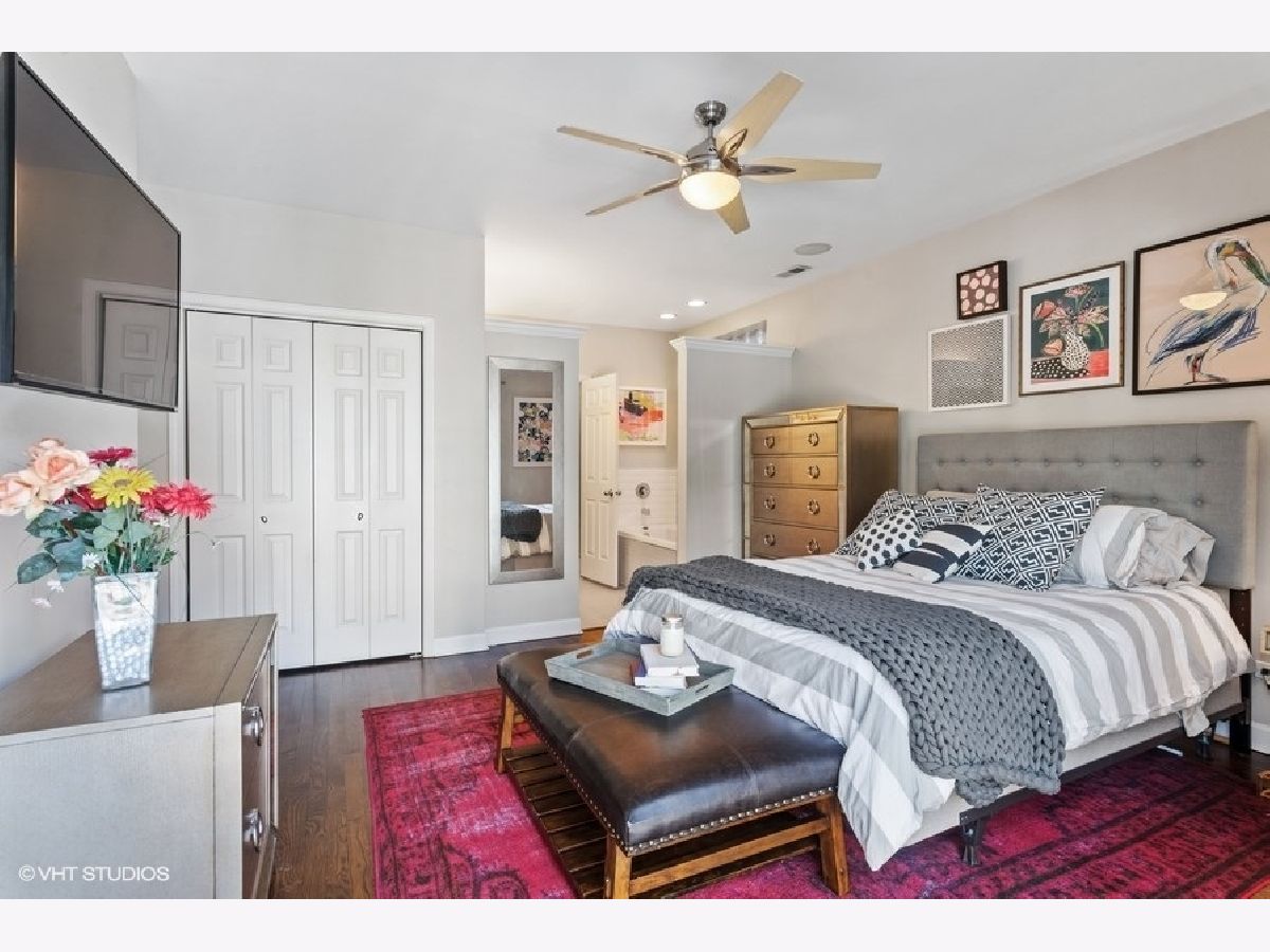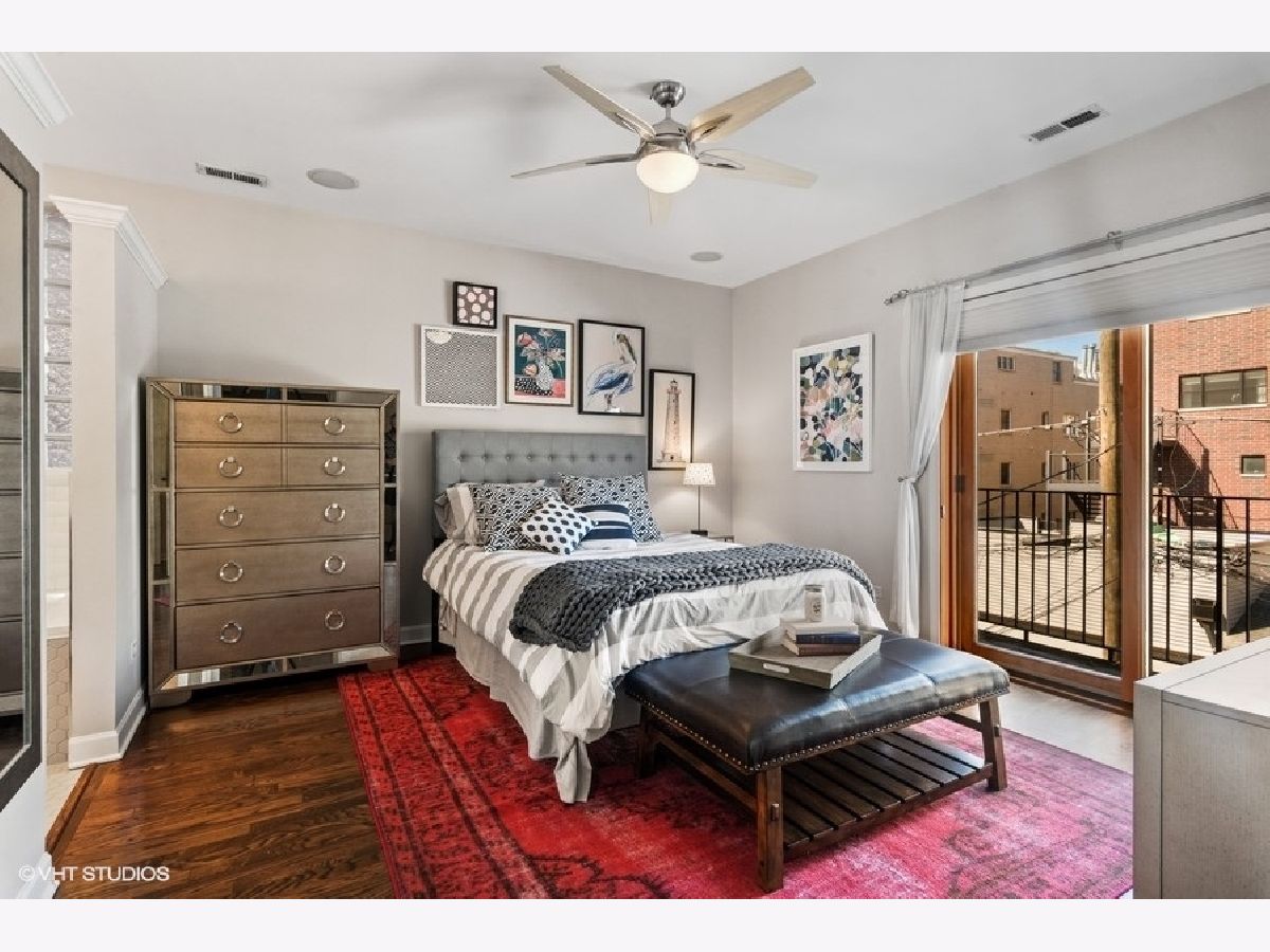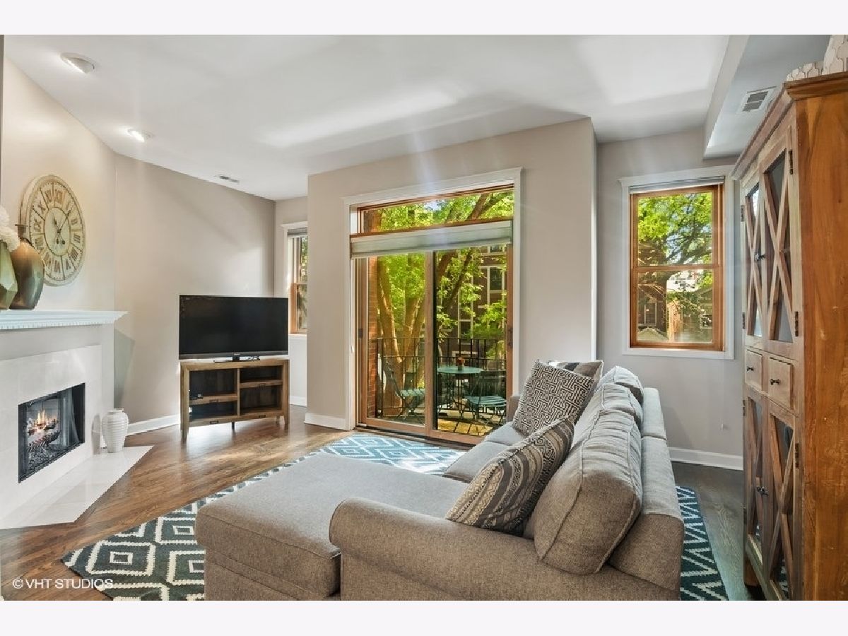 Attention investors: great opportunity to purchase now with fantastic tenants through March 1, 2026 at $3,700 per month. Nestled into a tree-lined street in Old Town, this condo is steps from the Sedgwick El for easy commuting - only two stops to the Loop! Light and bright, this home features walnut stained hardwood floors throughout. Step into the living room with a cozy fireplace. Enjoy coffee on your balcony where you'll feel like you're in the treetops! The dining area allows for plenty of space for dining and entertainment. The open kitchen allows for easy conversation and features granite countertops, stainless steel appliances and 42" cabinetry. The large primary bedroom has a balcony and two closets, including a walk-in with Elfa organization system. The newly remodeled (2020) primary bathroom with designer tile features West Elm vanity, dual sinks, mirrors, and lighting. Whirlpool tub and separate shower (2018). The second bedroom is large enough for queen bed, or use as office. The second full bath is conveniently located in the hall and has had updates. Parking space and storage is included with this unit. Awesome Old Town location close to Wells Street with way too many restaurants to list, nightlife, cafes, entertainment, and shopping! New City with Mariano's and other shopping within walking distance, as well as all kinds of shopping on North Ave as well! Roof (2017), Hot Water Heater, Stove, Microwave (2015), W/D (2018), A/C (2017). (Photos from when owner lived in home.)