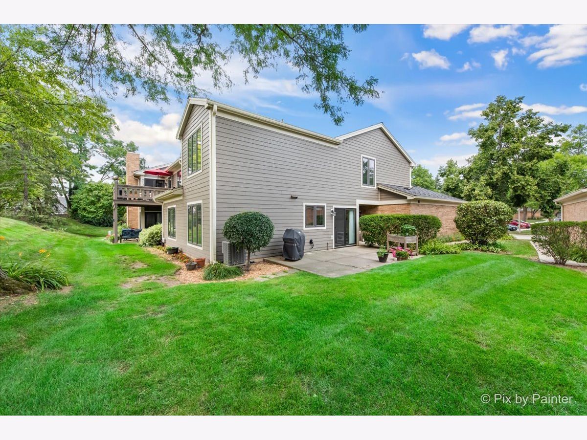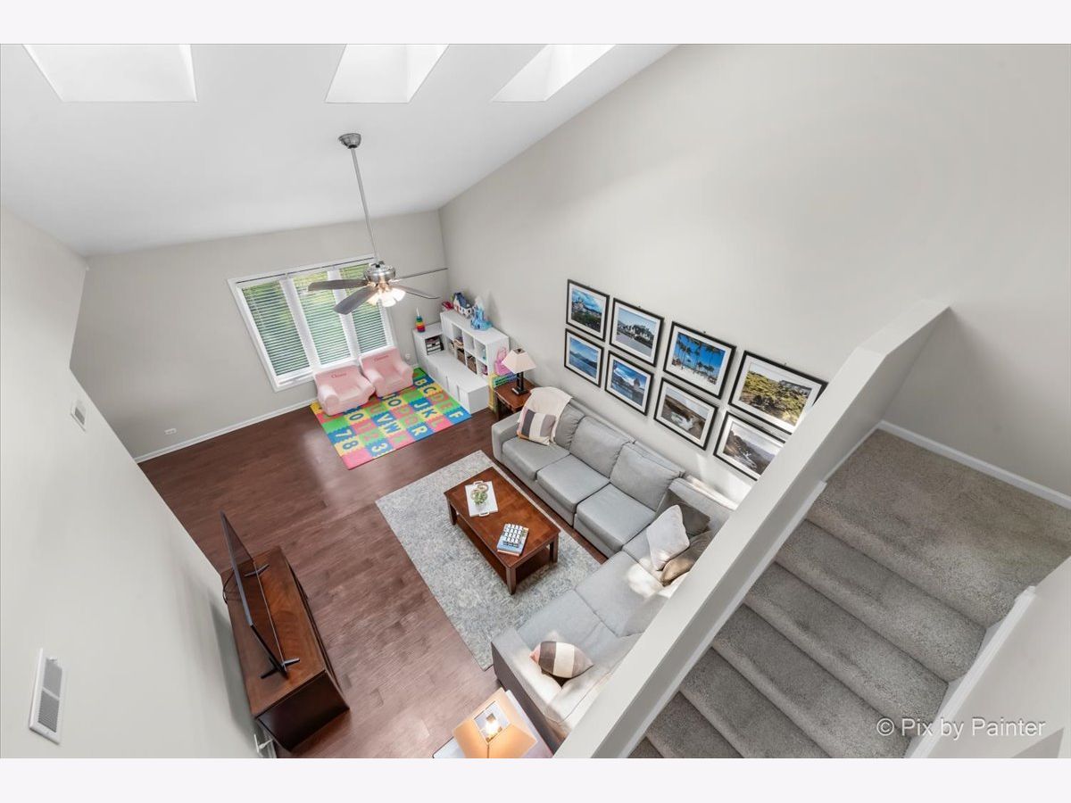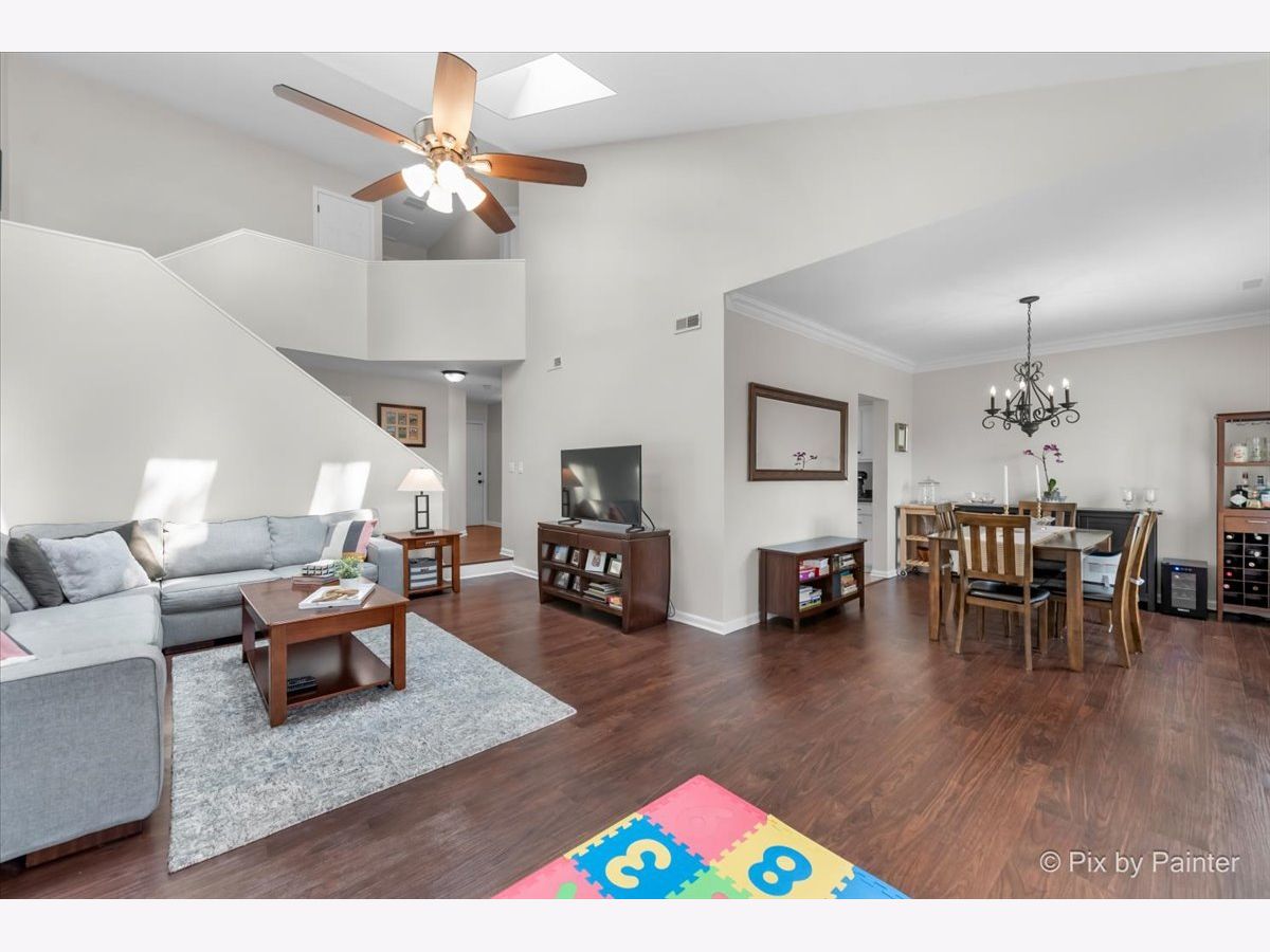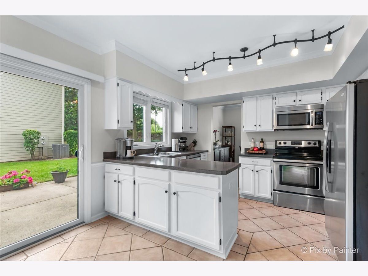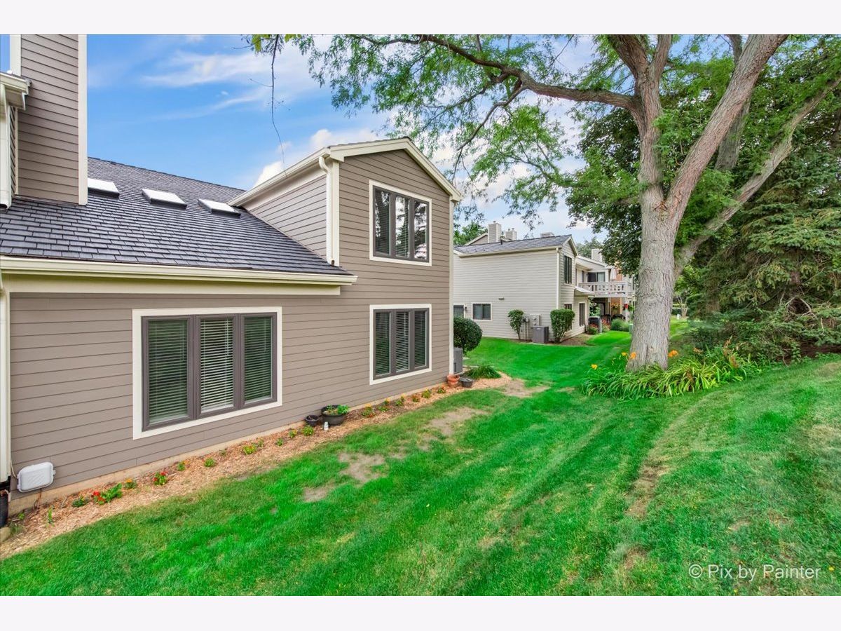 Welcome to this light-filled end-unit townhome, perfectly situated on a quiet cul-de-sac in the highly sought-after Riva Ridge neighborhood. Step inside to discover a bright, open floor plan featuring soaring two-story vaulted ceilings, skylights, and an abundance of natural light. Newer luxury vinyl flooring runs throughout the main level, adding both style and durability. The eat-in kitchen is equipped with stainless steel appliances, generous counter space, and direct access to a private, oversized patio-perfect for relaxing or entertaining guests. The spacious living room and separate dining area create a seamless layout ideal for both everyday comfort and hosting gatherings. Upstairs, the expansive primary suite is a true retreat, complete with vaulted ceilings, a walk-in closet, and a beautifully updated bath featuring a double vanity, soaking tub, and separate shower. Additional highlights include a deep two-car garage with ample storage, a new roof (2022), updated siding (2019), flooring (2019), and dishwasher (2022). This move-in ready home is located near top-rated schools and falls within the award-winning Choice High School District 128, offering the option to attend either Libertyville or Vernon Hills High School. Enjoy close proximity to shopping, transportation, parks, scenic trails, downtown Libertyville, restaurants, farmers markets, year-round community events, and Mellody Farm. Experience the best of Libertyville living in this exceptional home!
