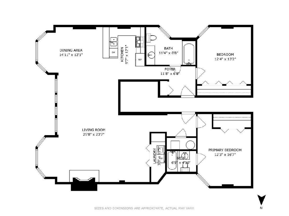 Amazing opportunity to purchase a truly unique 2-bedroon/2-bathroom loft condo in a boutique South Loop building. This beautiful condo features gorgeous east facing bay windows, hardwood floors throughout, soaring 10 ft ceilings, fireplace, and stunning exposed brick. Unit includes in-unit laundry with side-by-side washer and dryer, gas stove, EXPANSIVE open concept living and dining areas, and both bedrooms are fully enclosed with exterior windows. One exterior parking for an additional amount. Building offers additional storage and bike storage. Ideal South Loop location, near Mariano's grocery store, parks, museums, public transit, and more! Perfect condo for owner occupant or investor!