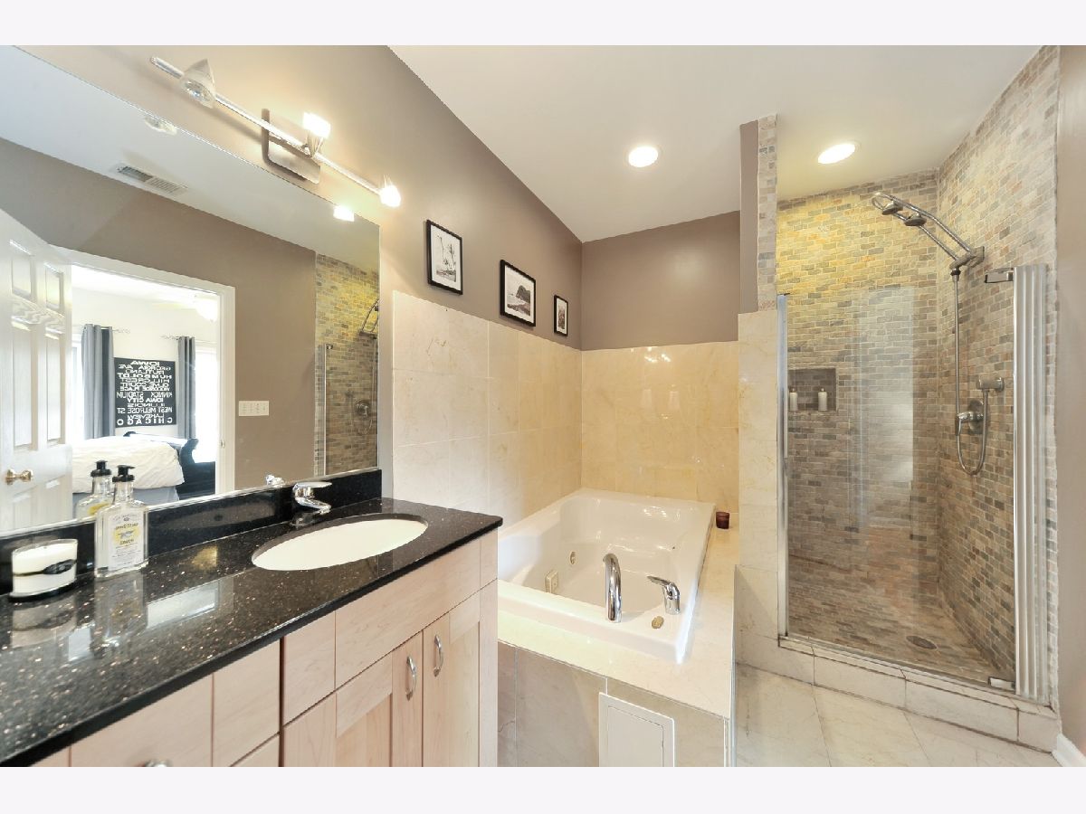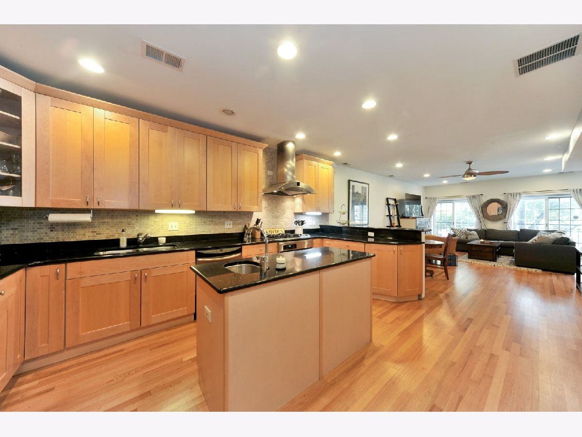 EXTRA WIDE SUNNY & SPACIOUS 2BD/2BA+OFFICE AREA! CHEF'S KITCHEN W/ TONS OF CABINET SPACE, GRANITE C-TOPS, ISLAND/BFAST BAR & WINE COOLER W/ SS APPLIANCES. EXPANSIVE UNIT GETS GREAT LIGHT, FEATURES HDWD FLRS THRU-OUT W/SPACIOUS PRIMARY BEDROOM & WIC. PRIMARY BATH W/ JACUZZI & SEPERATE SHOWER AND DOUBLE SINKS. LRG PRIVATE DECK, IN UNIT WASHER/DRYER. WALK TO EVERYTHING BUCKTOWN / WICKER PARK HAS TO OFFER - SHOPPING, RESTAURANTS, BARS, PUBLIC TRANSPORTATION AND MORE! 1 EXTERIOR PARKING SPOT AND EXTRA STORAGE INCLUDED. YOU CAN'T HEAR ASHLAND ONCE YOU ARE INSIDE - AND BDRMS ARE IN BACK OF UNIT.