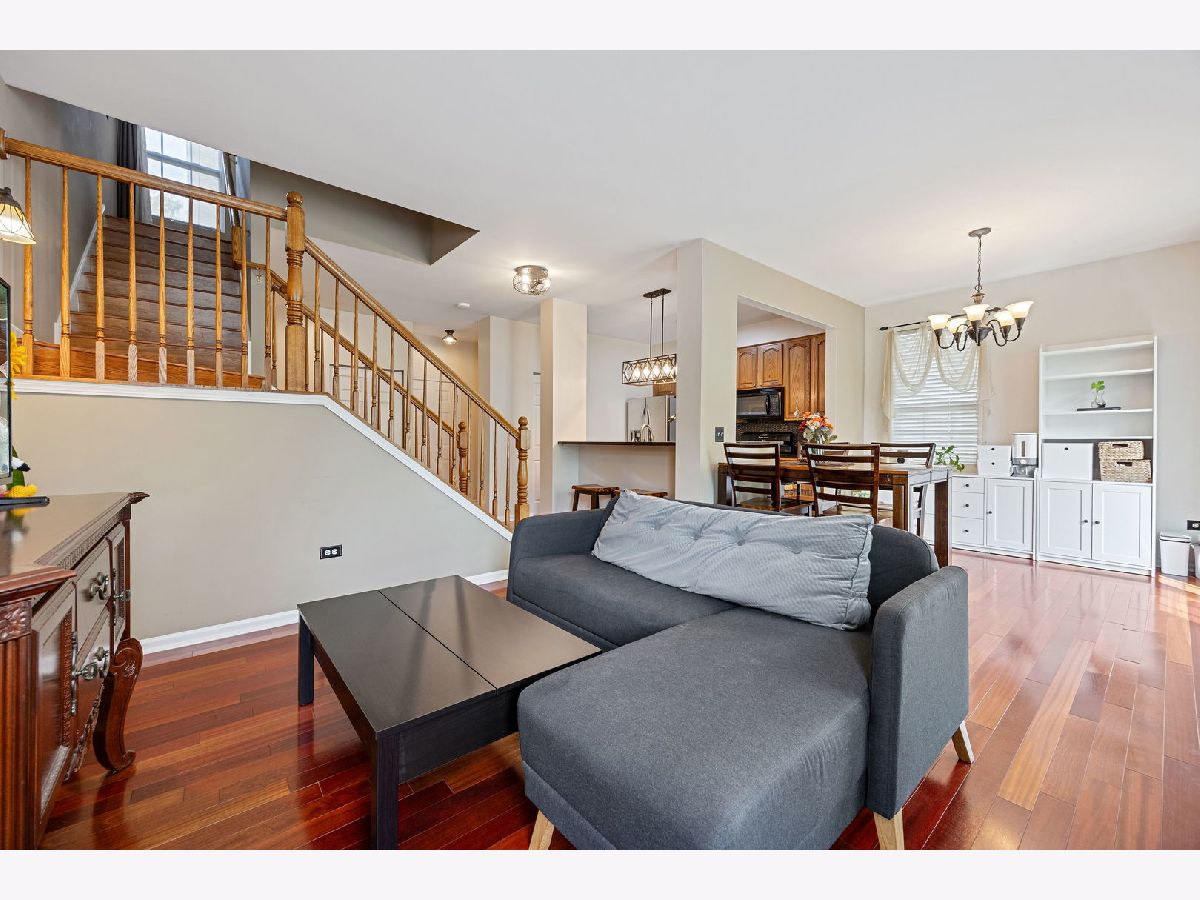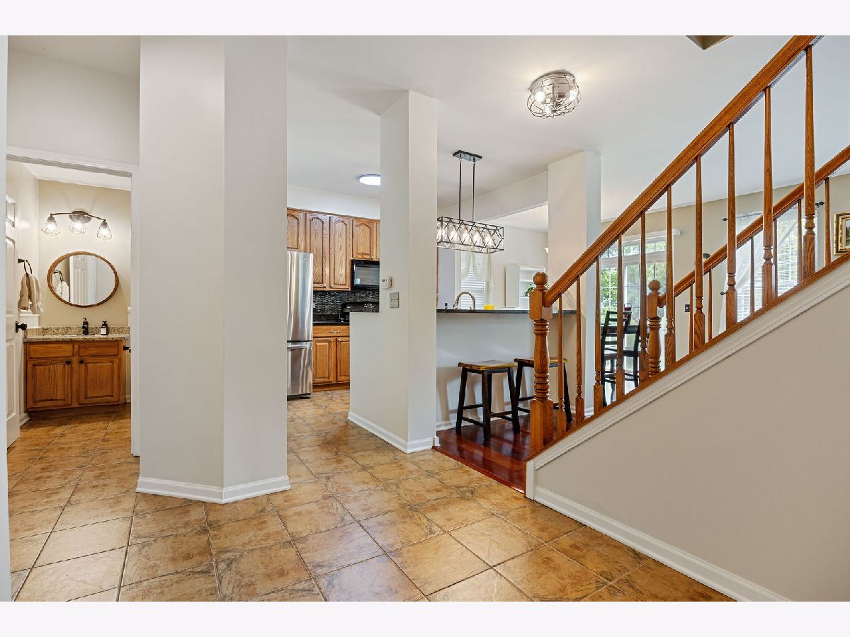 End unit and move in ready! 2 Story private entrance condo with large loft and finished basement! Open concept and tall ceiling first floor features granite counter and all stainless steel appliance kitchen with fresh neutral paint; lots of natural sunlight throughout the day for this south facing part of the unit. Roomy freshly painted foyer and spacious powder room. Deep pour finished basement boasts sizeable and freshly painted recreation space and a workshop room. Second floor features hardwood flooring throughout, large, vaulted primary bedroom with updated primary bathroom; custom shower feature smooth stone floor and glass door. Bright and airy loft (can easily be converted to a third bedroom) along with spacious second floor laundry room. New building roof 2019; New furnace and humidifier 2019. Patio overlooks expansive yard with plenty of green space and mature trees. Prime location just minutes to Boughton & Weber Roads abundant shopping, dining and entertainment options; Minutes to two local golf course and several parks; 4 miles to I55; 5.5 miles to I355 and Bolingbrook Promenade Mall, Ikea, Costco, Meijer and more! 6 miles to downtown Naperville, 7 miles to Rt 59 Metra