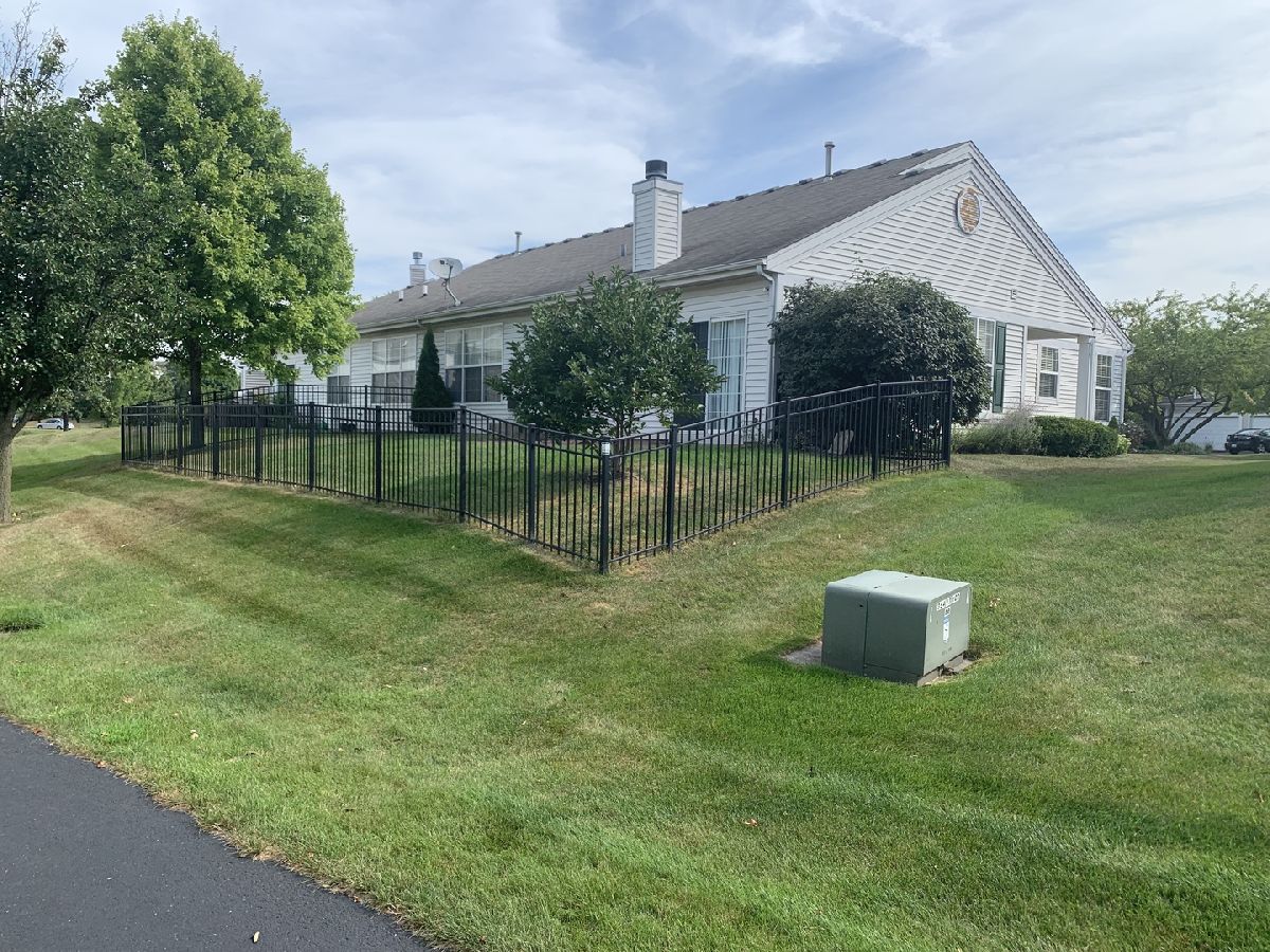 Stunning two bedroom, two bath unit with direct access to walking/bike paths inside of subdivision. Walking distance to many shopping areas and beautiful nature trails. Minutes from 88. Nice neutral new paint throughout with tons of upgrades to include; 42" cabinetry, stainless steel appliances, designer lighting package, Fireplace with gas logs, extended concrete patio, water softener and much more. Master Suite has vaulted ceiling, soaker tub, double sinks and large walk in shower and walk in closet. All appliances - newer stainless steel kitchen appliance included BRAND NEW dishwasher - front load washer & dryer too! One of the only units with a fenced yard; decorative black aluminum fence and raised gardening bed. Backyard is a short walk between two ponds. Brand new premium carpet installed throughout. MOVE IN READY! HOA mows and maintains grass and shrubs/trees outside of fence and surrounding the exterior of property. How does not mow inside of fence or trim shrubs within fenced area. HOA plows driveway and shovels sidewalk and entranceway.
