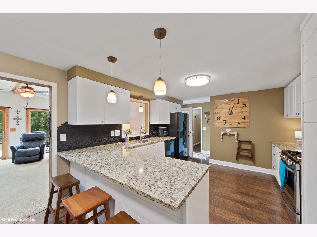 Charming & well-maintained Ranch home featuring 3 bedrooms, 2 bathrooms & 2 separate garage spaces one that attaches to the home that is a heated 2 car garage, and a detached 1.5 car garage for all your additional storage. Large concrete driveway and Side Parking for the family that has multiple vehicles, even large enough to park an RV. Walk right into a bright and spacious semi-open living room with a wood-burning fireplace, an updated open kitchen area with Black & Stainless steel appliances, granite counter-tops over beautiful white cabinets. The family room addition of the home features skylights & a vent-less gas fireplace for added heat. Master bedroom access to the hall bathroom that features a full stand up shower. 2nd Bathroom and laundry area combined. Relax in this beautiful yard that overlooks a wooded area with a creek, entertain your friends and family on this huge wood deck, or relax in a Semi-private hot tub area. The yard is fenced in and also has a huge garden area for you and your family to enjoy fresh fruit and vegetables. Most Windows(2018) HVAC 9 years, Roof(2018) 4" gutters(2018) School District 54 & 211. Close to shopping, dining, and entertainment & I390