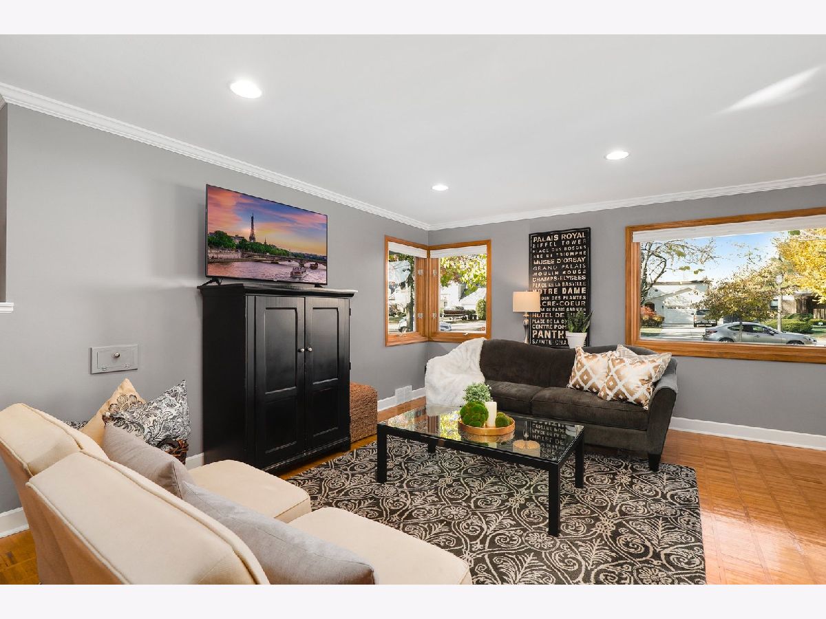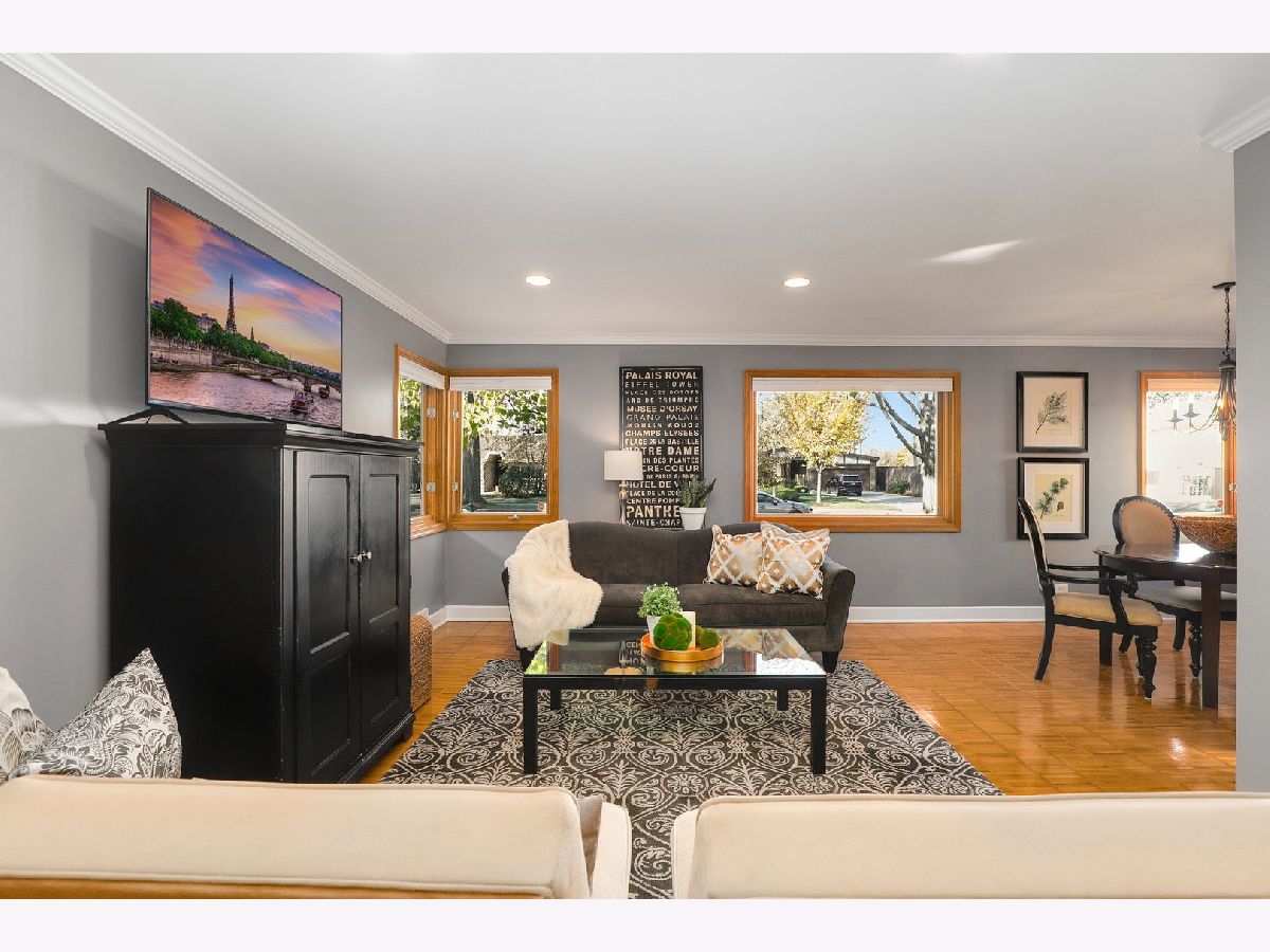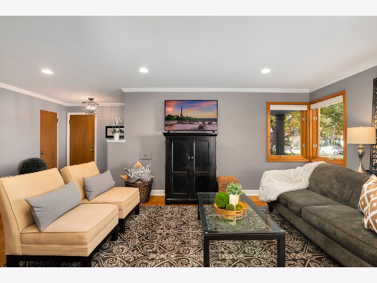 Pride of ownership abounds this solid brick, ranch home filled with charm, great curb appeal and spacious backyard! Meticulously maintained, updated, and move-in ready. Spacious foyer welcomes you into a cozy living room, open to the dining room. Freshly painted, white baseboards, trim and crown molding, hardwood floors, and recessed lighting throughout. The main level provides three bedrooms and two full recently renovated bathrooms. The master bedroom has a full bath with shower glass doors. Kitchen has plenty of cabinetry, built in pantry, granite countertops, and SS appliances. Convenient breakfast bar and ceramic floors blend the cabinetry and counters beautifully. Natural light flows into every room. Full finished basement with recessed lighting provides so much space. Family room, rec room, office space and a separate laundry area with plenty of storage space available. Huge fenced in backyard and patio for entertaining family and guests. New driveway allows for extra parking if needed. Walk to a plethora of dining options - so many restaurants available steps from your home. Walking distance to schools, universities, and a short drive to I290 and Blue/Green/Metra transportation.