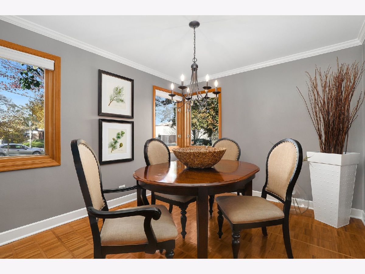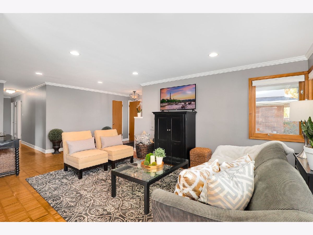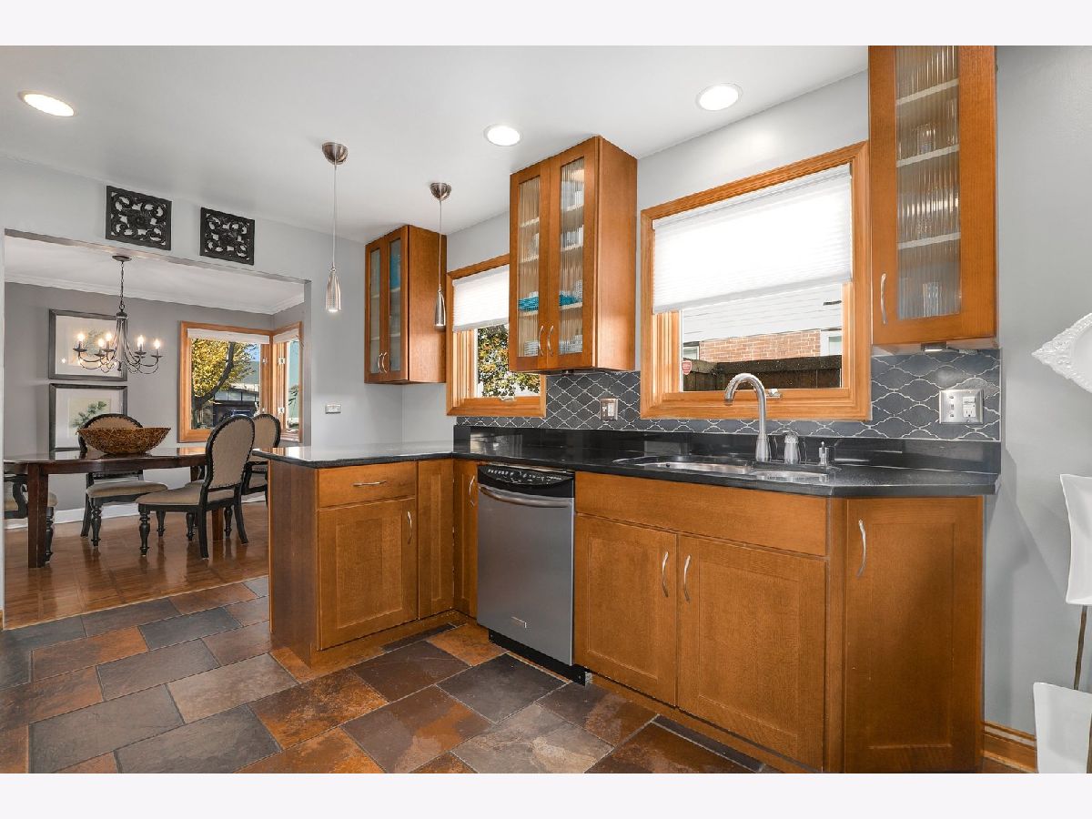 Pride of ownership abounds this solid brick, ranch home filled with charm, great curb appeal and spacious backyard! Meticulously maintained, updated, and move-in ready. Spacious foyer welcomes you into a cozy living room, open to the dining room. Freshly painted, white baseboards, trim and crown molding, hardwood floors, and recessed lighting throughout. The main level provides three bedrooms and two full recently renovated bathrooms. The master bedroom has a full bath with shower glass doors. Kitchen has plenty of cabinetry, built in pantry, granite countertops, and SS appliances. Convenient breakfast bar and ceramic floors blend the cabinetry and counters beautifully. Natural light flows into every room. Full finished basement with recessed lighting provides so much space. Family room, rec room, office space and a separate laundry area with plenty of storage space available. Huge fenced in backyard and patio for entertaining family and guests. New driveway allows for extra parking if needed. Walk to a plethora of dining options - so many restaurants available steps from your home. Walking distance to schools, universities, and a short drive to I290 and Blue/Green/Metra transportation.