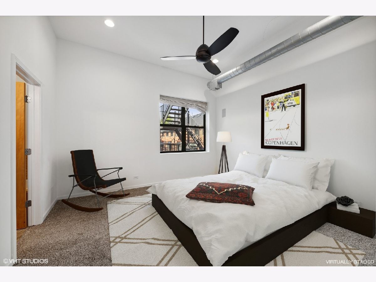 2 bed 2 full bath condo with parking included in the heart of Wicker Park. Condo is a rear unit, not overlooking Milwaukee ave, noise is a non issue. Open floor plan offers custom 42" cabinetry, stainless steel appliances, hardwood floors, gas fireplace, exposed brick and ductwork. Master Bedroom has plenty of room for a king-size bed, en-suite bath with sep. shower/soaking tub, and double vanity. 2 outdoor spaces provided between a private balcony and a dedicated rooftop space. Nice size laundry room in unit. New AC condenser 2021.