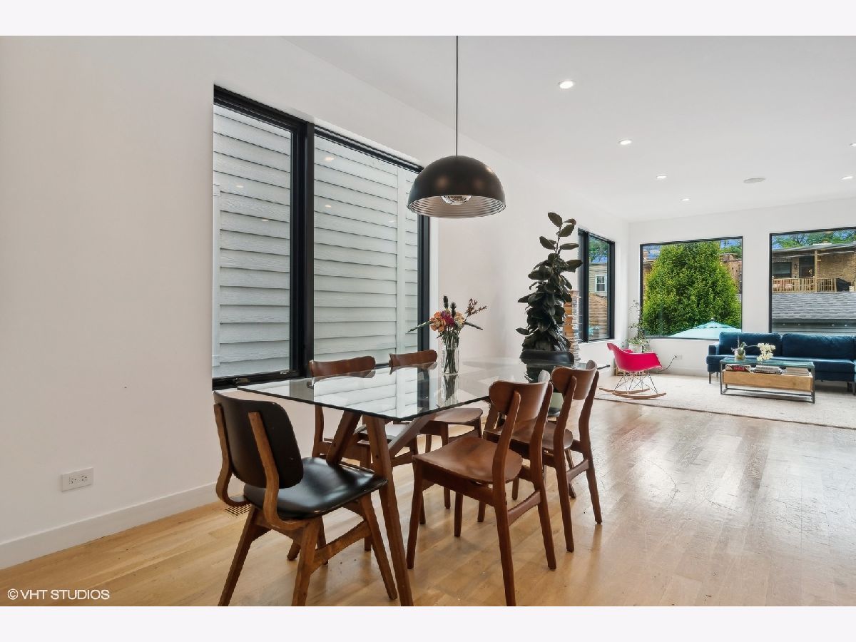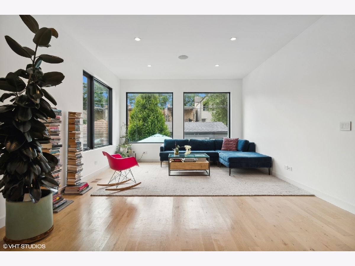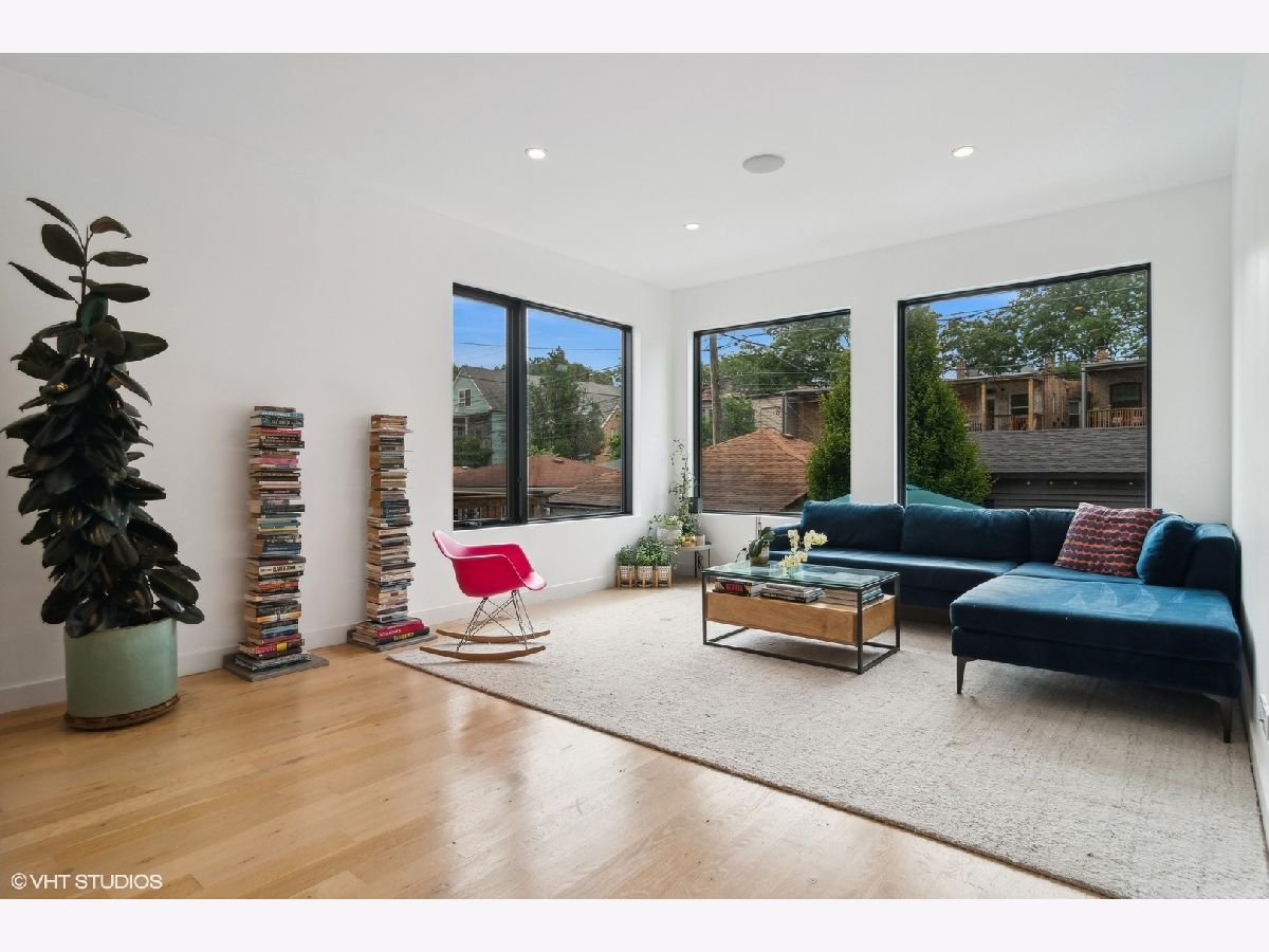Light filled contemporary home with oversized windows throughout, southern exposure and simple, clean design.This 5 bedroom 3 1/2 bath home, designed by The Creative Firm features an open kitchen, dining, living space, front parlor, lower level tv room room with great ceiling height, built in speakers, laundry room, huge storage room, patio, front porch, and 2 car garage just steps off Clark St. Modern home with coveted 3 beds/2 baths on 2nd floor steps to Clark St shops, restaurants and bars, Thermador/Bosch appliances including wine cooler, eat-in kitchen with oversized island that opens to dining room and sitting room; spa like baths features main bath w/oversized shower; lower level rec room wired for surround sound & 2 guest suites; multiple-zoned hvac & massive storage/closet space including large main walk in closet; true laundry room with sink and cabinetry, 2 car garage. Truly unique, modern home w/uncommon attention paid to energy efficiency, light & flow! Step out your door and walk to everything in Andersonville. 15 min walk to CTA Red Line or Peterson Metra Stop. Peirce School 2 blocks away.