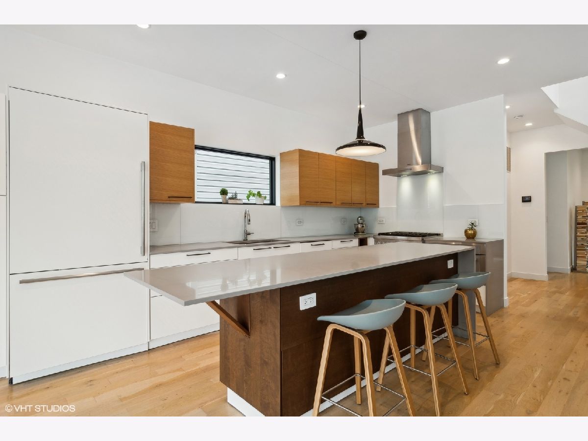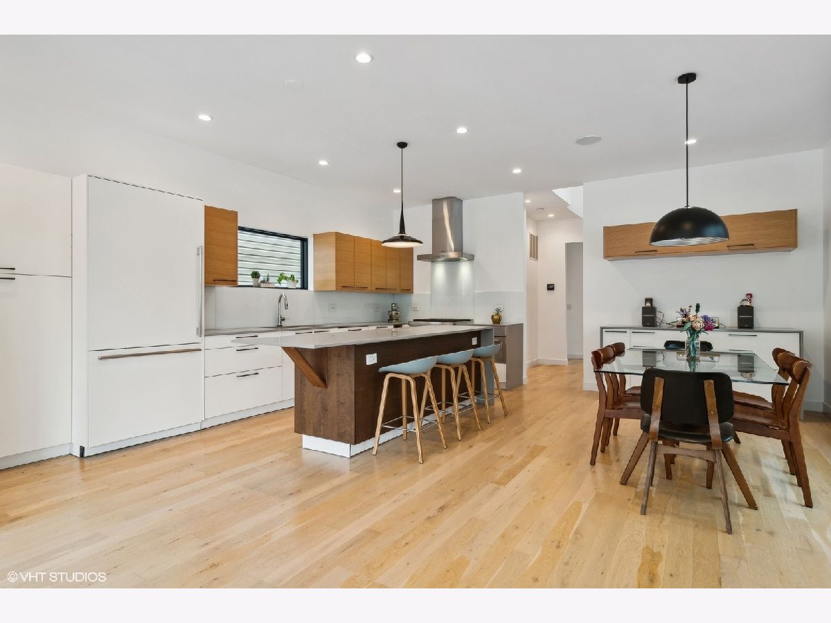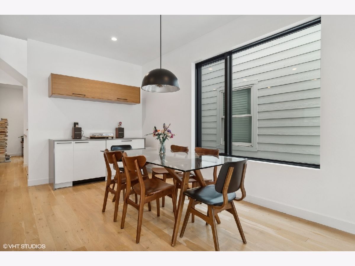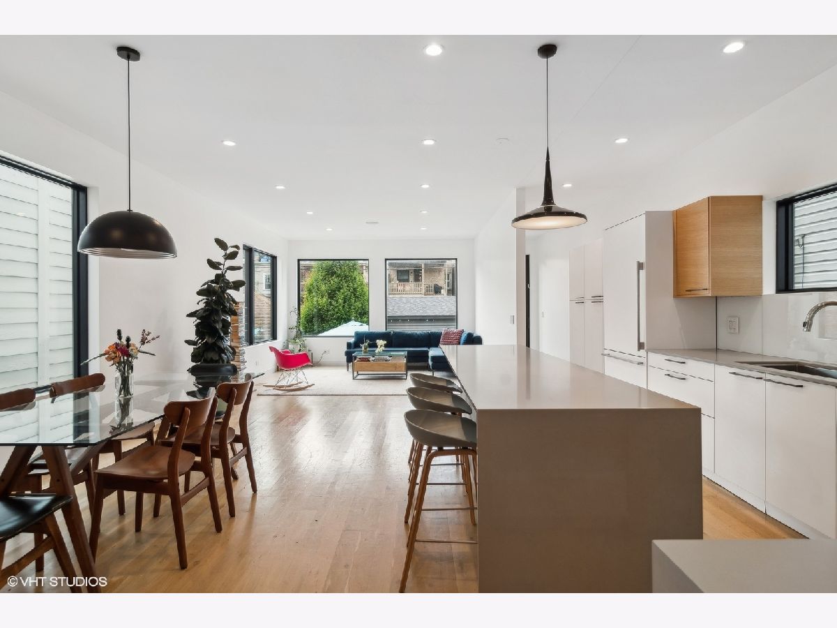 Light filled contemporary home with oversized windows throughout, southern exposure and simple, clean design.This 5 bedroom 3 1/2 bath home, designed by The Creative Firm features an open kitchen, dining, living space, front parlor, lower level tv room room with great ceiling height, built in speakers, laundry room, huge storage room, patio, front porch, and 2 car garage just steps off Clark St. Modern home with coveted 3 beds/2 baths on 2nd floor steps to Clark St shops, restaurants and bars, Thermador/Bosch appliances including wine cooler, eat-in kitchen with oversized island that opens to dining room and sitting room; spa like baths features main bath w/oversized shower; lower level rec room wired for surround sound & 2 guest suites; multiple-zoned hvac & massive storage/closet space including large main walk in closet; true laundry room with sink and cabinetry, 2 car garage. Truly unique, modern home w/uncommon attention paid to energy efficiency, light & flow! Step out your door and walk to everything in Andersonville. 15 min walk to CTA Red Line or Peterson Metra Stop. Peirce School 2 blocks away.
