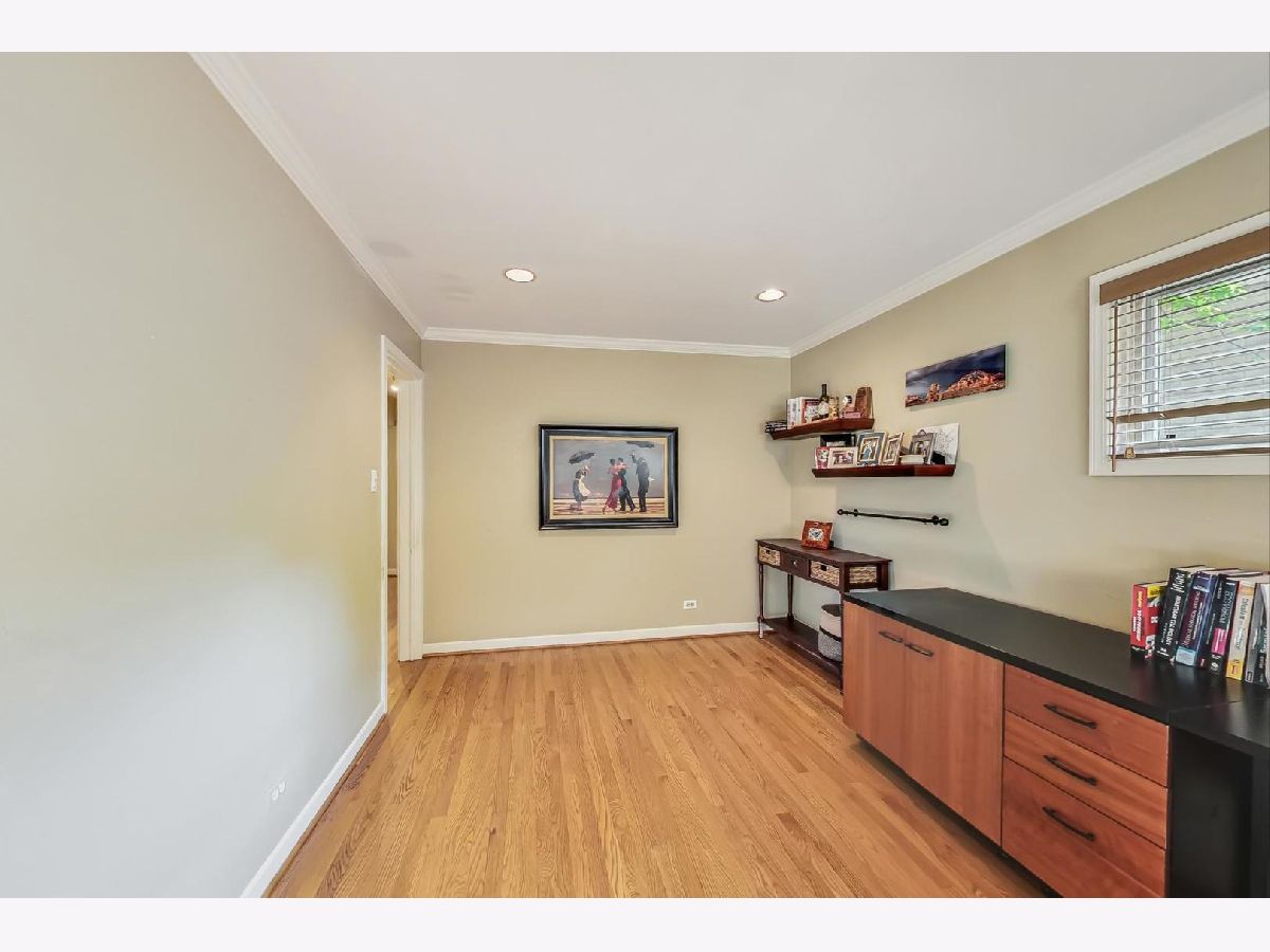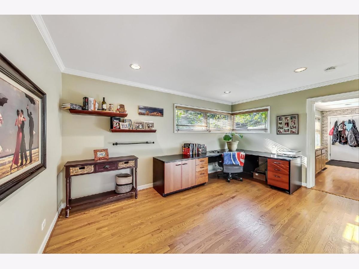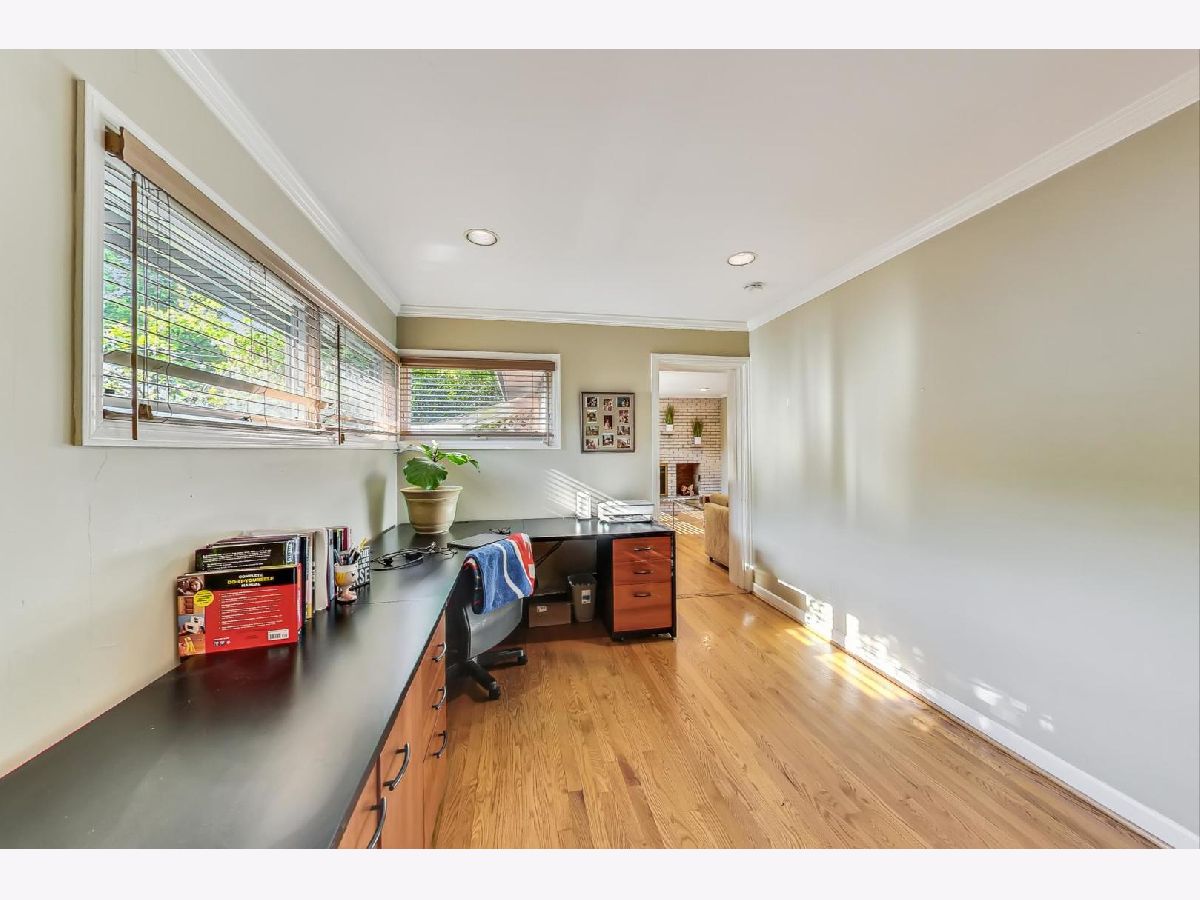 You will absolutely enjoy entertaining friends and family in this incredibly well maintained brick ranch home on a large corner lot. As you walk up to front door you'll see a lush wrap around lawn and plantings that look amazing. Inside, everywhere you look there is a place to relax. Whether it's the Living Room with floor to ceiling windows, the Family Room that includes a wood burning fireplace, the adjacent deck, or the low maintenance spaces in the back yard with a privacy fence, you will aways have a place to welcome others or keep it all to yourself as a personal sanctuary. Lots of newer windows make this a very sunny space. The hardwood floors on the main level are gleaming. There is a spacious kitchen that features granite countertops and backsplash, stainless steel appliances, and an eat-in area that is large enough for a full dining table. The main level also features a separate dining room, a huge office, a large primary bedroom with tons of closet space, and recessed lighting throughout. The lower level is finished and includes a rec room, a second bedroom, a full bathroom, a laundry room, and more storage space than you can shake a bundle of sticks at. Great Evanston location that is a short distance to shopping and dining. All ya gotta do is move in!