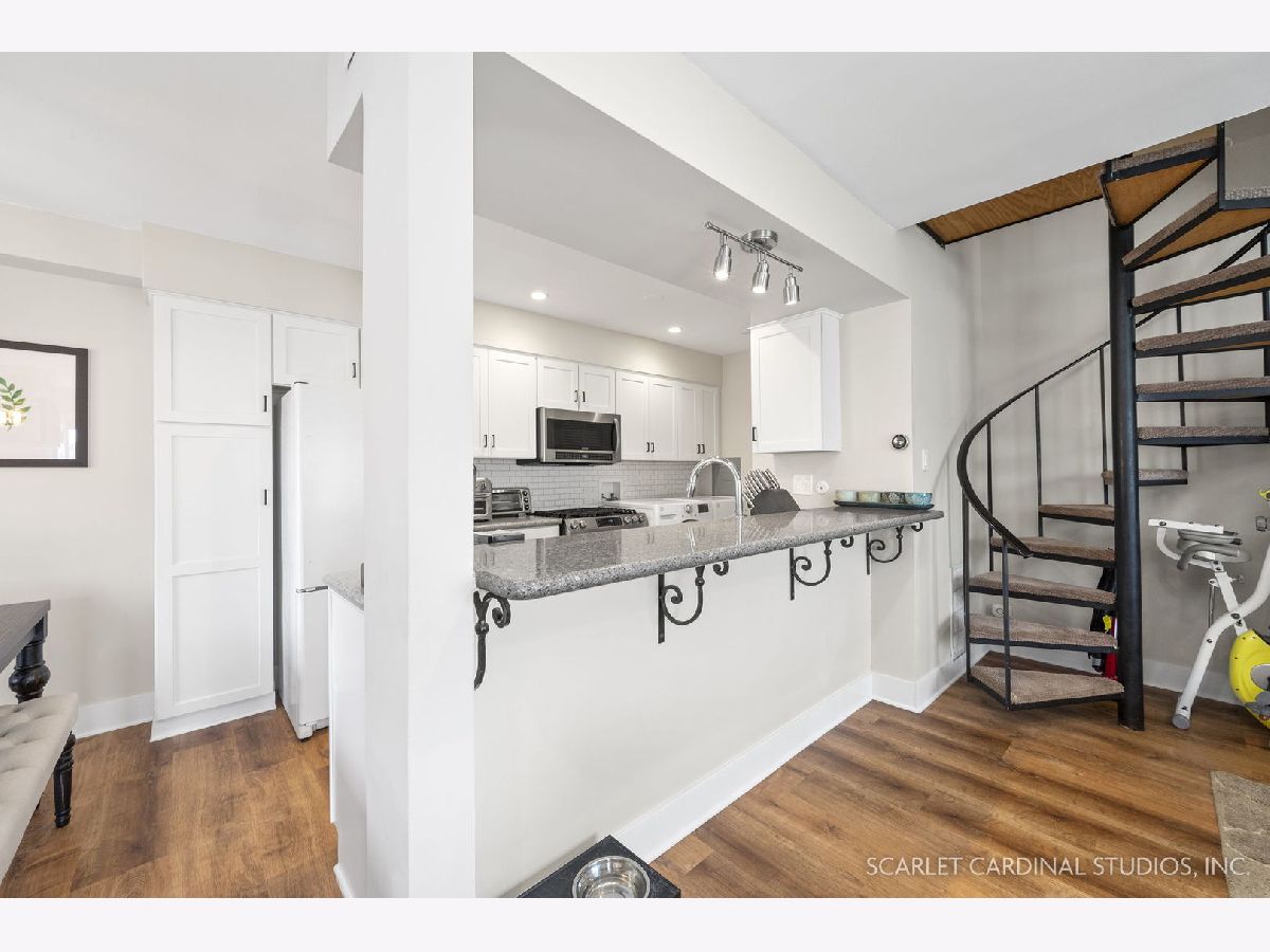 Elegant 2 bed, 1 bath two story quad townhome in desired location!! Multiple updates throughout home including NEWer paint & white trim, beautiful NEW luxury vinyl plank flooring, updated outlets and switches & NEW blinds. Main level boasts open floor plan with NEW light fixture in dining room!! Kitchen equipped with quartz countertops, NEW oven, NEW dishwasher (being installed 8/17) & NEW cabinets!! 2nd level Master bedroom and additional bedroom located up beautiful spiral staircase!! Front patio with lovely garden section & privacy fence in backyard!!