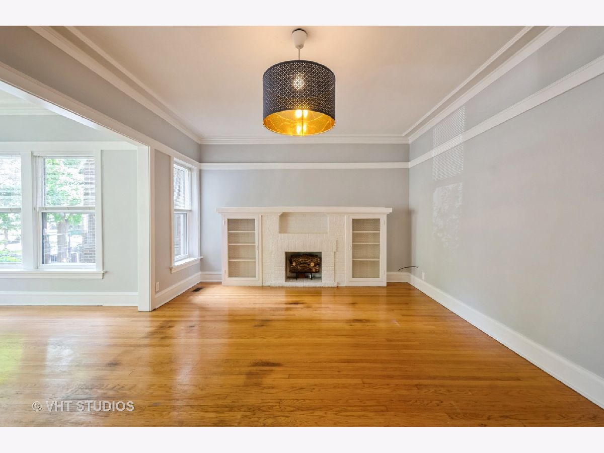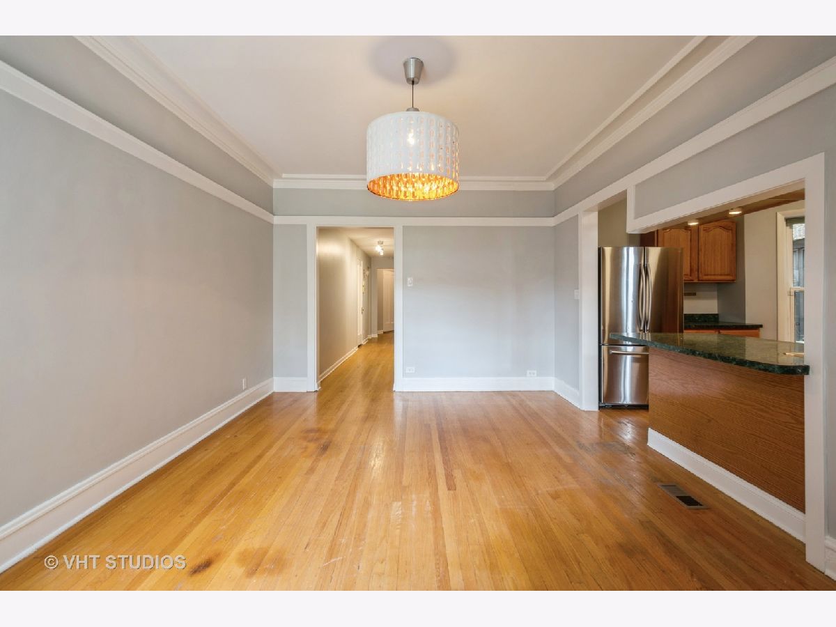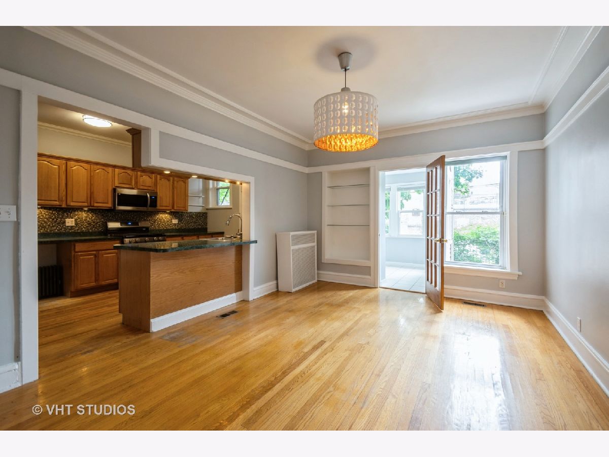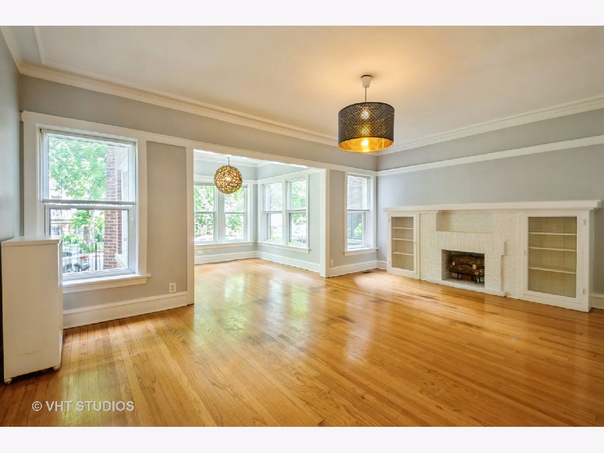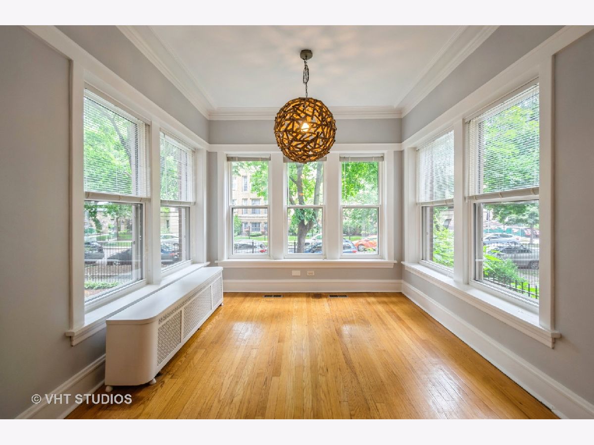 Welcome to this (high) 1st floor, spacious, 2BR/1BA condo in this classic brick building on a quiet tree lined street in Rogers Park. Freshly painted and has CENTRAL AC, the only unit in the building with this feature! This unit has a great floor plan with gorgeous light fixtures, coveted finishes, generous room sizes and stunning hardwood floors. Entry foyer leads to an expansive living area (19x13) with decorative fireplace and on to a lovely, light-filled sunroom retreat. Eat-in kitchen with BRAND NEW Samsung stainless steel microwave, dishwasher and oven (fridge is only a few years old). Separate & inviting dining room that is perfect for hosting. Bonus room off the back of the unit that can be used as a sitting/tv room, office, 3rd BR, workout room. Both bedrooms are great sizes with large closets. Bathroom features BRAND NEW vanity. Hallway closet conveniently equipped with an in-unit washer and dryer, enhancing the ease and efficiency of daily living. Parking space (off the alley) INCLUDED in the price! Storage unit in the basement. Shared backyard with patio and yard space. Well maintained, self-managed & pet-friendly building with an estimated $11K in reserves. Ideal location - one block to Jarvis Square, redline and many restaurants and stores! Only two blocks to the lake!