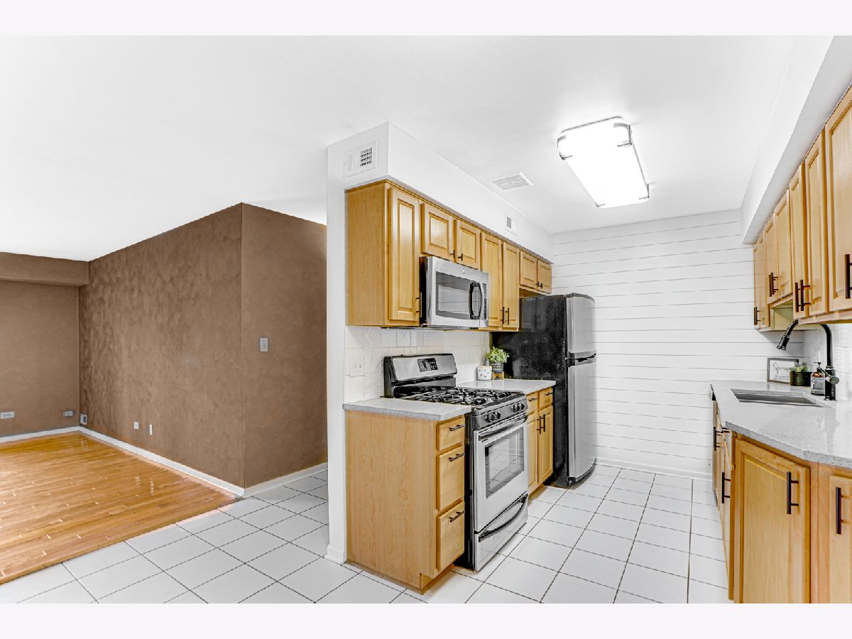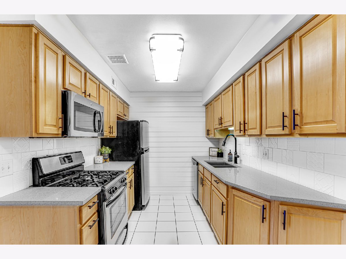 The only 2 bed/2 bath condo available, with in-unit laundry, in Arlington Heights! Step inside this just remodeled (2022), first floor condo with updated kitchen and bathrooms. High-end finishes include man-made quartz countertops, shiplap accent walls, hardwood floors in the livingroom, and durable, Berber carpeting in the bedrooms. The master bedroom features a huge walk-in closet and full bathroom. The covered private patio, with new brick-pavers, lead you to the pool/playground area and parking! This is the most desirable condo in Arlington Heights. Don't let anyone else call this HOME except YOU. Call your agent to schedule a showing today.
