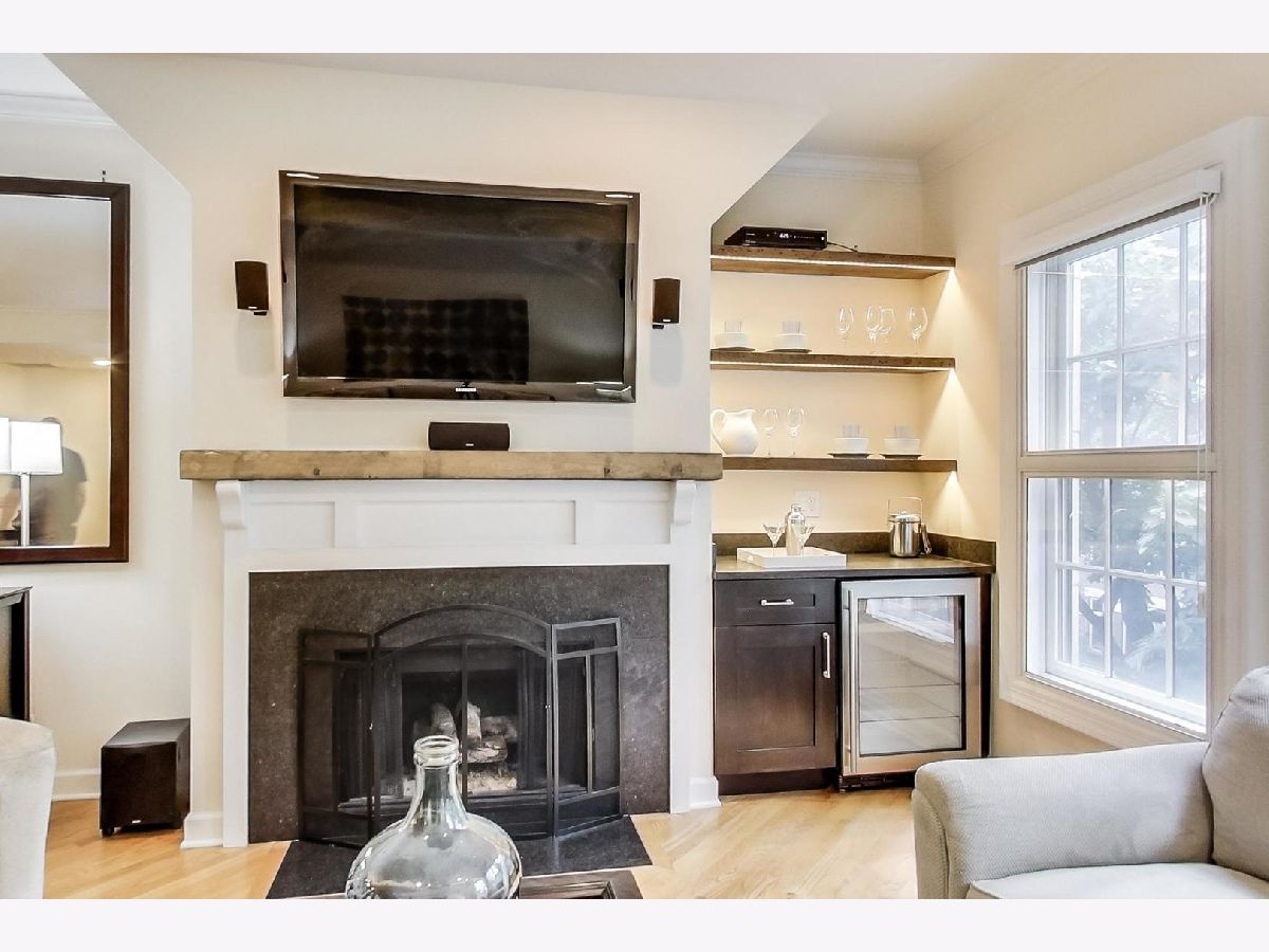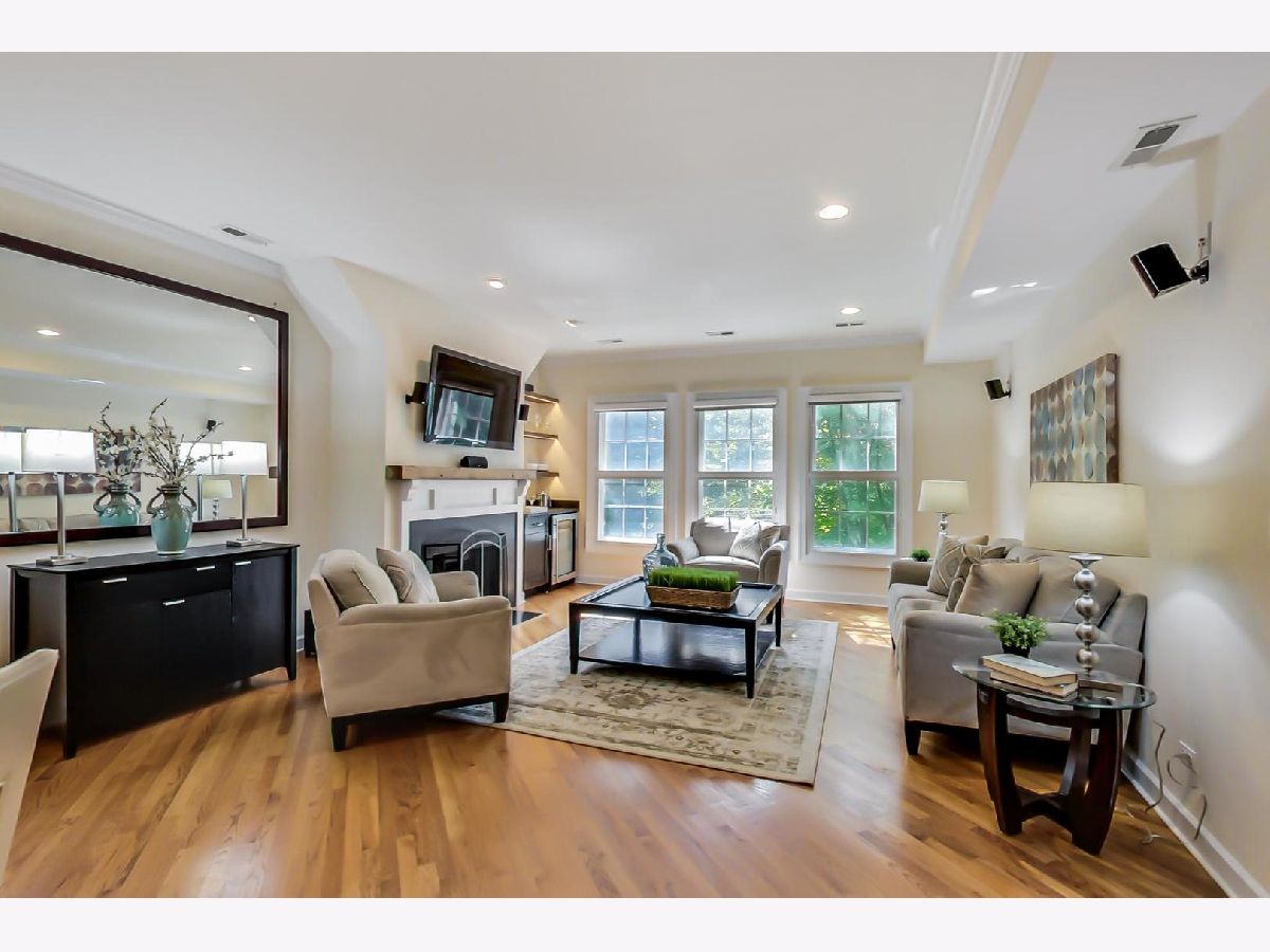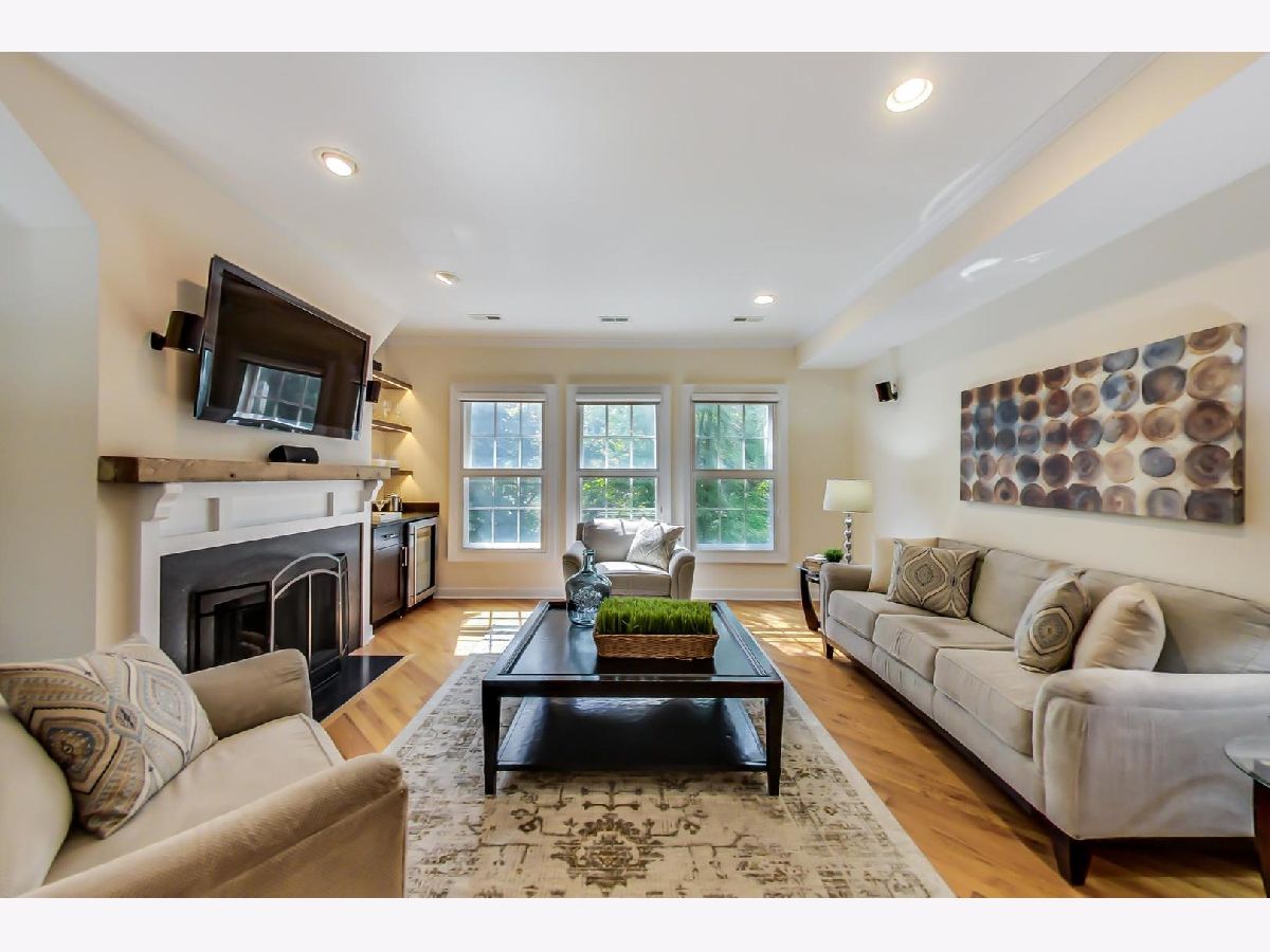 OLD TOWN: PRIME LOCATION. Extra wide floor plan. Gorgeous 2-bedroom, 2-bath, with garage parking included. Open kitchen featuring gorgeous cherry cabinetry, custom back-splash, granite counters, and stainless-steel appliances. Spacious living room/dining combination featuring a beautiful bar with wine refrigerator and custom shelving, and a wood-burning fireplace with gas starter. Large primary suite featuring two walk-in closets, marble bath with double bowl sinks, separate shower, and over sized oval jetted tub. Large rear terrace, perfect for entertaining. Wide floor plan with generous room sizes throughout, 9-foot ceilings, diagonal hardwood floors, crown molding, wood burning fireplace, and washer/dryer in unit. Home is wired for sound in living room, primary bedroom, and rear deck. Large storage in basement. Low monthly assessments. Tree lined street. Walking distance to shopping, restaurants, CTA Sedgwick stop. Be sure to click on the VIRTUAL TOUR link for photos, 3D-tour and floor plan.