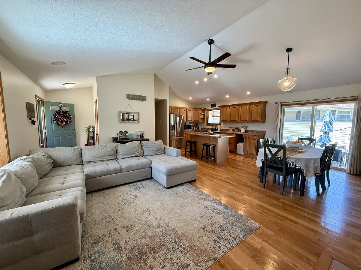 Welcome to this beautifully designed 3-bedroom, 2-bath ranch with a partial unfinished basement, offering charm and functionality from the moment you arrive. From the inviting covered front porch, step inside to find soaring cathedral ceilings, gleaming hardwood floors, oversized windows, and a stylish kitchen equipped with stainless steel appliances. The open floor plan creates the perfect space for entertaining, while the gas fireplace with a custom tile surround adds a cozy focal point. Storage is abundant here, with a spacious pantry, multiple linen and coat closets, plus the unfinished basement ready for future expansion or organization. The primary suite features its own full bath, a spacious walk-in closet, and private access to a deck. Outside, the fenced backyard sits on a corner lot and features a patio and a garden shed. Updates include: new 2-car driveway in 2022, Dishwasher (2021), Stove, Refrigerator, washer, dryer, sump pump, water heater all within the last year. Schedule your private tour today!
