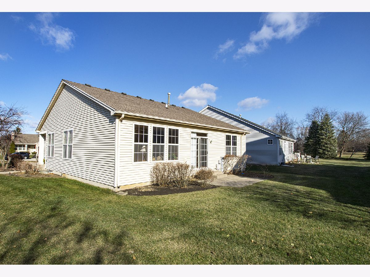 Former builders ranch is beautifully appointed. Warm hardwood flooring, brand new neutral carpeting, and freshly painted greige color throughout the first floor. Nine foot ceilings enjoy abundant light. Huge combined living and dining rooms makes for a wonderful way to entertain. Just imagine the holidays here. Kitchen boasts Corian counters, 36" hardwood cabinets with crowned tops and mood lighted tops, new microwave, all white appliances, cast iron sink, plenty of room for table and chairs, slider to private patio and green belt back yard. Two abundant master bedrooms are a feature of this home. Both enjoy full bathrooms and one is shared with the hallway for guests. Each are crowned with a ceiling fan. Both have walk-in closets for ample storage. The main master has an upgraded cathedral ceiling. A buyer will notice that the trim is an upgraded oak and the doors are flush oak as well. There is a third bedroom/office without a closet but there is a closet just outside the room itself. A first floor laundry is conveniently located near the garage entry and boasts cabinets and a utility sink also upgrades here. Don't miss the full finished basement rec room. This area expands the living space and makes this an great home for family fun and easy entertainment. Plus a wet bar conveniently located on ceramic tile which contains its own ice bucket and cooling station for wine and beverages. The exterior of this home also includes a sprinkler system and a brand new sump pump in the basement. Carillon North is a 55 and older community. It provides an inground heated pool, hot tub, club house, gated entry, snow plowing, and grounds care. Located minutes from downtown Grayslake and Metra. This is truly a remarkable place to settle.