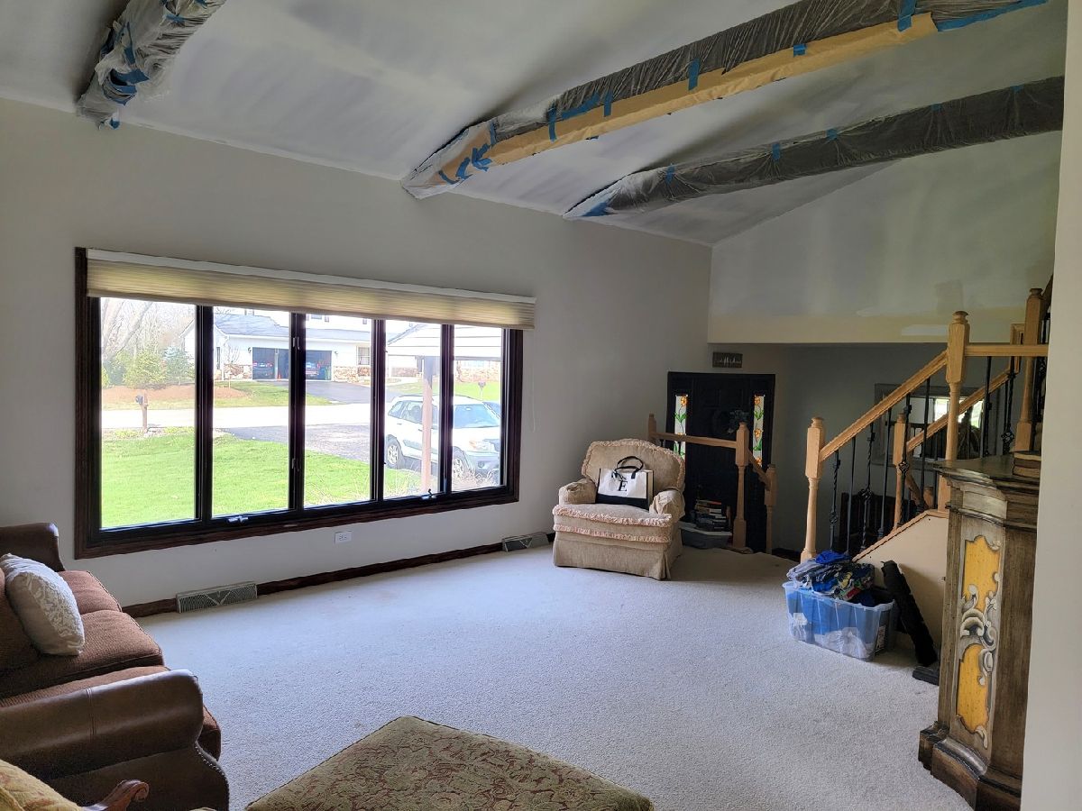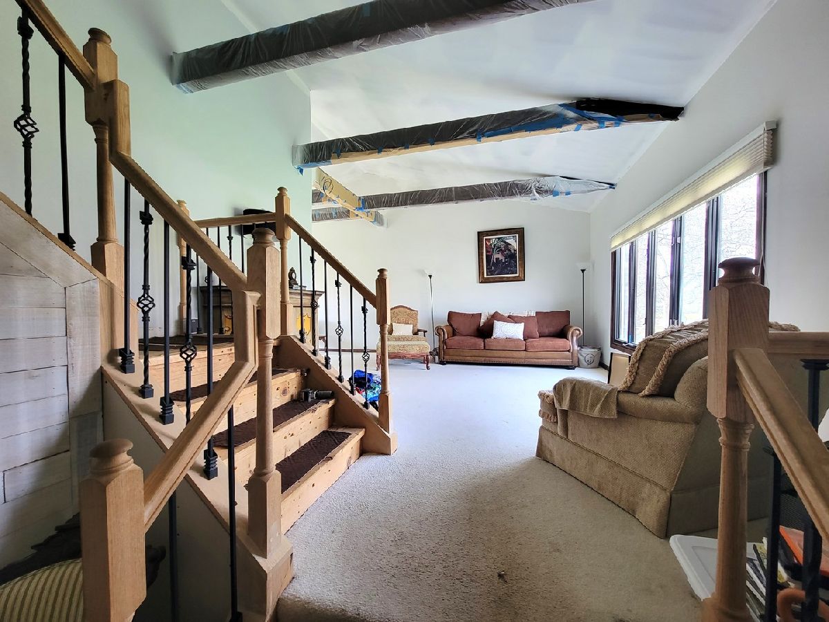 A lovely place to call home! Choice property on large premium lot on quiet tranquil street in Sleepy Hollow. Fabulous 4-bedroom 2.1 bath home with full partially finished basement. An inviting covered front Porch greets you. Inside you'll find a great open floor plan with super spacious rooms throughout. Nice sized Foyer with hardwood floors and a new wrought iron staircase. Raised Living Room and Dining Room feature vaulted ceilings with beautiful beams and large windows with great views. Sunny, expansive eat-in Kitchen offers tons of cabinets, stainless steel appliances and a massive island. Gorgeous Bay window overlooks lovely big yard with mature trees. Kitchen is open to the family room with lovely fireplace and hardwood floors. Patio doors open to huge 2-tiered deck and big private yard. Extensive new canned lighting throughout. Remodeled Powder Room and 1st floor Laundry Room with door to outside. New washer, utility sink and dryer. Upstairs you'll find a spacious Primary Suite with huge walk-in closet and custom built-ins. The Primary Bath is in the process of being remodeled and is being conveyed as-is. Three additional bedrooms, all nicely sized feature double closets and ceiling fans. The hall bath has been beautifully remodeled. Deep-pour Full Basement is partially finished and features a BIG Rec Room with newer Berber carpet and a Bonus Room. Huge storage room offers built-in shelving. Newer electrical panel, Trane furnace and central air in 2017. The roof is 12 years old. Great location! Seconds to I-90, Metra, restaurants, shopping and entertainment. The owners were turning this into their dream home. You can complete the work and make it yours! The home is being conveyed As-Is. Hurry and see. You will be impressed!