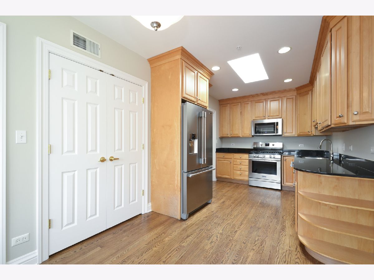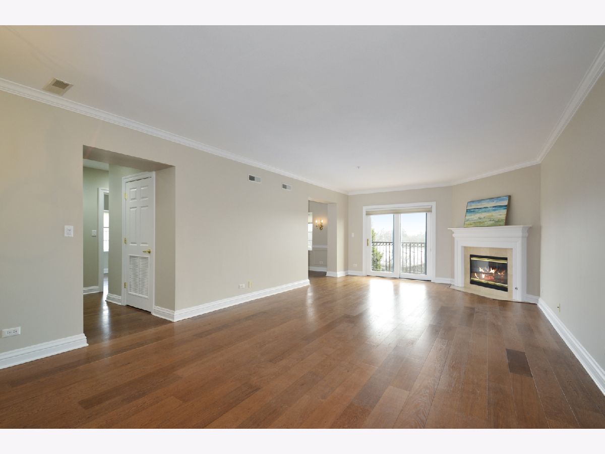 This bright and sunny third floor corner unit within Laurel Place features two bedrooms plus a den, totaling 1,427 square feet. This home has been updated with wood floors, fresh paint, and new appliances in 2019. The kitchen features maple cabinets, granite counters, a stainless steel sink, a skylight, and ample table space. The spacious living room with gas fireplace connects with an adjoining den. You will find crown moldings and nice finishes throughout. The floor plan features separate wings for the two bedrooms, offering privacy. This condo has one garage parking spot in the heated garage and a private storage room. The air conditioner was replaced in 2014. This is also one of the only condominium units in Lake Forest with a 220V 20 Amp dedicated breaker and outlet for an electric car. It charges 150 miles overnight. Updates also include: a new washer & dryer 2023; dishwasher, 2024; and an Ecobee smart thermostat, 2024. The monthly assessment includes the gas and water bills. The two buildings' roofs were replaced in 2016 & 2017. Enjoy glorious sunrises and cool afternoons on the East facing balcony. This building is located in East Lake Forest close to town, train, dining, and shopping.