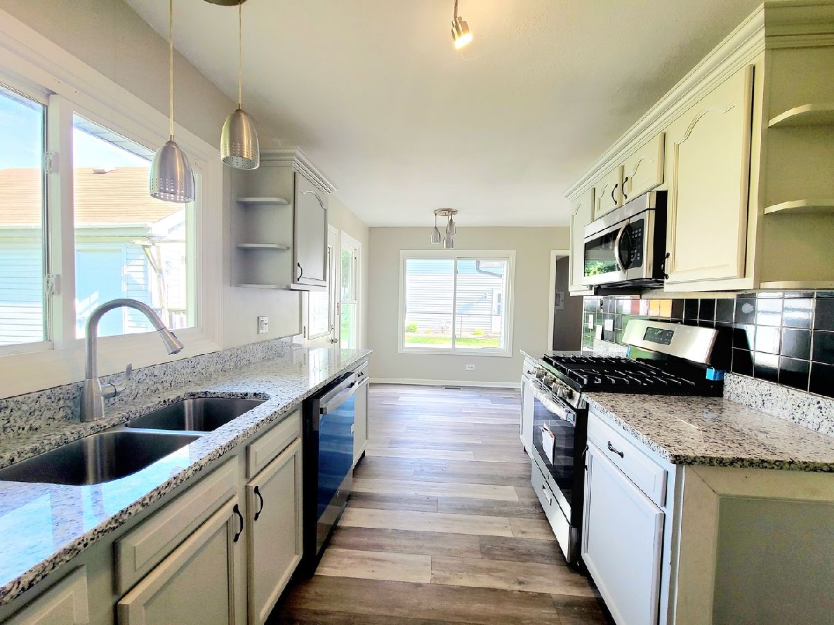 Updated 4 bedroom ranch style home plus large office. Kitchen, dining area, and breakfast area lead to the back door that steps out to a wooden deck. Yes, there is a lot of space on one level! This home has new luxury vinyl plank flooring (new carpeting on 3 of the bedrooms), new ceiling fans in all rooms, new sink, new faucet, new stainless steel appliances, hot water heater (2020), granite countertops in kitchen, updated bathrooms, washer & dryer in utility room/laundry room, a 2 car insulated detached garage with air conditioning, and a shed for extra storage. Awesome location! Close to parks, schools, restaurants, and shops. It is minutes from the Bolingbrook Promenade Mall, Bolingbrook Aquatic Center, and I-55/I-355 expressways.