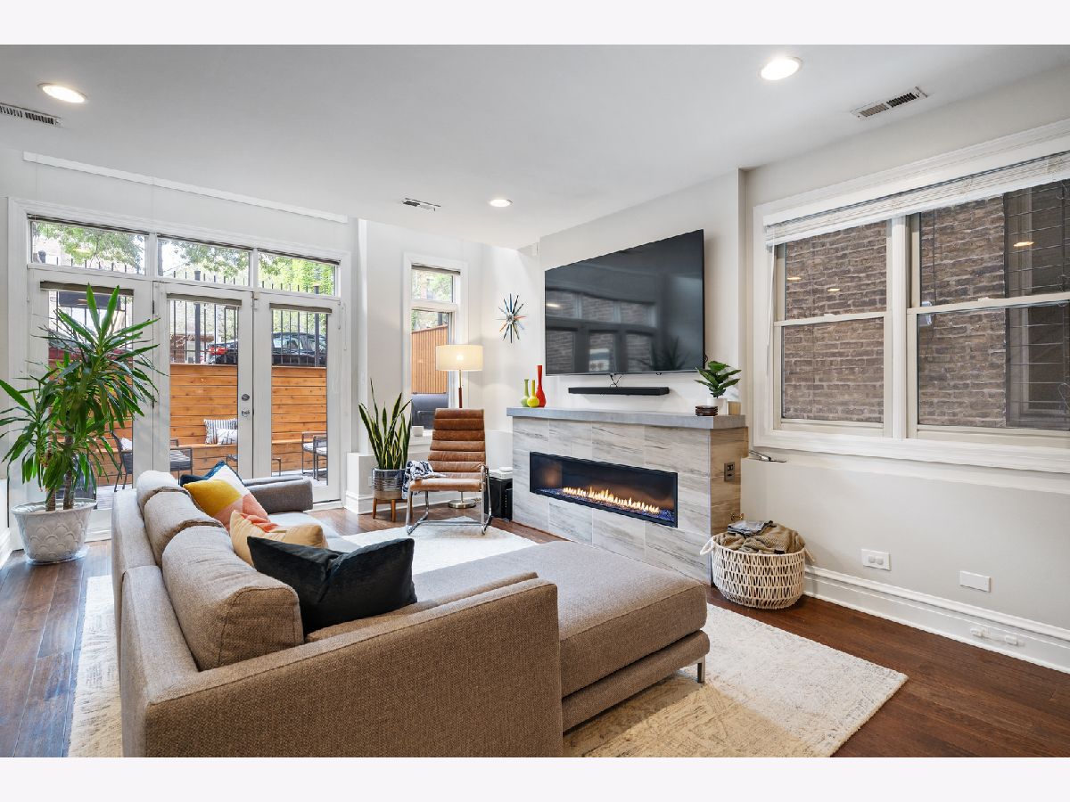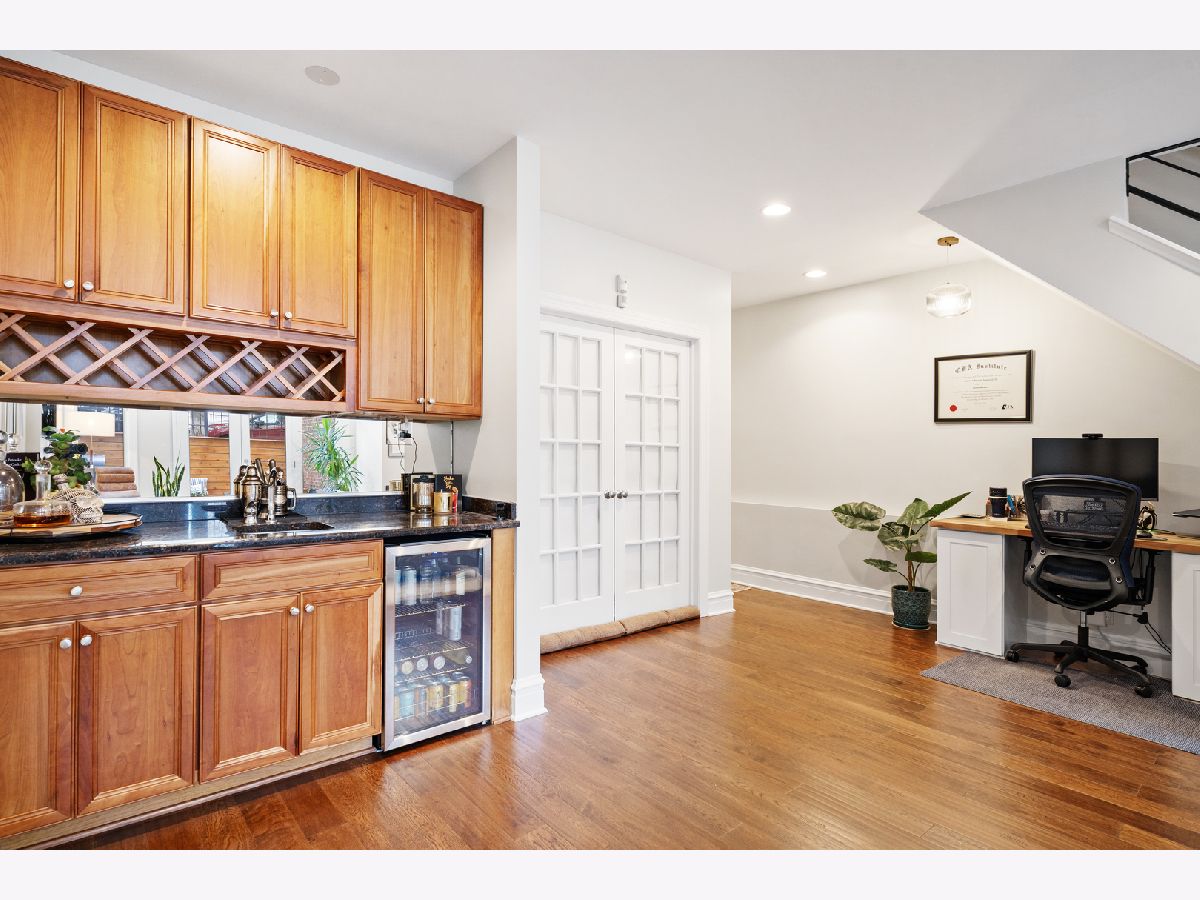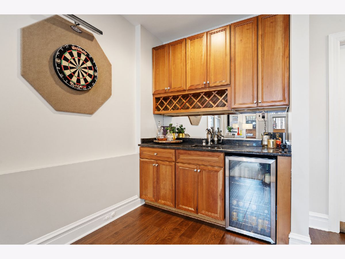 Your New Home Awaits in Wicker Park in this meticulously designed, well crafted 3 Bed / 2.1 Bath Duplex-Down property situated on a quiet tree-lined street. Natural Light shines in and brightens both floors' floor plans simultaneously from your Oversized Bay Windows, a staple feature that makes this home Extremely Unique from inside and out. Hardwood Floors line the entire Main Level giving the opened combo living/dining layout an even larger feel, leading you down the main hall to a powder room for guests or family. The cherry wood cabinetry kitchen with see through glass windows pairs nicely w/ upgraded Graphite Steel Appliances complimenting your Granite Counter Tops & Large Breakfast Bar. Awake to the Eastern Sun with comfort and style in your Luxurious Primary main level En-Suite featuring large Stone Bath flooring, an oversized double-vanity, separate Shower Body Sprays, soaking Jacuzzi tub and Large Walk-In Custom Closet Systems. You'll end up treating yourself to additional time, morning and night with some much needed R&R. Downstairs you'll find crafted millwork, A Gas Fireplace, ample storage, and upgraded wood laminate flooring throughout that gives off a true hardwood floor feel. Your lower level family room has a built in Wet-Bar complimented w/ a Wine Fridge. The newly updated outdoor patio has wrap around seating, TREX flooring, and a stained-wood surround with black rod iron fencing for additional privacy. French doors lead into the second bedroom with another custom closet. Next to that is your newly renovated bathroom with black fixture accents including a brand new vanity and sliding glass shower door. A Third (3rd) bedroom currently used as a gym is perfect for guests or your quiet work from home office. A Laundry Room with Full Size side-by-side Washer/Dryer, back up battery sump pumps, water heater, furnace and mechanicals. Two (2) Car Tandem Parking off of the rear alley is Included. With close proximity to Parks, Expressways, Blue Line, Restaurants, Shopping & More, this home is a Must See!