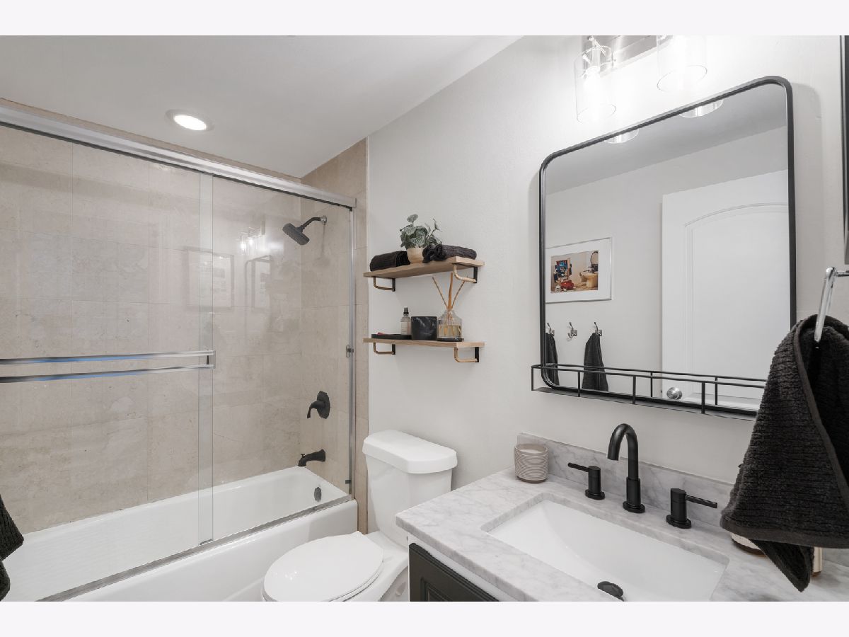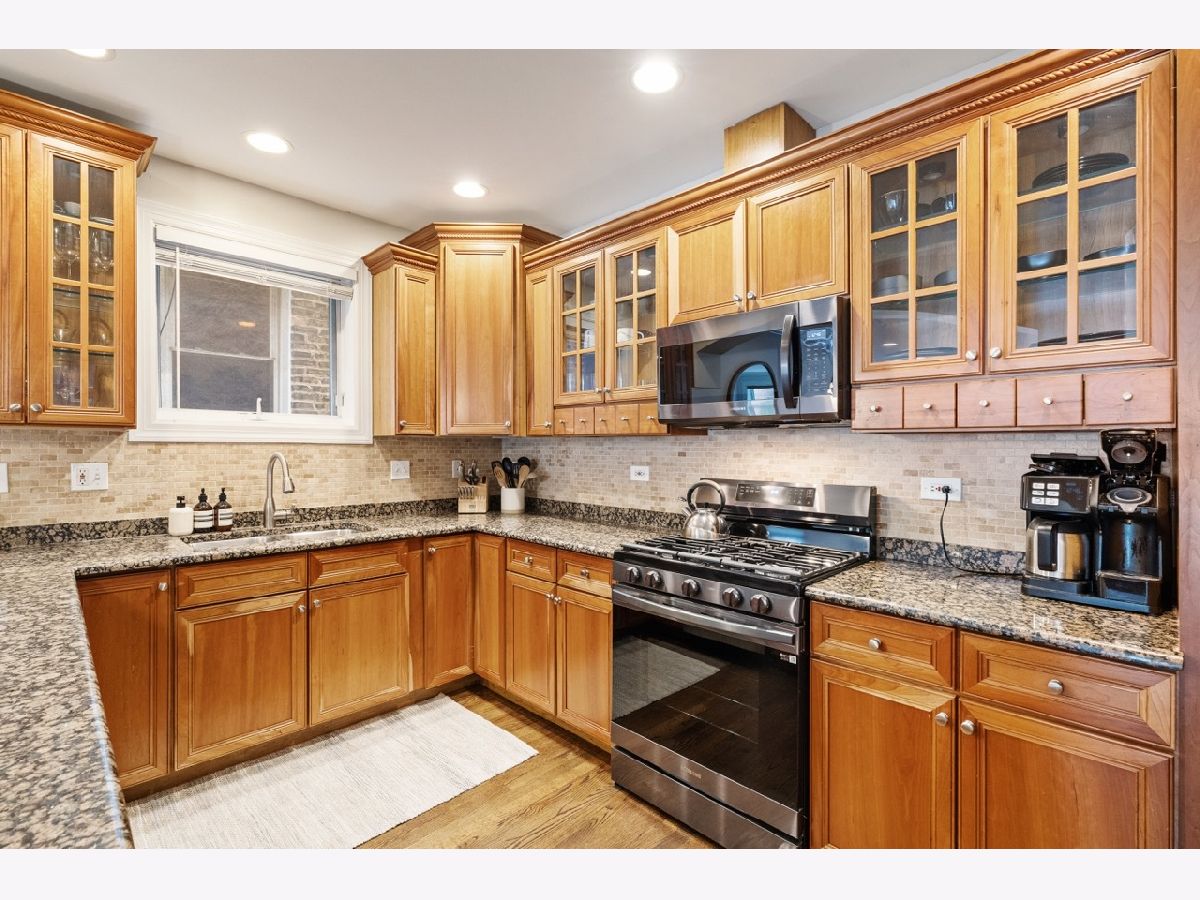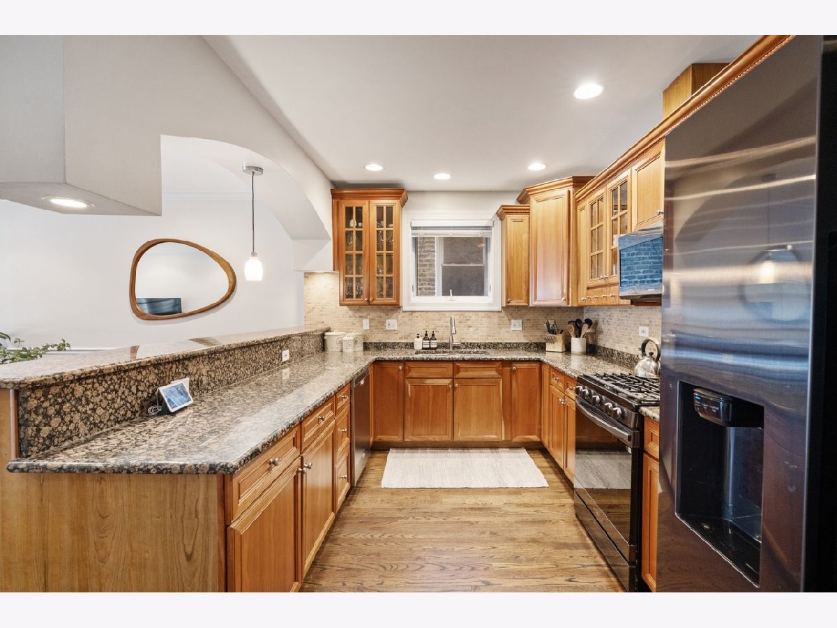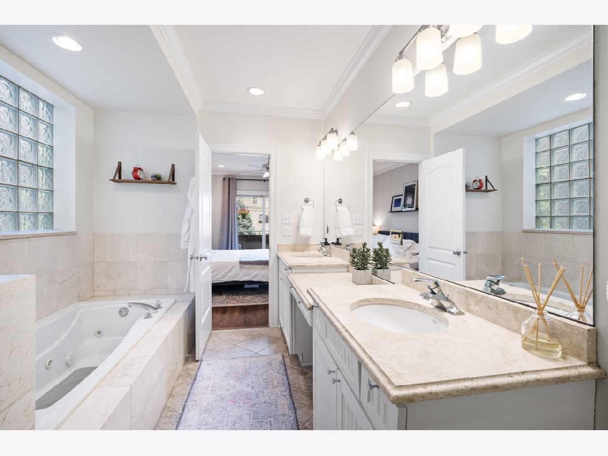 Your New Home Awaits in Wicker Park in this meticulously designed, well crafted 3 Bed / 2.1 Bath Duplex-Down property situated on a quiet tree-lined street. Natural Light shines in and brightens both floors' floor plans simultaneously from your Oversized Bay Windows, a staple feature that makes this home Extremely Unique from inside and out. Hardwood Floors line the entire Main Level giving the opened combo living/dining layout an even larger feel, leading you down the main hall to a powder room for guests or family. The cherry wood cabinetry kitchen with see through glass windows pairs nicely w/ upgraded Graphite Steel Appliances complimenting your Granite Counter Tops & Large Breakfast Bar. Awake to the Eastern Sun with comfort and style in your Luxurious Primary main level En-Suite featuring large Stone Bath flooring, an oversized double-vanity, separate Shower Body Sprays, soaking Jacuzzi tub and Large Walk-In Custom Closet Systems. You'll end up treating yourself to additional time, morning and night with some much needed R&R. Downstairs you'll find crafted millwork, A Gas Fireplace, ample storage, and upgraded wood laminate flooring throughout that gives off a true hardwood floor feel. Your lower level family room has a built in Wet-Bar complimented w/ a Wine Fridge. The newly updated outdoor patio has wrap around seating, TREX flooring, and a stained-wood surround with black rod iron fencing for additional privacy. French doors lead into the second bedroom with another custom closet. Next to that is your newly renovated bathroom with black fixture accents including a brand new vanity and sliding glass shower door. A Third (3rd) bedroom currently used as a gym is perfect for guests or your quiet work from home office. A Laundry Room with Full Size side-by-side Washer/Dryer, back up battery sump pumps, water heater, furnace and mechanicals. Two (2) Car Tandem Parking off of the rear alley is Included. With close proximity to Parks, Expressways, Blue Line, Restaurants, Shopping & More, this home is a Must See!