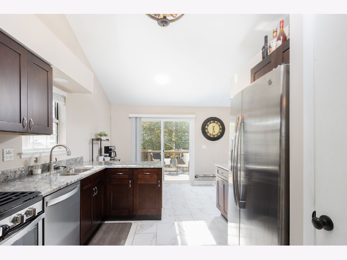 Welcome to this beautifully updated raised ranch, ideally located close to schools, parks, shopping, and easy tollway access. This home was extensively remodeled in 2019, featuring a modern kitchen with updated appliances, new bathrooms, a new furnace, and stylish flooring throughout. You'll also enjoy the convenience of newer patio doors that open to a stunning outdoor space. The current owners have continued the upgrades with a new fence, a freshly paved driveway, a large deck perfect for entertaining, and a spacious patio. The home is meticulously maintained and ready for its new owners to move in and enjoy. You'll love the vaulted ceilings in kitchen, living room and master bedroom. One standout feature is the enormous garage, measuring 19 feet by 27 feet, with a bump-out area offering even more storage or workspace options. This home is the perfect blend of comfort, style, and practicality-don't miss your chance to make it yours!
