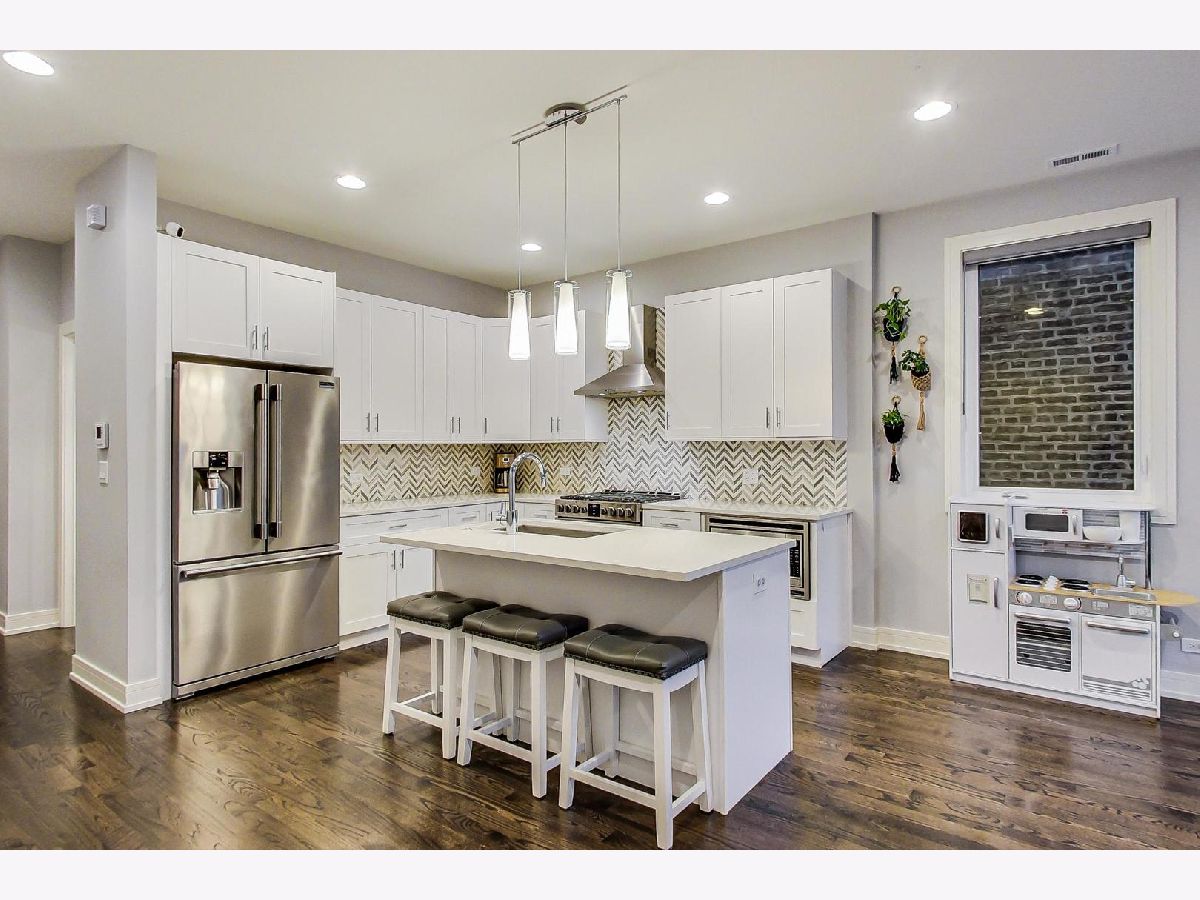 BETTER THAN NEW CONSTRUCTION!! The opportunity awaits to own newer construction with all of the window treatments, professionally built out closets, and all costs of new construction already taken care of! Welcome to this 2bed/2bath luxury condo in hot West Bucktown location. Open concept living room,dining room, kitchen area that is flooded with natural light from the floor to ceiling windows. The kitchen features white cabinets and white quartz counters and custom backsplash. The island offers a gathering space for friends and family. The second bedroom features beautiful custom closets and plenty of space for a home office or guest room. The primary bedroom features a large walk-in closet and a huge bathroom with heated floors, double vanity and a marble tiled walk-in shower with glass door. Step outside to not one, but TWO private, outdoor patios, including the perfect outdoor entertaining space, which is above the entire 3 car garage. One garage spot is included. Sellers have installed Hunter Douglas window coverings on all windows, surround sound in LR/DR/Kitchen and primary bedroom. Washer/dryer located in unit as well as an in unit crawl space for extra storage. Pet friendly, self managed building with low assessments. Situated just one block west of Western Ave and less than a block south from North Ave, this home gives you easy access to all the area's best spots. Moments from the heart of Wicker Park, Bucktown, Humboldt Park, and Logan Square.