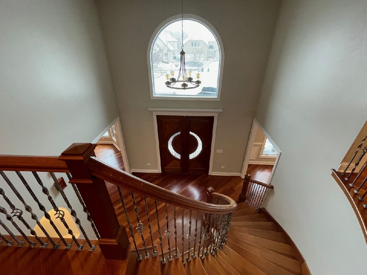 Exceptional all brick custom home features 6100 square feet of livable space on the main floor, second floor, and finished basement. This prestigious 5-bedroom 4.5 bath home is perfect for entertaining inside and out. Venetian plaster walls, dual staircases, Brazilian cherry floors throughout. Located on a quiet cul-de-sac, adjacent to the park. Minutes to Woodfield, highways, and restaurants. NOTE: kitchen counters and and appliances are being installed 12/21