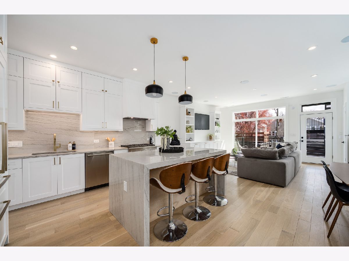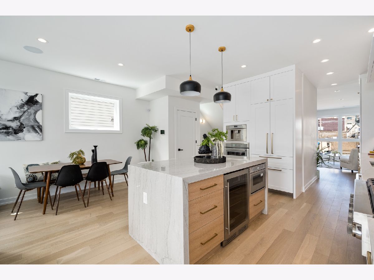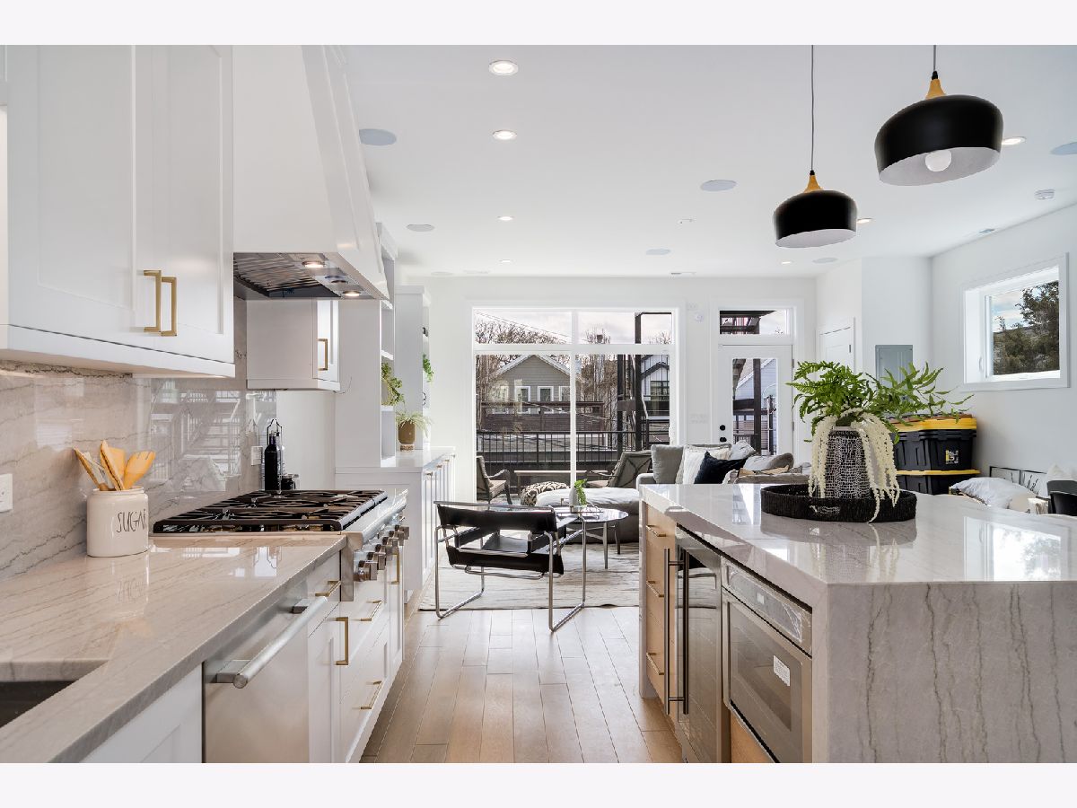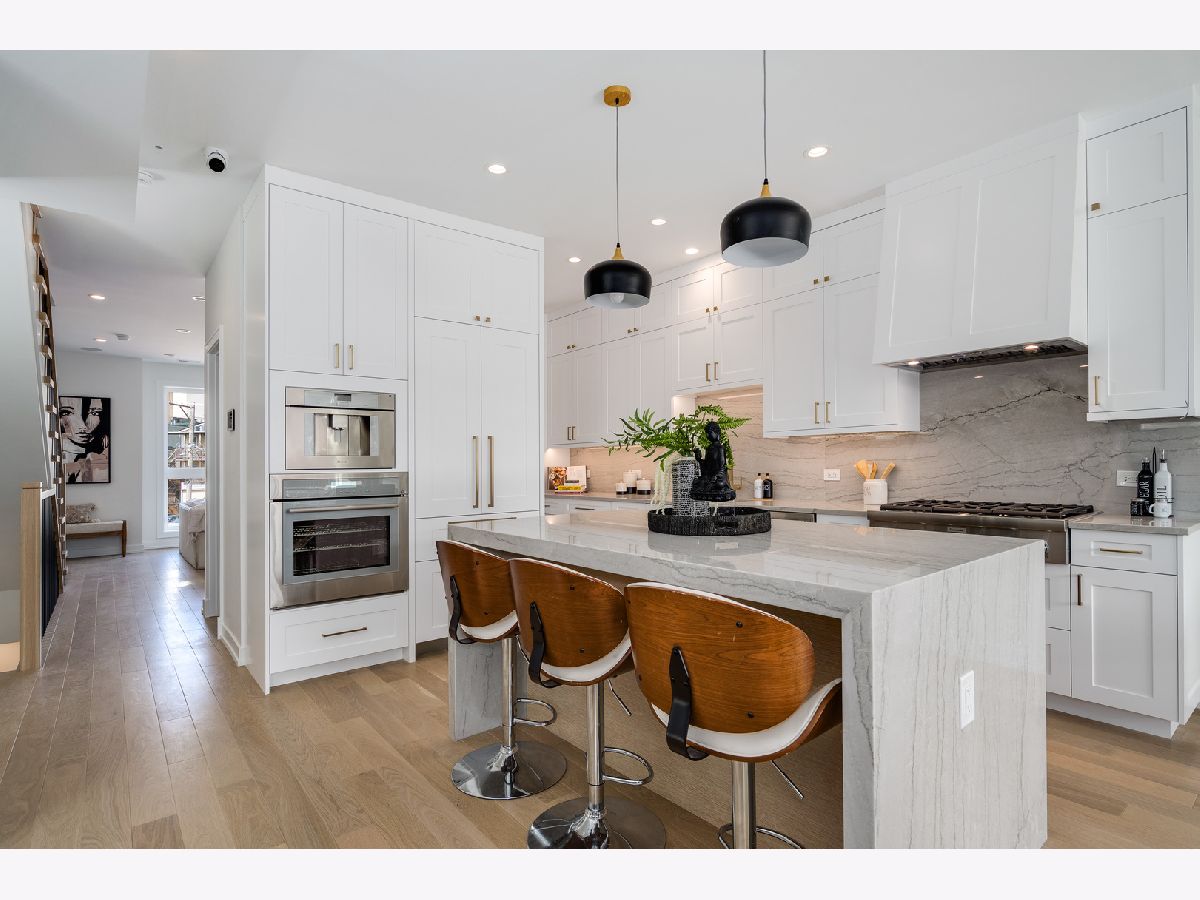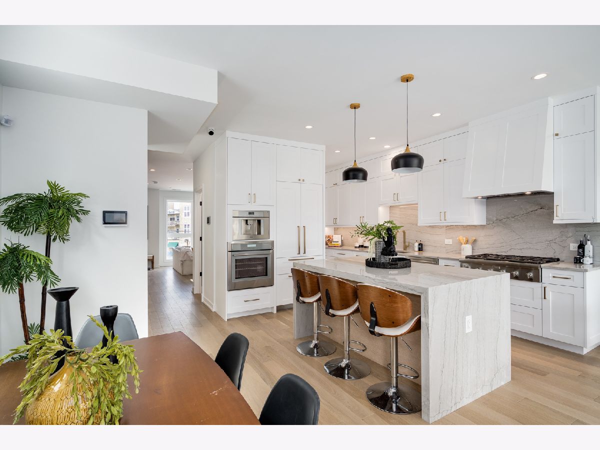 Welcome to the exquisite residence at 1533 W. Barry, nestled in the heart of Lakeview. This remarkable 3-bedroom, 2.5-bath duplex is situated within the highly sought-after Burley School District, and it exudes the charm and spaciousness of a single-family home. As you step inside, you are greeted by a sun-soaked main level adorned with soaring 11-foot ceilings that create an airy and inviting ambiance. The focal point of the living area is a stunning gas fireplace, elegantly framed with a custom quartz surround, providing both warmth and style. Durable wide plank hardwood floors extend throughout this expansive space, while 8-foot solid core doors add an extra touch of sophistication. The chef's kitchen is a culinary dream, featuring breathtaking quartzite countertops with a striking waterfall edge. You'll appreciate the custom two-tone shaker cabinets that offer both beauty and functionality. High-end Thermador appliances complete this space, including a robust 6-burner cooktop, a separate built-in oven, an espresso maker for your morning brew, and an under-counter wine fridge, perfect for entertaining. Natural light pours into both living spaces through magnificent floor-to-ceiling windows, illuminating the home throughout the day. Step outside to the spacious rear deck or ascend to the impressive private rooftop, where a custom pergola provides shade and comfort, all while offering breathtaking views of the iconic Chicago skyline, ideal for relaxation or gatherings. Ascend to the second floor, where all three bedrooms reside, including a lavish primary suite that speaks to comfort and style. This retreat features not one, but two closets, one of which is a generous walk-in. The opulent en-suite bath feels like your own personal spa getaway, showcasing large-format porcelain tiles that harmonize beautifully with heated floors. Dual sinks, smart LED mirrors, and a rejuvenating steam shower complete this luxurious bath experience. For the tech-savvy homeowner, the property is equipped with an advanced ELAN smart home automation system. This innovative system allows you to control audio in every room - including the bedrooms, primary bathroom, and outdoor areas - along with your lights, thermostats, security, and doorbell, all at your fingertips. Additional highlights of this outstanding home include custom closet systems for optimal organization and convenient garage parking. Located just minutes away from an array of shops, dining options, and easy access to the expressway, this property truly is a must-see for those looking for a blend of luxury and convenience.