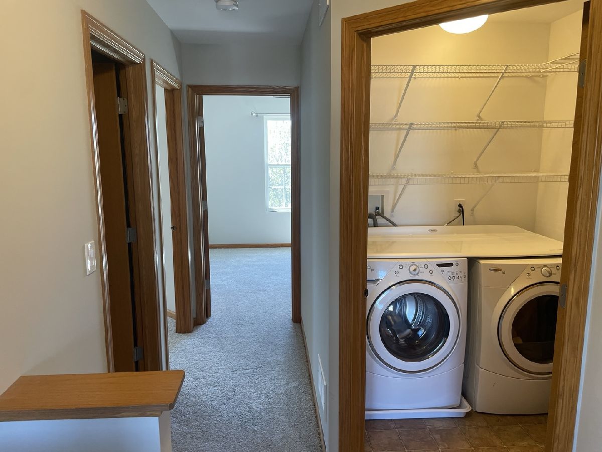 This immaculate two-story townhome just hit the market, freshly updated and move-in ready! The main level boasts a spacious, sun-filled living and dining area, along with a large kitchen featuring 42" cabinets, a tile backsplash, and stainless steel appliances. Natural light pours in, highlighting the beautiful patio view. Upstairs, you'll find two bedrooms and a huge loft. The master bedroom includes a walk-in closet with extra shelving and direct access to the shared master bathroom. The loft offers versatile space-ideal as a second living room, third bedroom, home office, gym, or entertainment area. You'll love the convenience of the second-floor laundry room and the attached two-car garage, which also has built-in storage. The home has been fully refreshed with new paint throughout, new carpet, and new master bathroom. Enjoy the open green space behind the patio or take a walk to the nearby park. Located in Manhattan School District 114 and Lincoln-Way High School District 210.