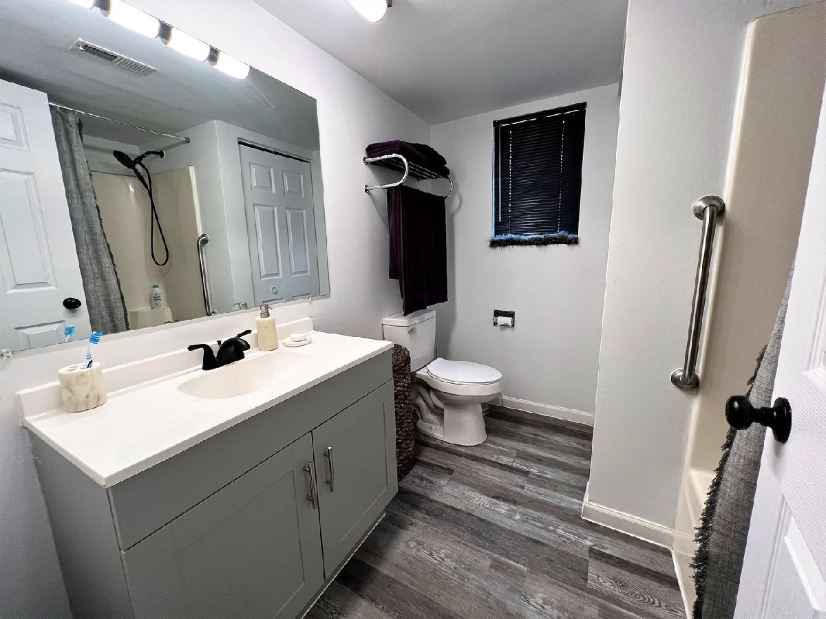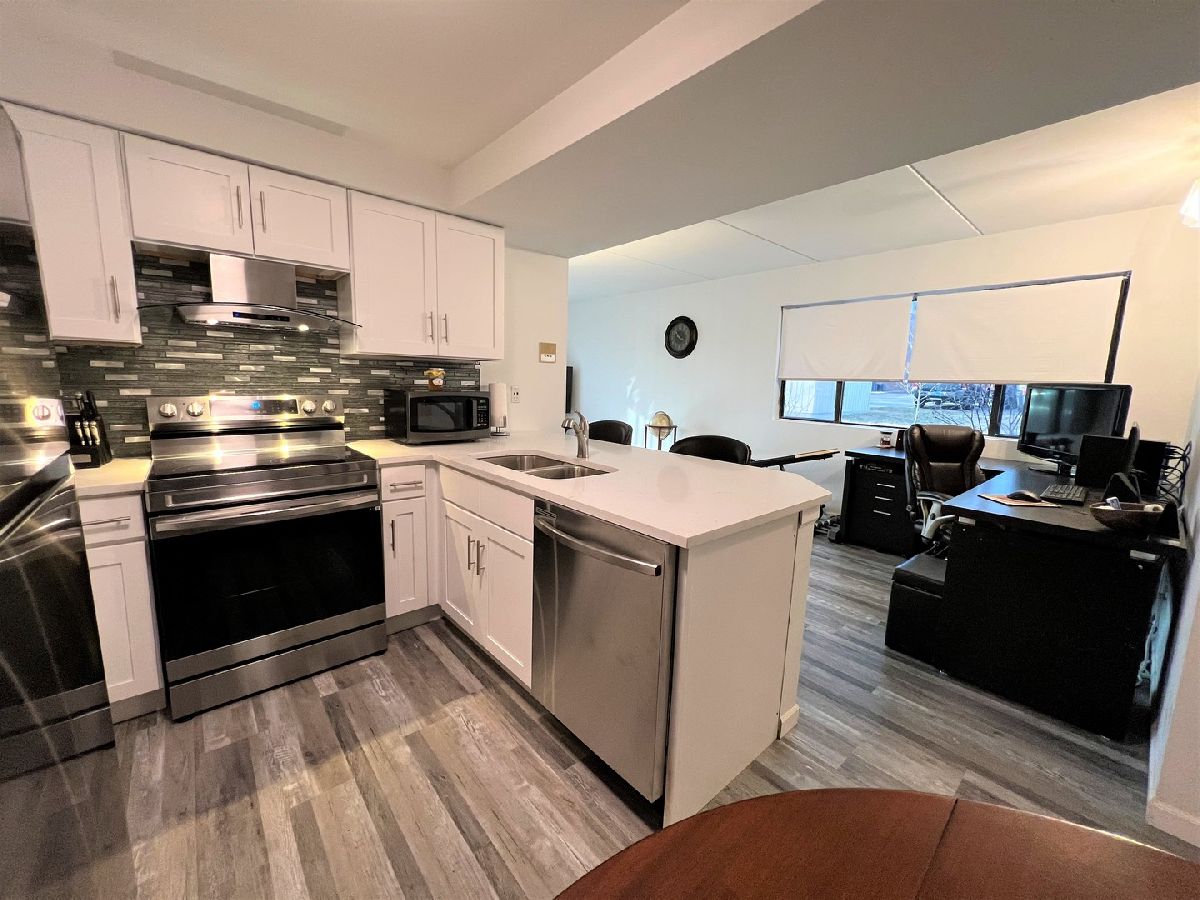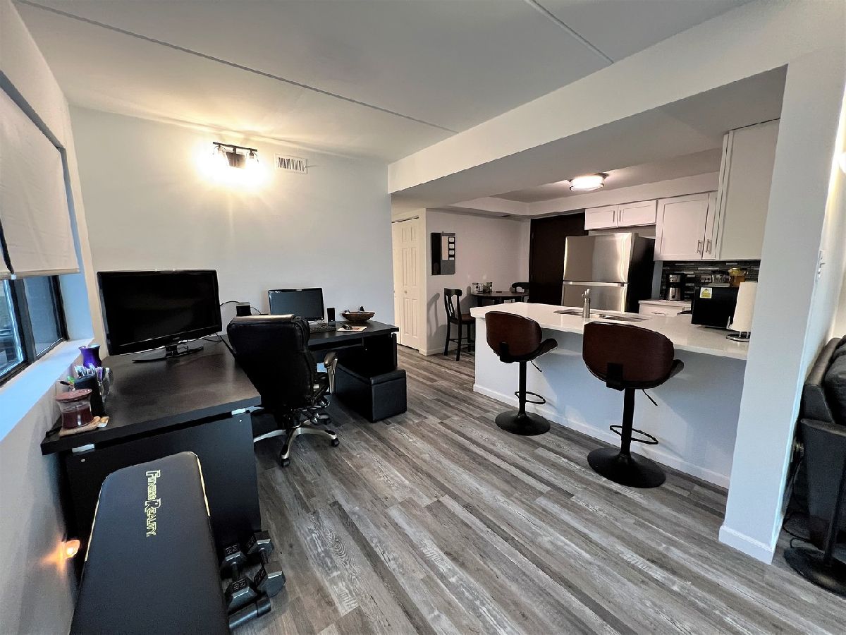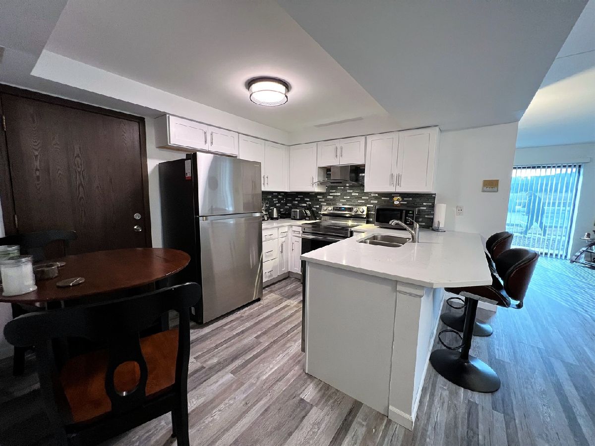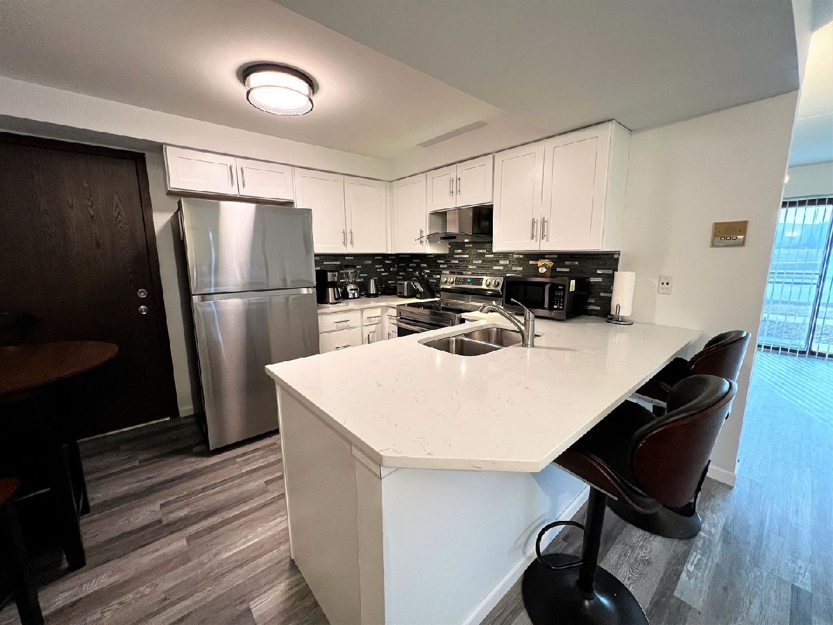BREATHTAKING 1st floor 1 bed, 1 bath condo with IN-UNIT LAUNDRY AND RENTABLE. This complete remodel/rehab includes: Luxury vinyl tile flooring thru out, LED lighting thru out, white shaker kitchen cabinets with quartz counter tops and breakfast bar, stainless kitchen appliances, custom tile backsplash, bathroom vanity, sink, plumbing, toilet and flooring. Convenient 1st floor with assigned parking right out your door. Spacious cement patio is perfect for relaxing and cooking out. Also perfectly located across the street from an amazing medical center, down the street from Centennial pool and off the beaten path yet walking distance to EVERYTHING on LaGrange Rd. Add this RENTABLE condo to your portfolio. Hurry as this one will go quick.