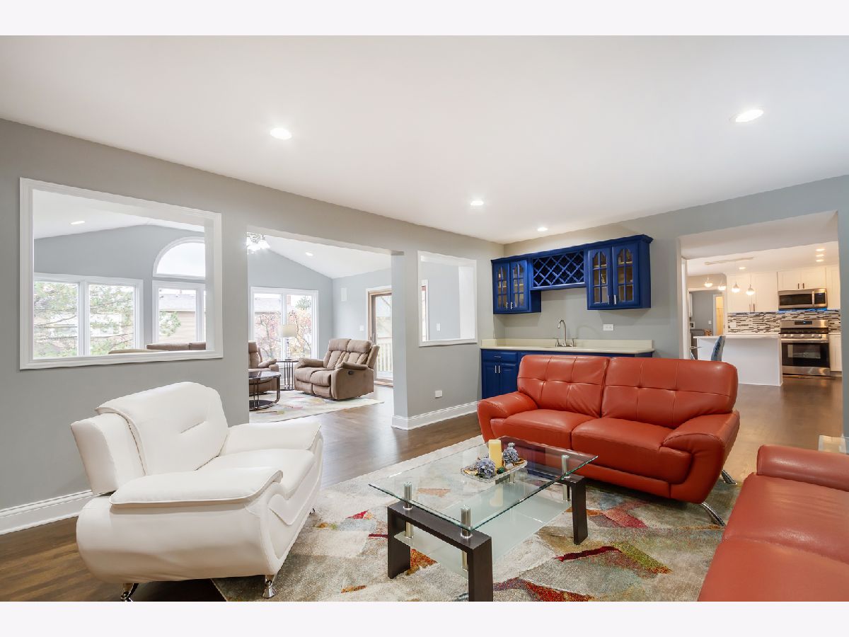 Gorgeous, updated 5 bedroom home located in Charlemagne Subdivision in Hoffman Estates~ nothing to do but move in! The inviting entryway opens to formal living and dining rooms. The completely updated kitchen boasts; quartz counters, modern white cabinetry with crown molding, island with pendant lighting, beautiful tile backsplash, new Samsung stainless steel appliances, under cabinet lighting, pantry, and an eat-in area. The spacious family room includes a wet bar and cozy fireplace. You will love the sunroom with tons of natural lighting overlooking the picturesque yard. Convenient main floor laundry with cabinets for storage and a laundry sink. Upstairs features a master bedroom with walk in closet with custom shelving, and an updated en-suite bath with dual vanities, quartz counters, linen cabinet, an oversized shower with beautiful tiling. There are three additional bedrooms with ample closet space and a completely updated hall bath with quartz counters and double sinks. The finished walkout basement has a rec room, wet bar, 5th bedroom, office, and full bath. Other updated include; new and refinished hardwood flooring on the main level, freshly painted throughout, brushed nickel hardware on the 1st and second levels, and two new Ecobee thermostats. Kitchen and bathrooms JUST completed in 2021, sellers hate to leave! 2 car garage with epoxy flooring. Outside you can relax or entertain on the large deck. Located near restaurants, shopping, and parks. Great home in a great location!