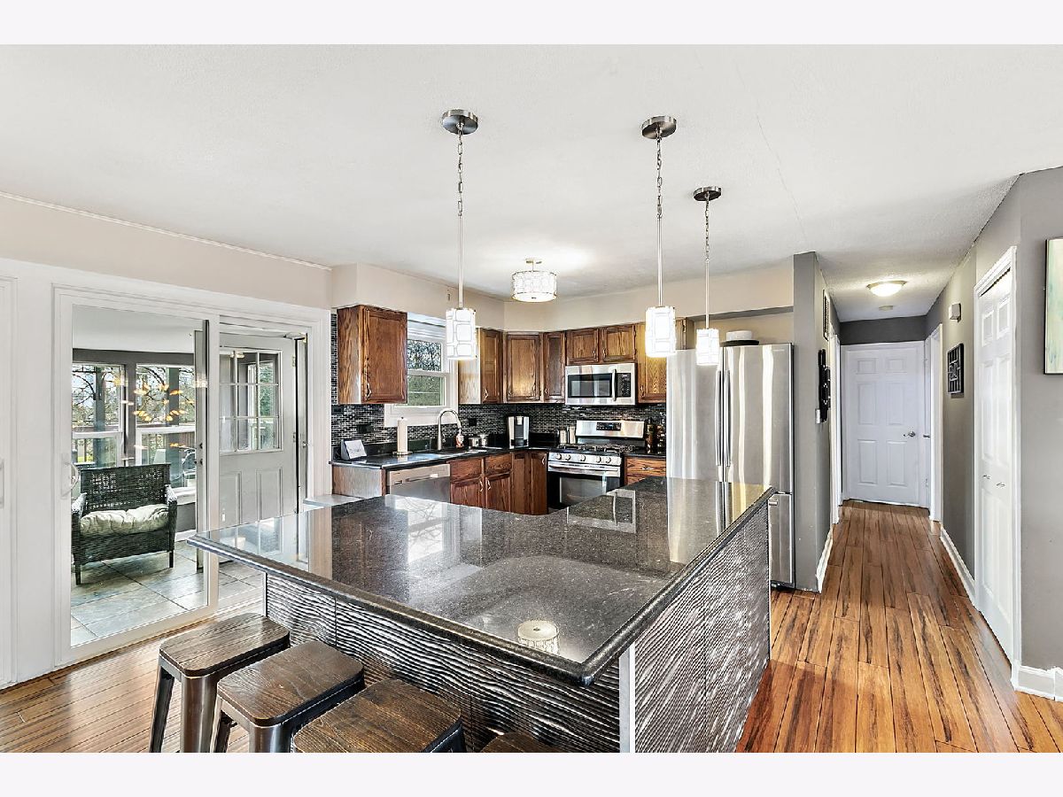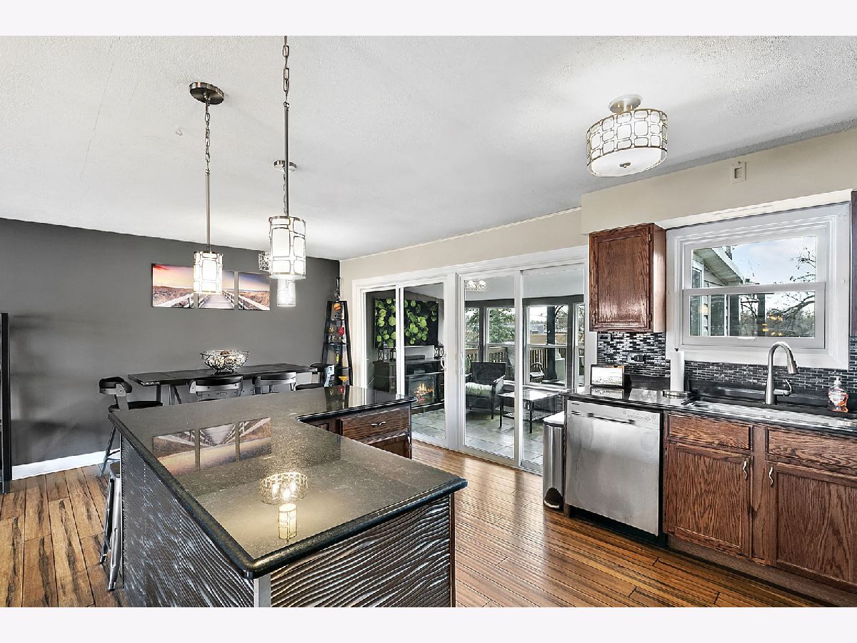 Come check out this unique 4 bedroom home in Oak Forest! Main level offers an Open-floor plan with kitchen island and additional dining-room combo, 3 original bedrooms, and an updated full bath. The basement was renovated to become both a 2nd living room and a Master-suit/4th bedroom complete with huge closets! All new windows throughout. 3 seasons room off the back of the kitchen leads to an AMAZING back deck complete with pergola and fire pit and over-looks an even more amazing, pie-shaped backyard that has more sqft than your usual Oak Forest lot, and included a pool with a separate deck as well.