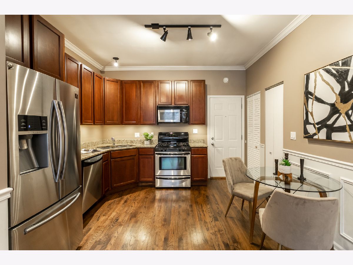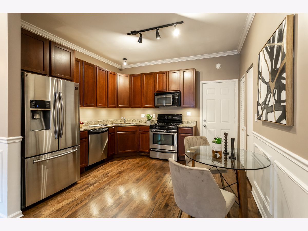This delightful 2 bed 1 bath condo is ideally nestled within the beautiful Southport Corridor. Our open-concept, SS appliances, granite countertops, 42' cabinets (with under cabinet lighting) and actual pantry space make this the perfect functional kitchen. Ample closet space, high cabinets, and in-building storage make life much more manageable. A lot like the way having those side by side sinks also makes life much more manageable. Hardwood throughout keeps things clean and classic. Our elevated first-floor unit means more privacy, extra light, and true deck space. Location is a non-issue with Trader Joe's, Loba pastry, Whole Foods, Target, the Brown Line, Amazon books, and all the Brunch you can handle on Southport. I could keep going but you might be starting to see why sales in this building are so rare!