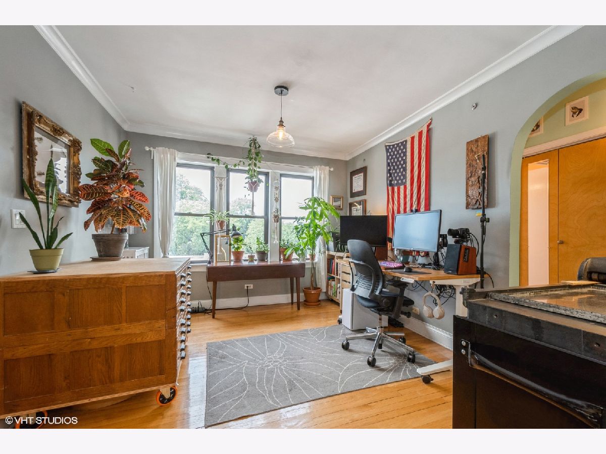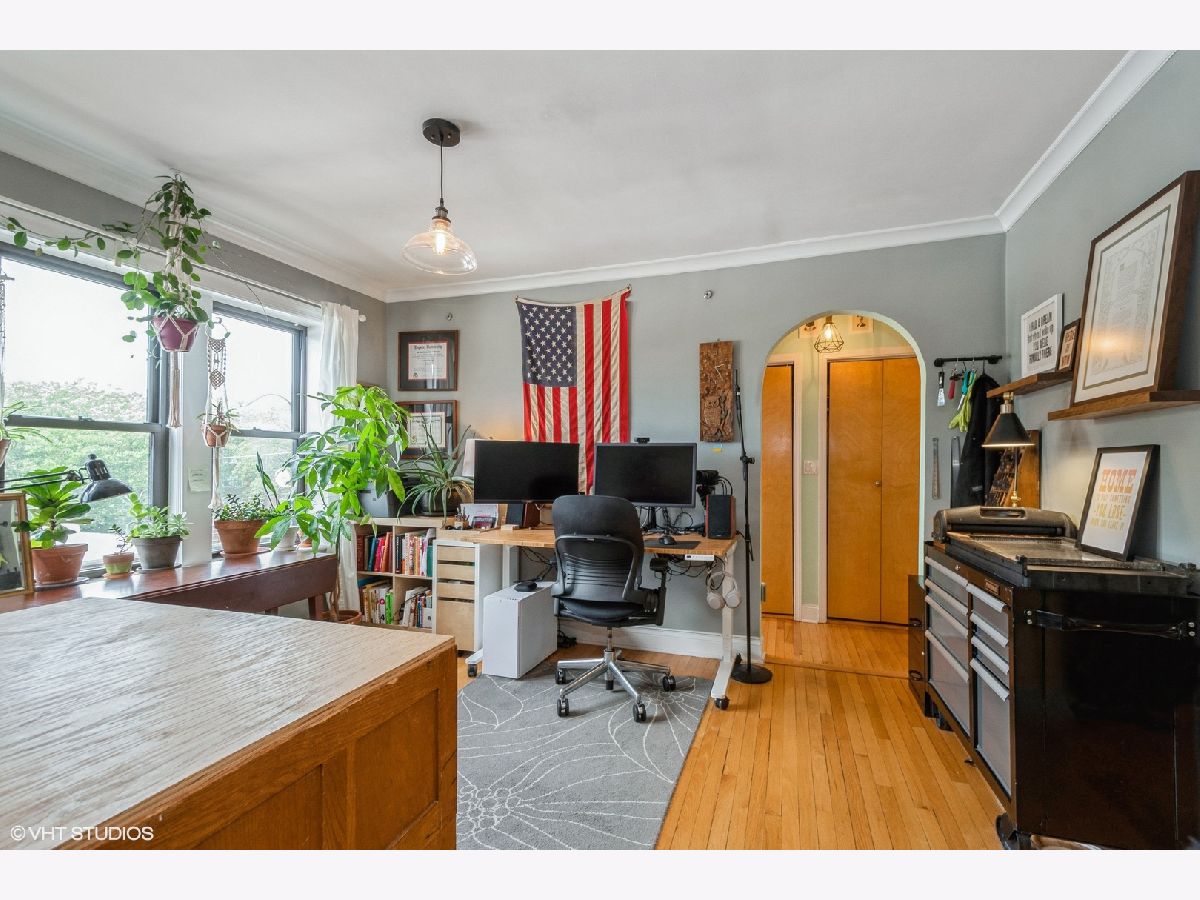 Top floor 1 BD/1 BA in a historic 1926 vintage-style building in East Rogers Park. Feel the charm with crown molding, hardwood floors, and coved archways throughout. Beautiful bay windows in the living room overlook the professionally landscaped courtyard. Tremendous amounts of natural sunlight in all rooms. Remodeled in 2003 with custom kitchen cabinetry, granite countertops, in-unit Whirlpool washer/gas dryer, and double-hung windows. 900 ft from the CTA Red Line Jarvis Station. 0.3 mi from the CTA Red, Yellow, and Purple Line Howard Station. 85% owner occupied. Rental cap 15% (4 units currently rented). Owners must live in unit for 1 year before renting - board approval required. Roof replacement (2020). Boiler replacement (2018). KitchenAid stainless steel dishwasher (2020). GE top freezer refrigerator (2013). No current or planned special assessments. Private storage locker (8x8x8) located in the basement along with a designated bike room. Walking distance to Charmer's Cafe, Anto Pizza & Pasta, Dubkin Park, Jewel-Osco, Walgreens, Touhy Park, Rogers Park Beach, and Loyola Beach. Chicago Public Schools Gale Community Academy (K-8) and Sullivan High School (9-12). Monthly assessments ($286.94) include: water, trash removal, snow removal, common insurance, common area maintenance, lawn care, exterior maintenance, and heat. This building (Fargo Court) is NOT FHA approved. Reserves: $51,590.23 (as of 6/30/22).