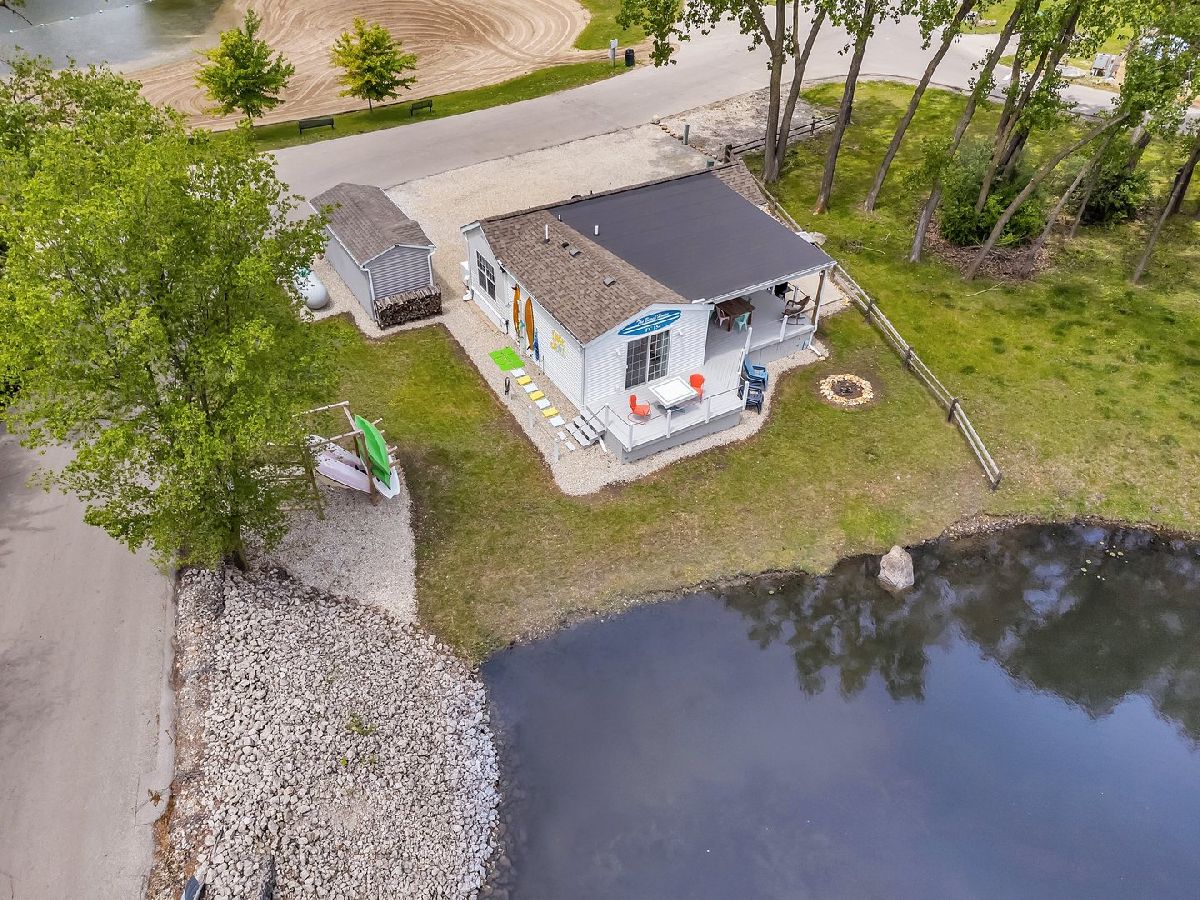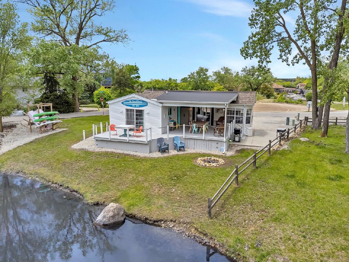 The iconic BEACH HOUSE is now on the market! This adorable 2 bed 2 bath lakefront retreat was designed with no expense spared and overflowing charm. This location is perfect for watching remarkable sunrises & sunsets. From the unique architectural touches to the lovingly curated finishes, every detail tells a story. Step outside to your private spa-like outdoor shower-complete with both hot and cold water-for the perfect end to a lake day. 2020 addition sits on a 5ft Crawl. Thoughtfully updated in 2022 with a new roof, gutters, a beautifully remodeled kitchen, remodeled bathrooms, washer/dryer, 55 gal HWH, insulated interior walls, industrial waterproof flooring, surround system, ECOBEE thermostat, 460 sq ft of waterfront deck with multiple outlets, underneath deck storage, & more. Park model is heat taped & insulated. Park model & shed both sit on a concrete slab. This home blends timeless character with modern comfort. This is where memories are made with lazy summer mornings, sunset swims, and cozy nights by the water. A true gem that radiates care, character, and comfort. Home comes fully furnished, along with kayaks, paddle boat, patio furniture, gas grill, Blackstone grill & more. (excluding the outside cooler & 2 rockers) Call for you showing today & Welcome to your BEACH HOUSE!