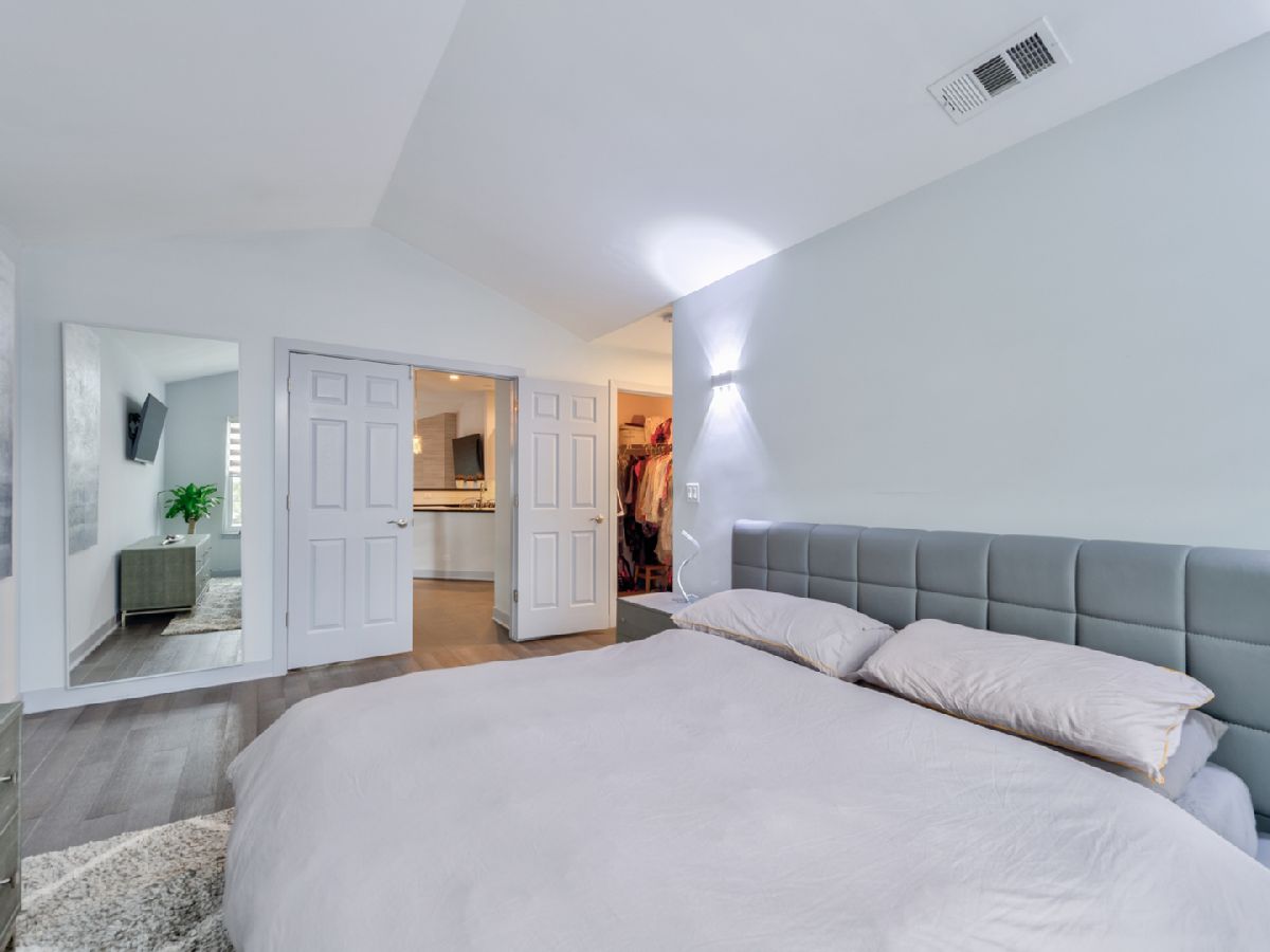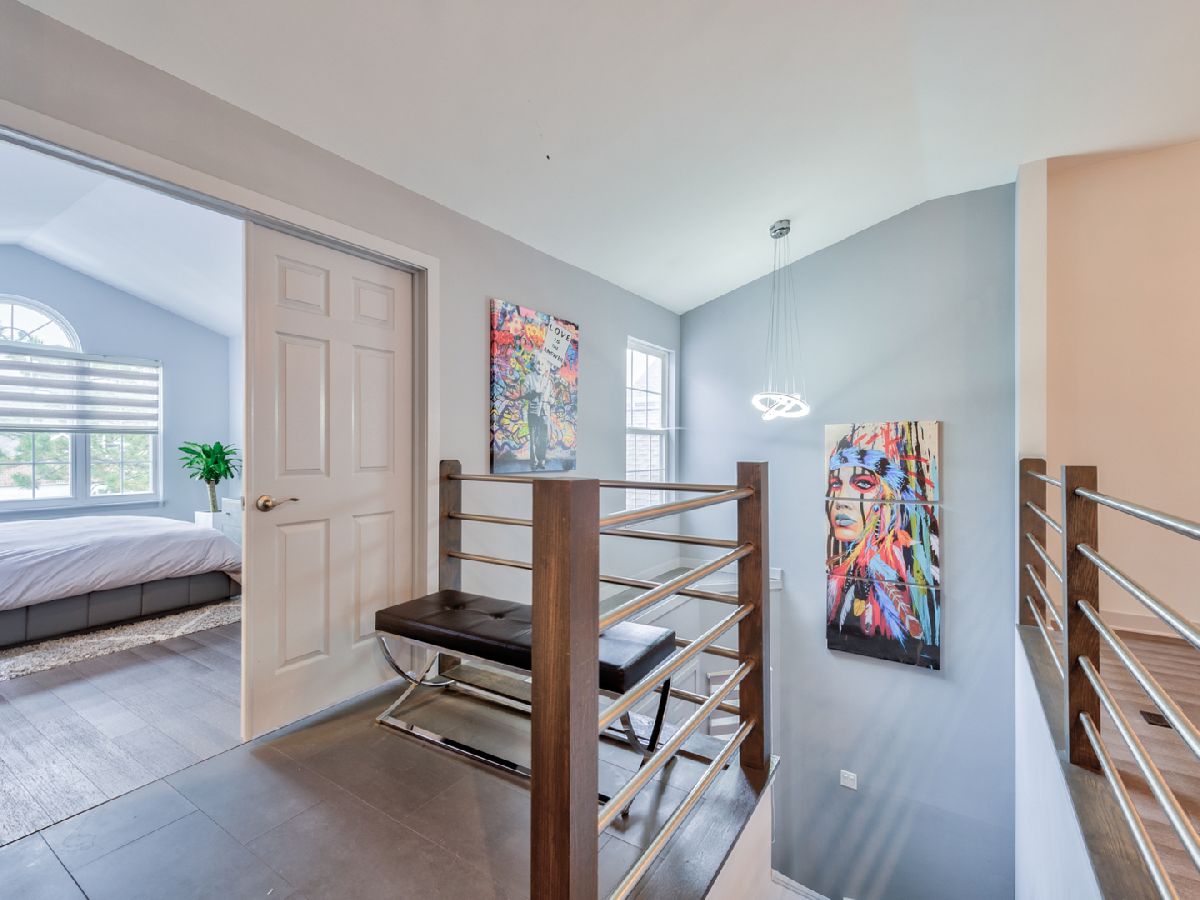 Phenomenal UPGRADED 2nd floor townhome that offers you an entirely new lifestyle! Enjoy maintenance free living in this spacious floorplan featuring an open concept, 3 bedrooms, 2 bathrooms, cathedral ceiling, beautiful bamboo hardwood flooring, open staircase. Fully remodeled kitchen that will make you say: "WOW!"-with top of the line custom modern cabinetry, granite countertops, 'Koehler" sink, "Grohe" faucet, glass tile backsplash, SS appliances and breakfast bar. Magnificent living room with wood burning fireplace and sliding glass doors to the private outdoor balcony- asking you to relax... French doors open to luxury master bedroom suite includes high ceilings, walk-in closet & large bath with dual sinks, soaking tub and separate shower. Main floor also features spacious 2 bedrooms and spa like bathroom that was design to create a truly show stooping space with high-end finishes; Soaking tub with custom shower glass, Quarts counters, "Artos fixtures", Koehler sink, Duravit toilet. EVERYTHING! Meticulously maintained, New Furnace, AC, Humidifier 2017, Water heater 2016, New Patio Door 2018, Most windows replaced to ClimateGuard windows in 2018. Conveniently located close to expressways, schools, nature trails, shopping...This townhouse is a Perfect blend of value, location and finishes. 2 Car attached garage completes this dream home!