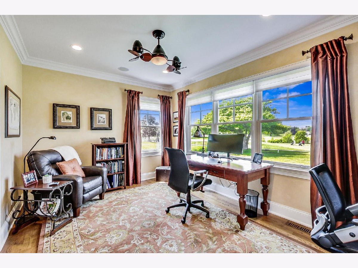 Once in a lifetime opportunity to live on a half acre (118' x 170') Mt Prospect Golf Course lot overlooking the 3rd fairway/green approach and views out over 4 other fairways. A custom Smart Builders residence of over 4,800 sq ft of living area plus an additional 1,706 sq ft of full finished basement area. This lovely ranch plan built in 2008 of 3,150 square foot 1st floor offers primary ensuite with glass french doors to corner golf course view study/office plus an additional 1st floor guest ensuite or 5th bedroom. Another 1,715 square feet of 2nd floor includes 3 more bedrooms - all have walk-in closets, spacious full bathroom "plus" an awesome extra 37' x 17' bonus room with 2 sky windows that open - makes for the perfect exercise - Upper office / studio room. There is also a large unfinished "walk-in" attic space 18' x 17' - it's the NW corner of the attic on golf course side. Nine foot ceilings on both 1st and 2nd floors and eight foot ceilings in finished basement of this well built stone & Hardieplank (fiber cement board) construction. Welcome guests in to the 2 story foyer with wide center staircase that separates the formal living and dining rooms, through hallway with barrel ceiling leads to back of home & incredible views... wonderful kitchen with Granite countertops, maple cabinets, island/seating, breakfast room, butler - dry bar, commercial grade ice machine, 2 sets of ovens and warmer drawers. Impressive family room with 14' vaulted ceiling & palladian window to course, large Trex board (19'x19') deck accessed by both family room and wonderful screened porch. Wide stairway to full finished basement with 8' ceilings includes huge lower level family room, hobby room, utility room, 2nd powder room and lots of extra storage in elevated & easy reach concrete perimeter crawl space store areas. Hardwood floors entire first floor living areas and 2nd landing/hallways, crown molding, classic millwork, granite counters, stainless steel appliances, interior fire sprinklers throughout, 2 furnaces, 2 central air systems, whole house vacuum system, 400 AMP/circuit breakers, overhead sewer, sump pump w/back-up pump, inground sprinkler system and all supported with ultimate peace of mind whole house Generac generator! Dist 57 Westbrook Early Learning, Lions Park GS, Lincoln Middle and Prospect High School. Once in a lifetime opportunity to live on a beautiful golf course lot in a home of your dreams amongst a quiet pocket of homes.