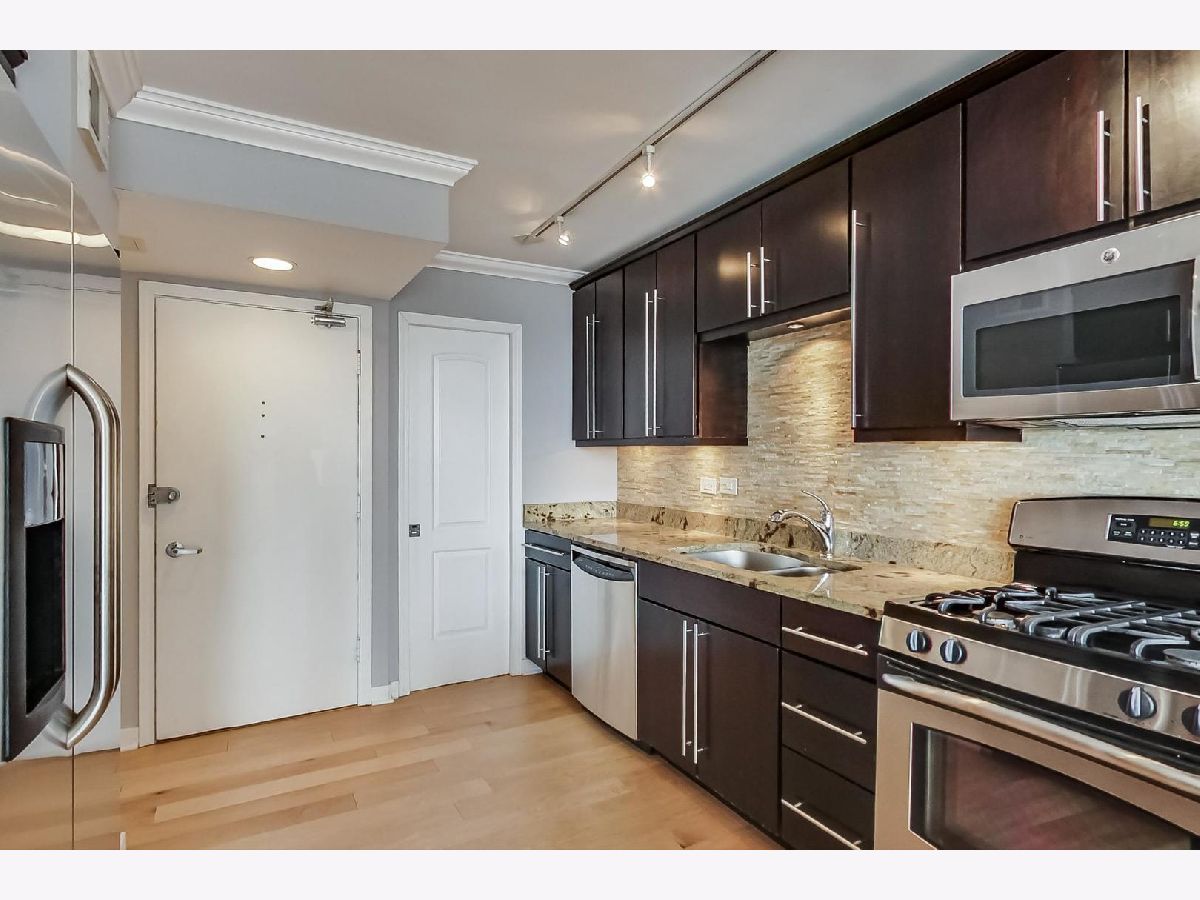 Attention investors: this is the investment condo you've been waiting for! Bright & Sunny, impeccably designed 2 bed/2 bath condo nestled in a full amenity building perfectly located in Chicago's prestigious Gold Coast neighborhood! Unit features new wood floors and has been freshly painted. Inside the unit, you're greeted by unobstructed sprawling western city views - ideal for sunsets! Pristine & spacious Eat In Kitchen featuring premium granite countertop, lovely stone backsplash, rich espresso cabinets w/ under-mount lighting, SS appliances, deluxe beverage refrigerator & huge walk-in pantry. Open sight lines to dining room followed by a large living room outlined by elegant crown molding, oversized windows with sweeping city views & complete with a Wood Burning Fire Place + built-ins. Primary suite features California closets & en suite bath w/ Whirlpool tub. Large 2nd bedroom & full bathroom. Building features include: M-F 9-5 door staff, roof deck (perfect for Air & Water Show!), laundry room, large prvt storage, onsite engineer & professional management. Moments to all the Gold Coast has to offer including world acclaimed restaurants, access to Lakeshore Drive, lakefront trail, beaches, nightlife on Rush & Wells streets, shopping & more! Unit is rented through 6/30/25 - ideal timing for investors.