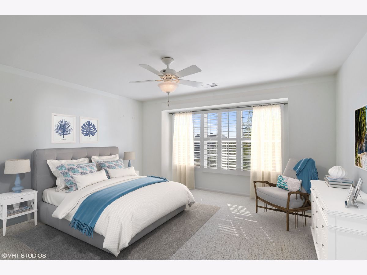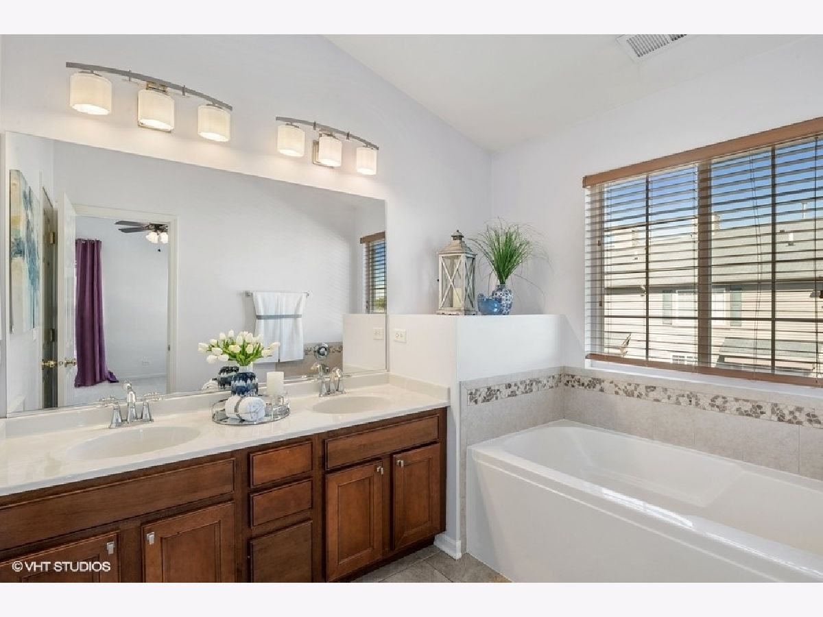 Bright, light, END UNIT that's move-in-ready! You'll love the two bedroom suites each with their own attached bathroom and walk in closet. Refinished hardwood floors in family and dining room with custom fireplace mantle. Light and bright unit with extra east facing windows and neutral paint throughout. Eat-in kitchen with 42" cabinets, stainless steel appliances, and updated lighting. The sliding glass doors open to the wrap around balcony. The second floor features two primary suites each with a walk-in closet and private bath. Finished lower level works as a workout room, office, or possible third bedroom. Just a few steps from your home you can enjoy the walking or biking path. Close to schools, shopping, parks, Downtown Grayslake and one block to the Metra station!